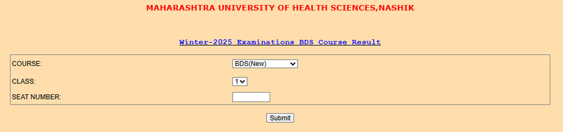 - Select the course, class/ semester, seat number, and submit to view the results.