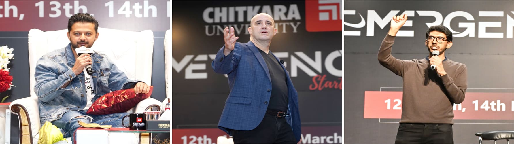 Ans. Emergence is Chitkara University's annual entrepreneurship and innovation summit. Now in its third year, it brings together students, founders, investors, and industry professionals for pitch sessions, Demo Days, masterclasses, and leadership talks. The 2026 edition saw over 1,500 students participate across three days.