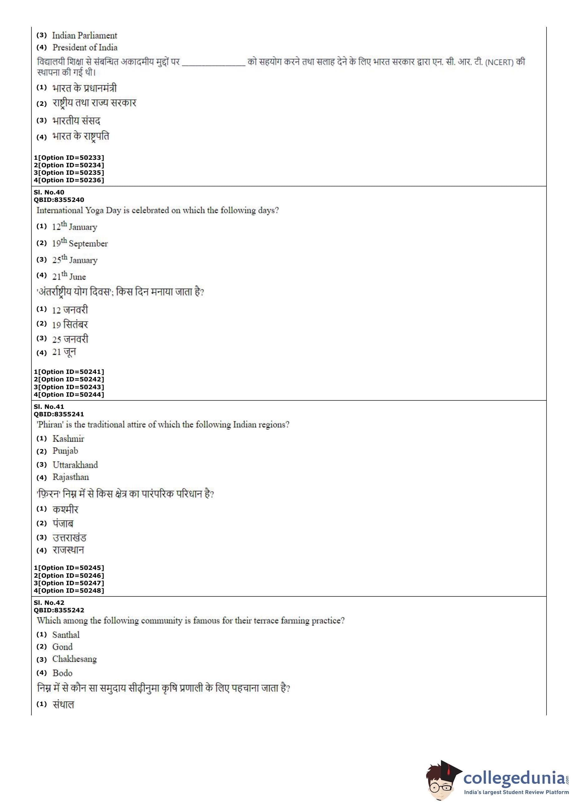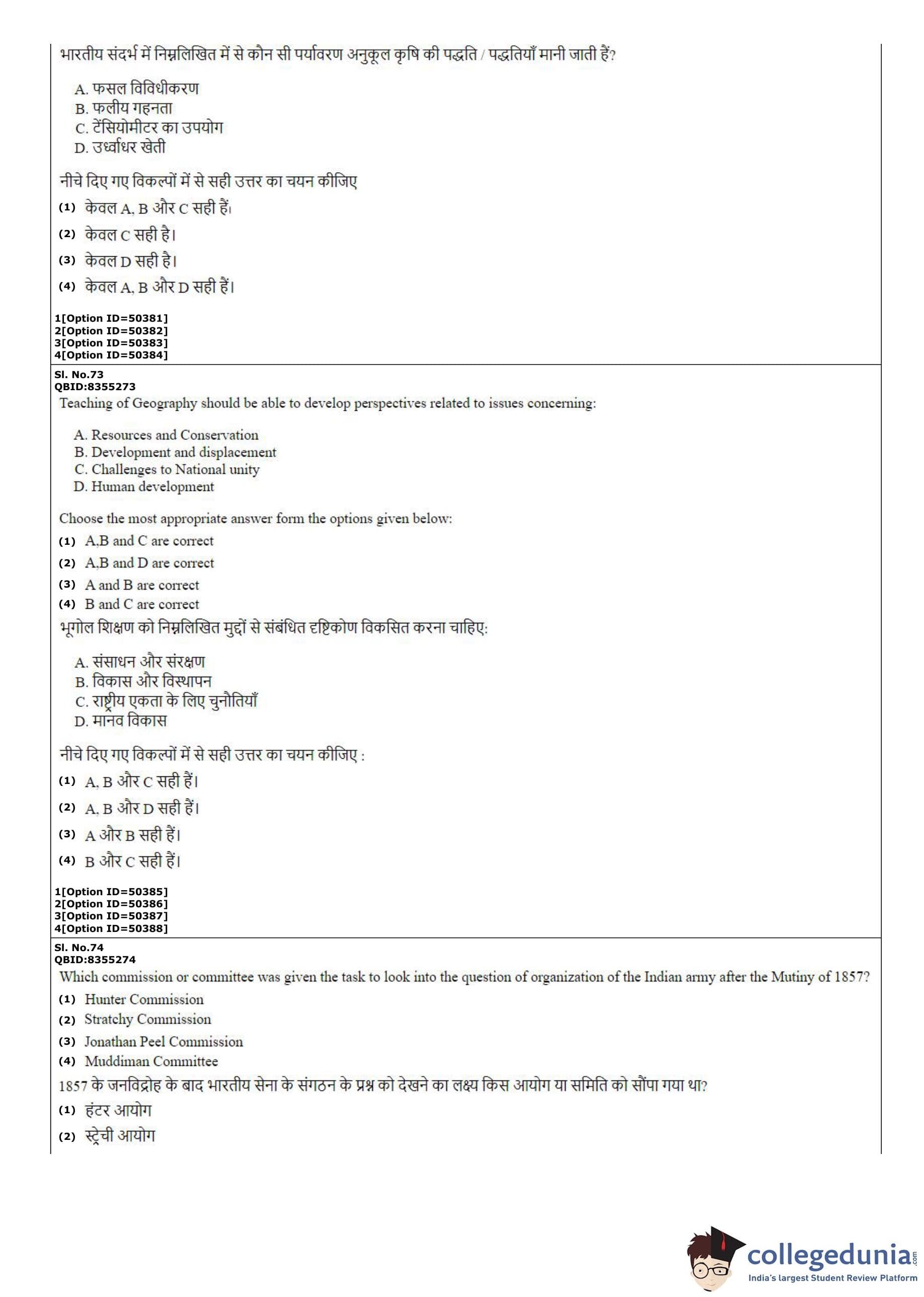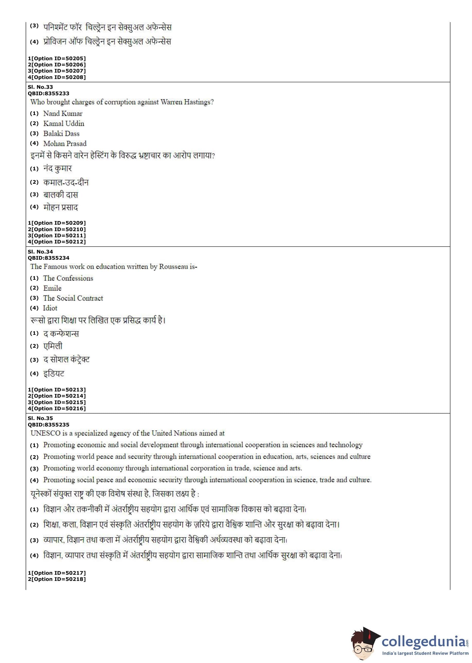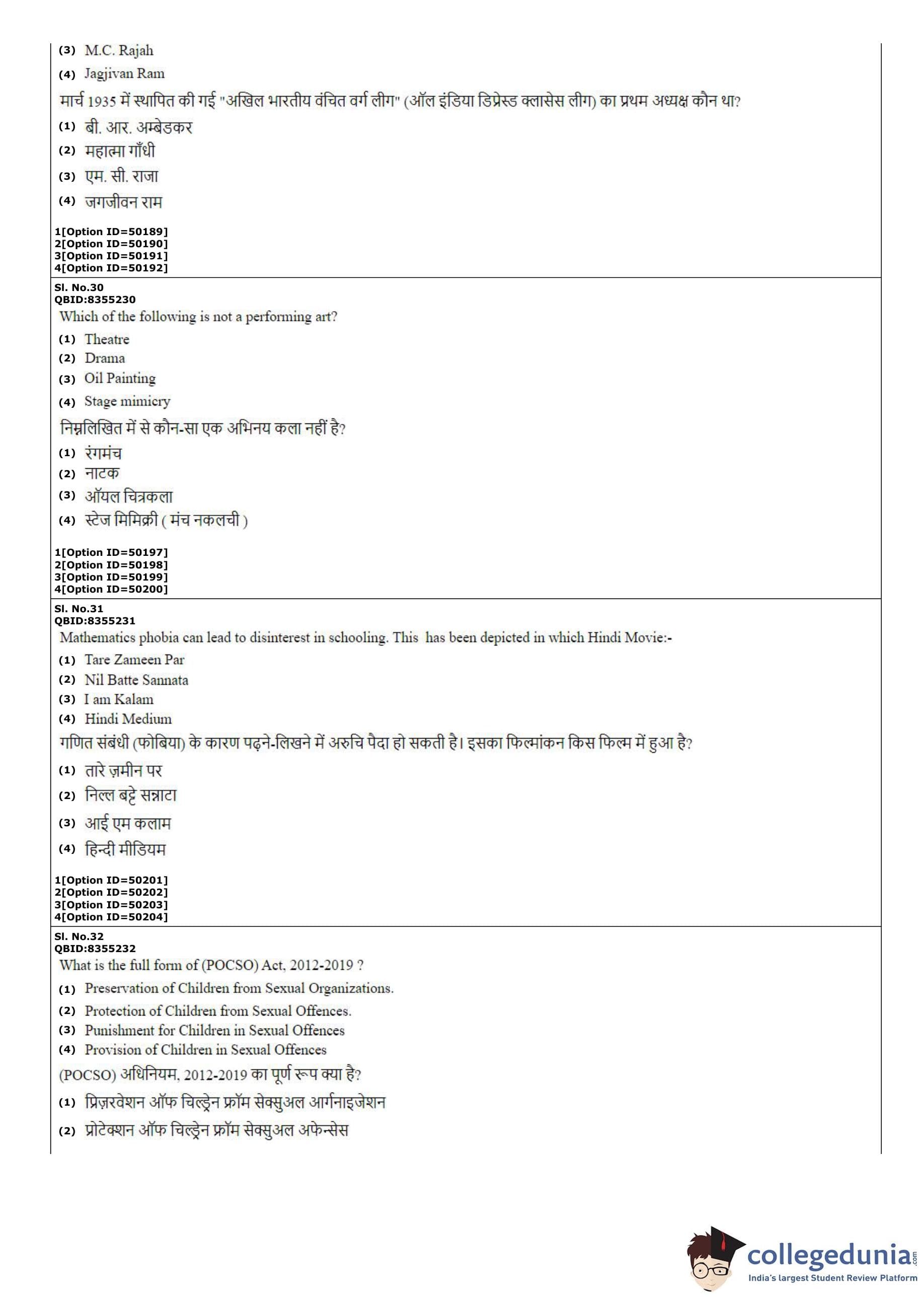 CUET PG 2022 B.Ed Question Paper with Answer Key PDF