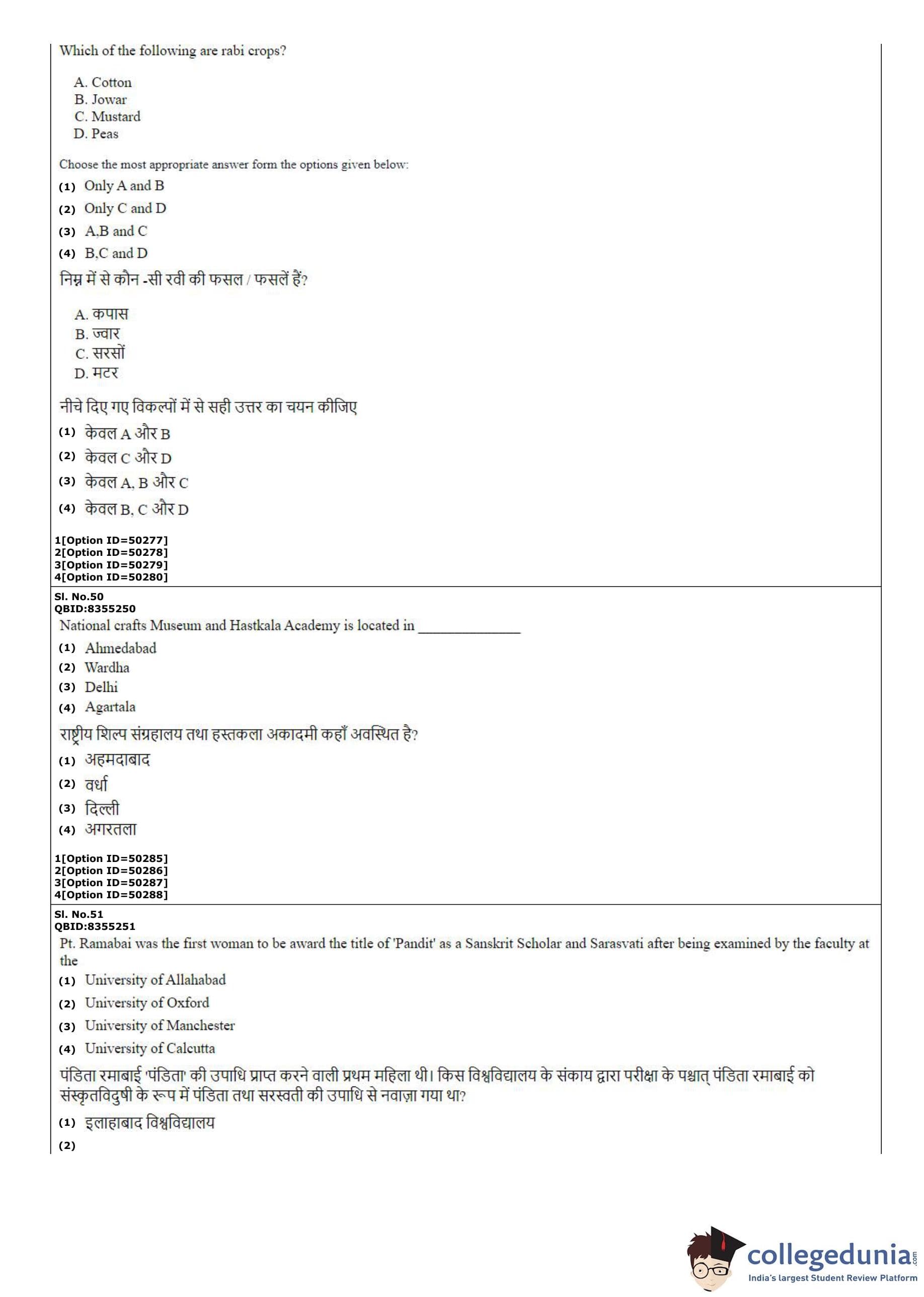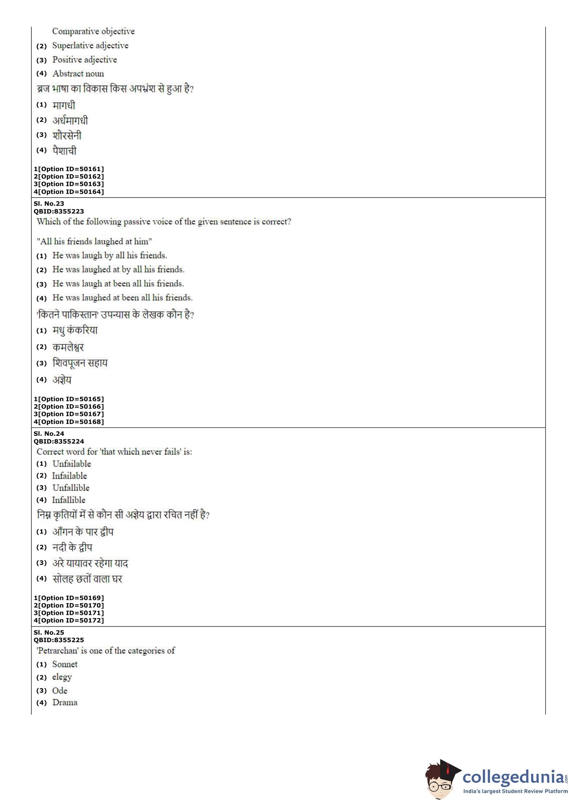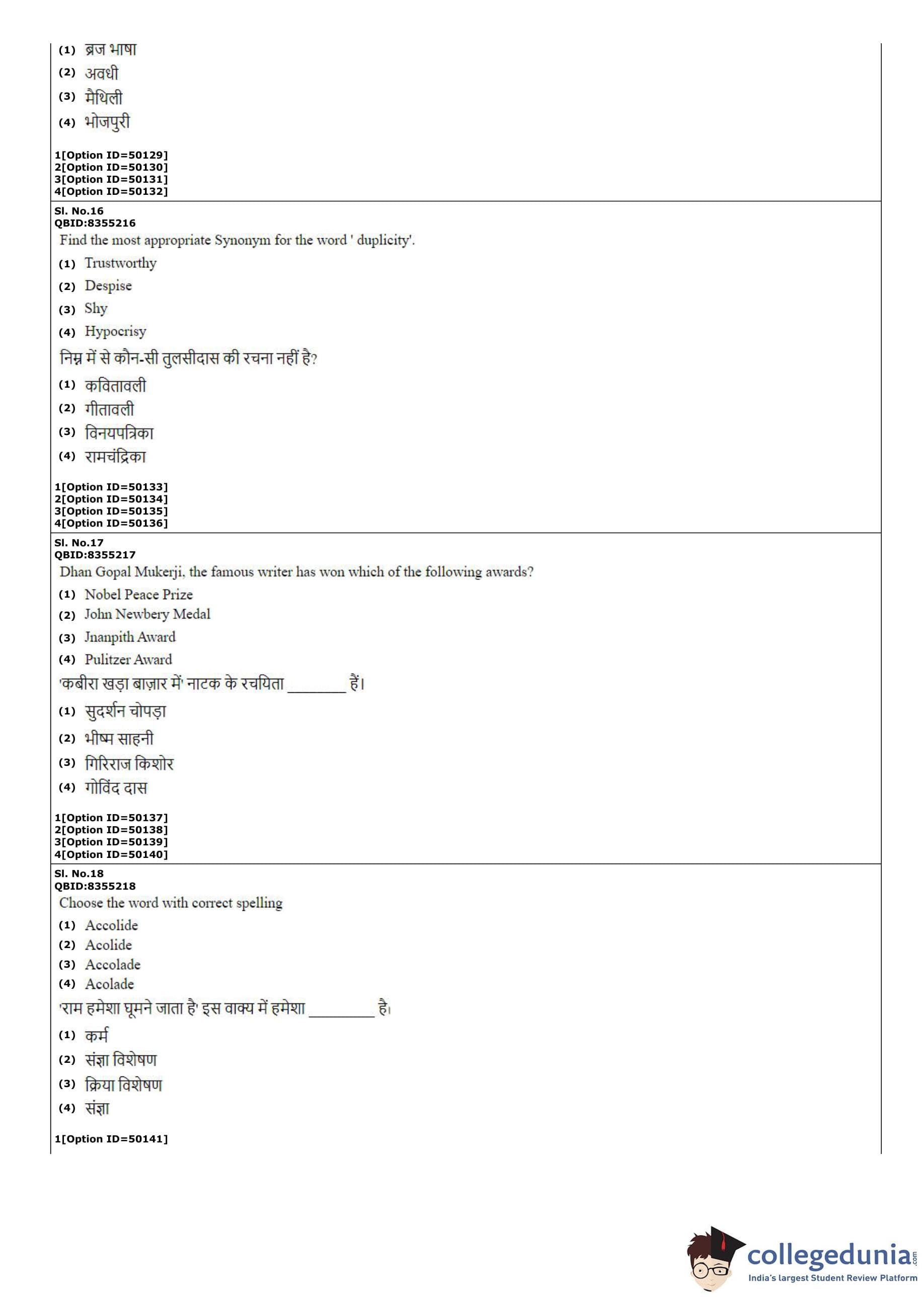CUET PG 2022 B.Ed Question Paper with Answer Key PDF