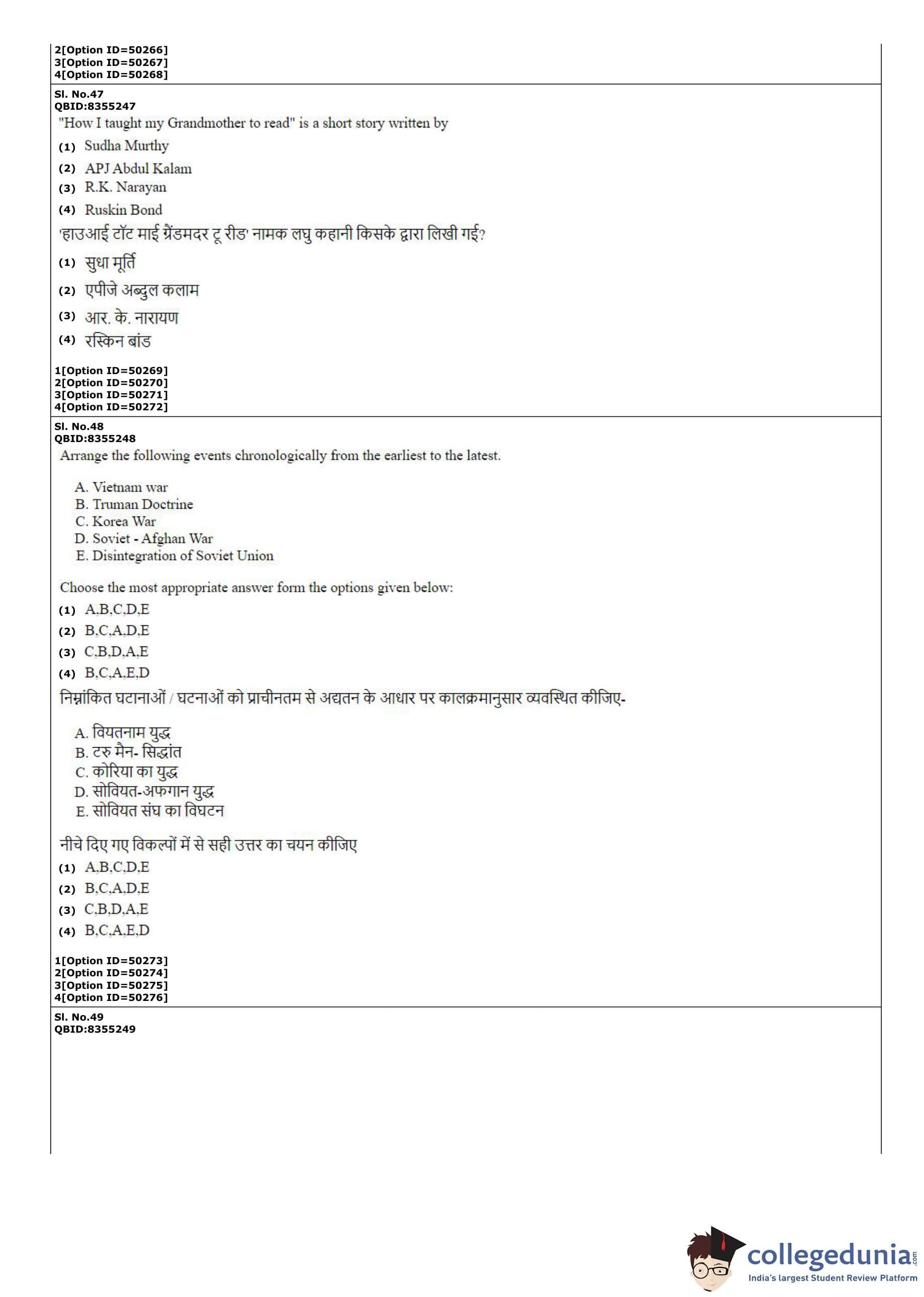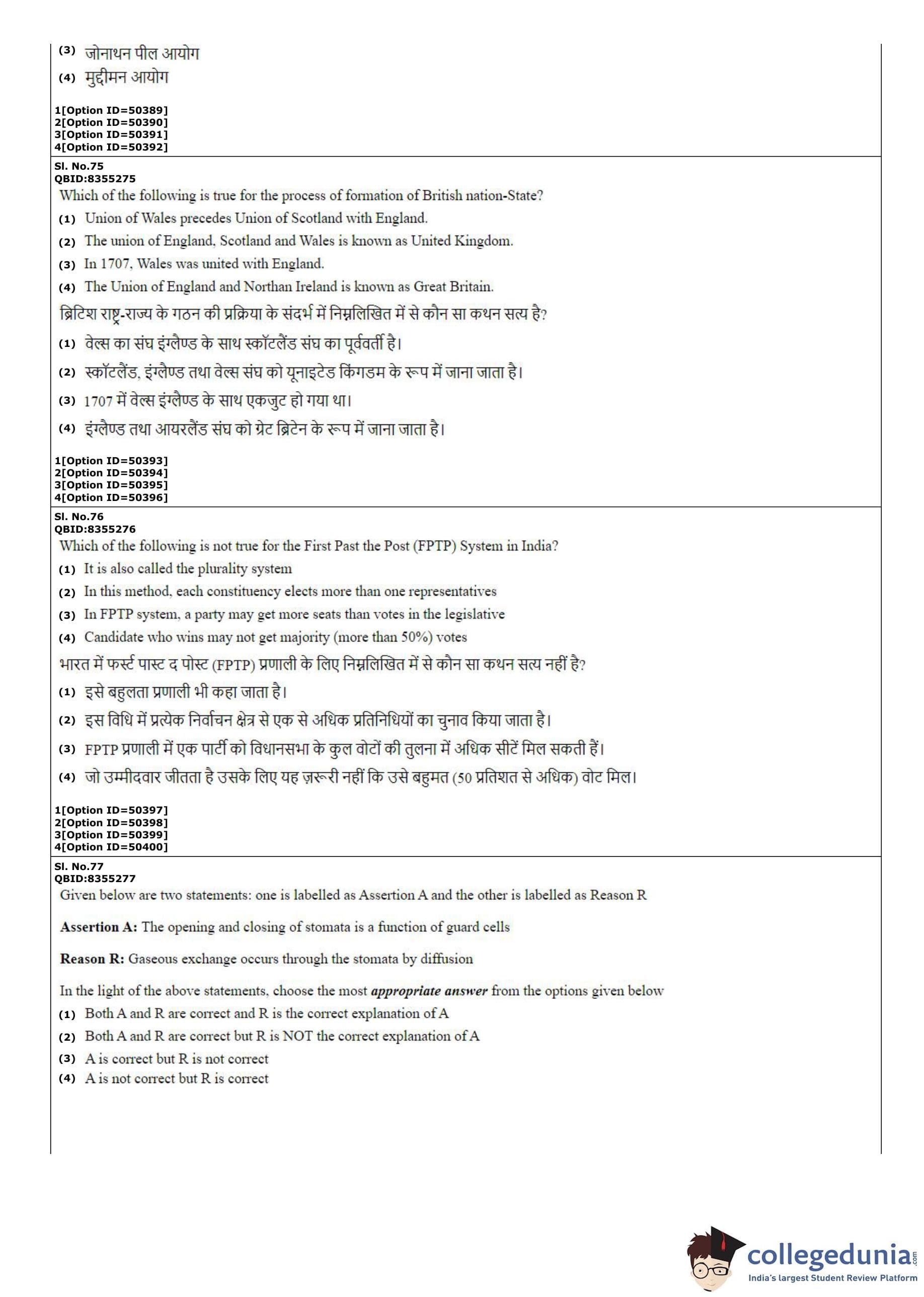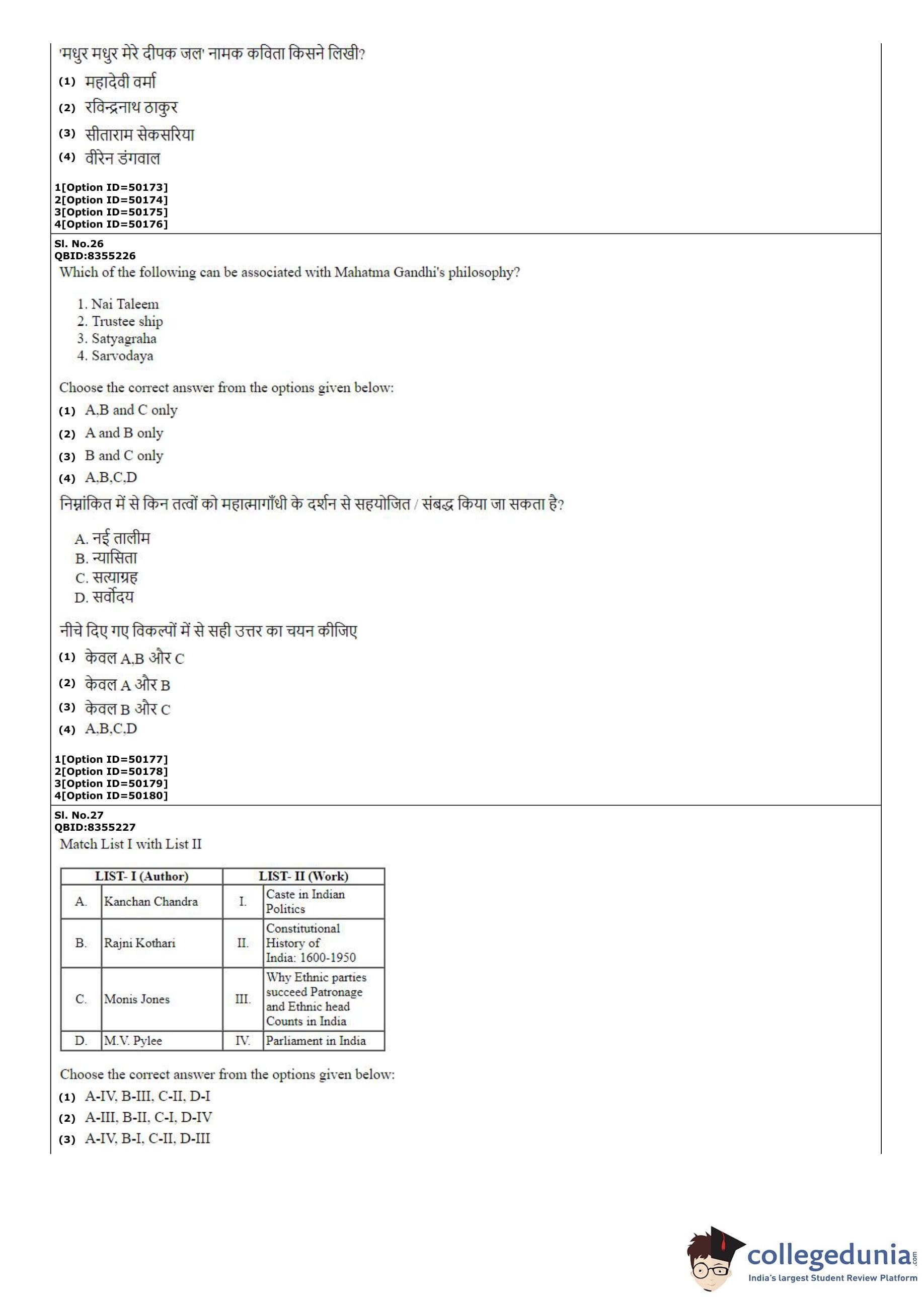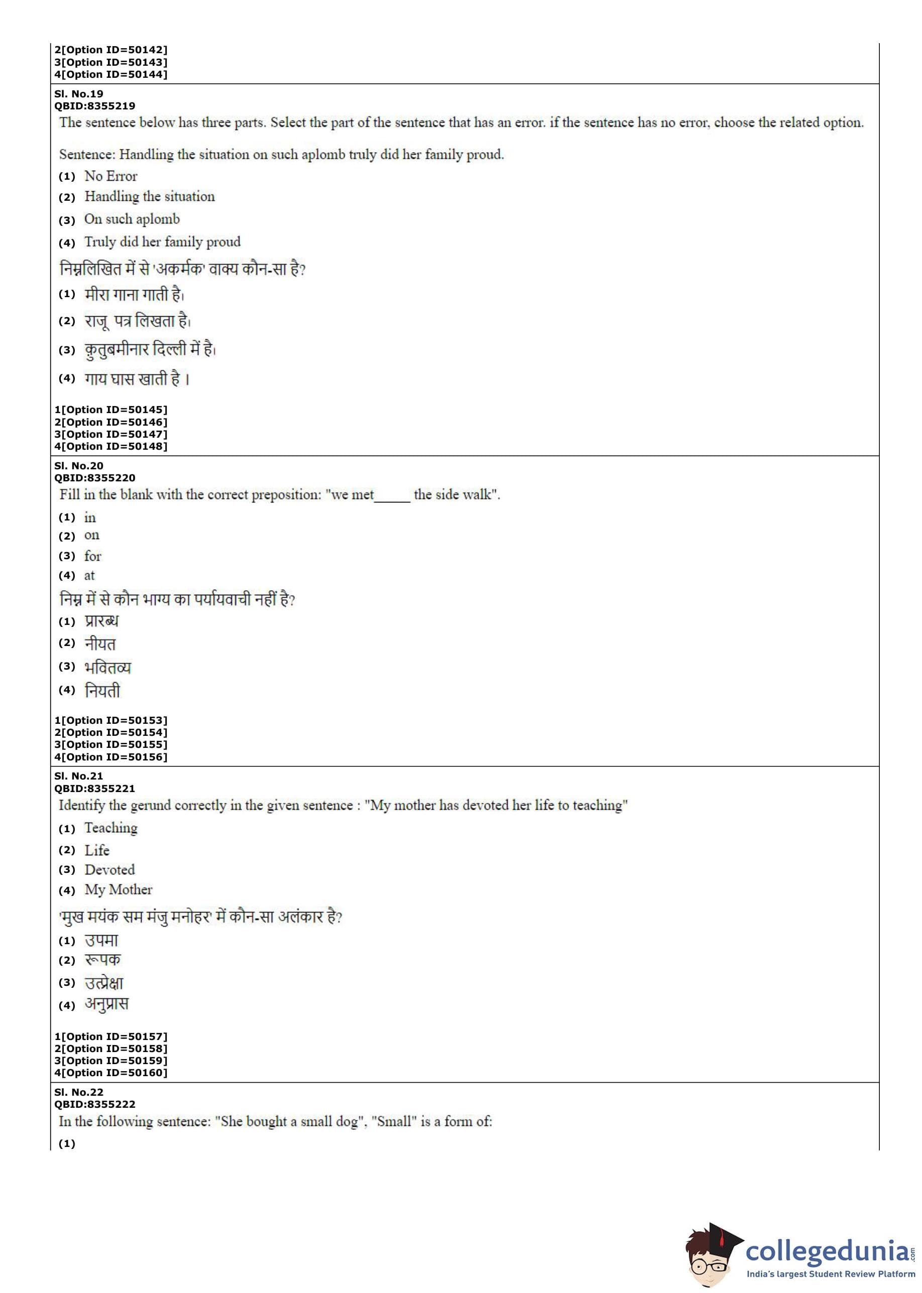 CUET PG 2022 B.Ed Question Paper with Answer Key PDF
