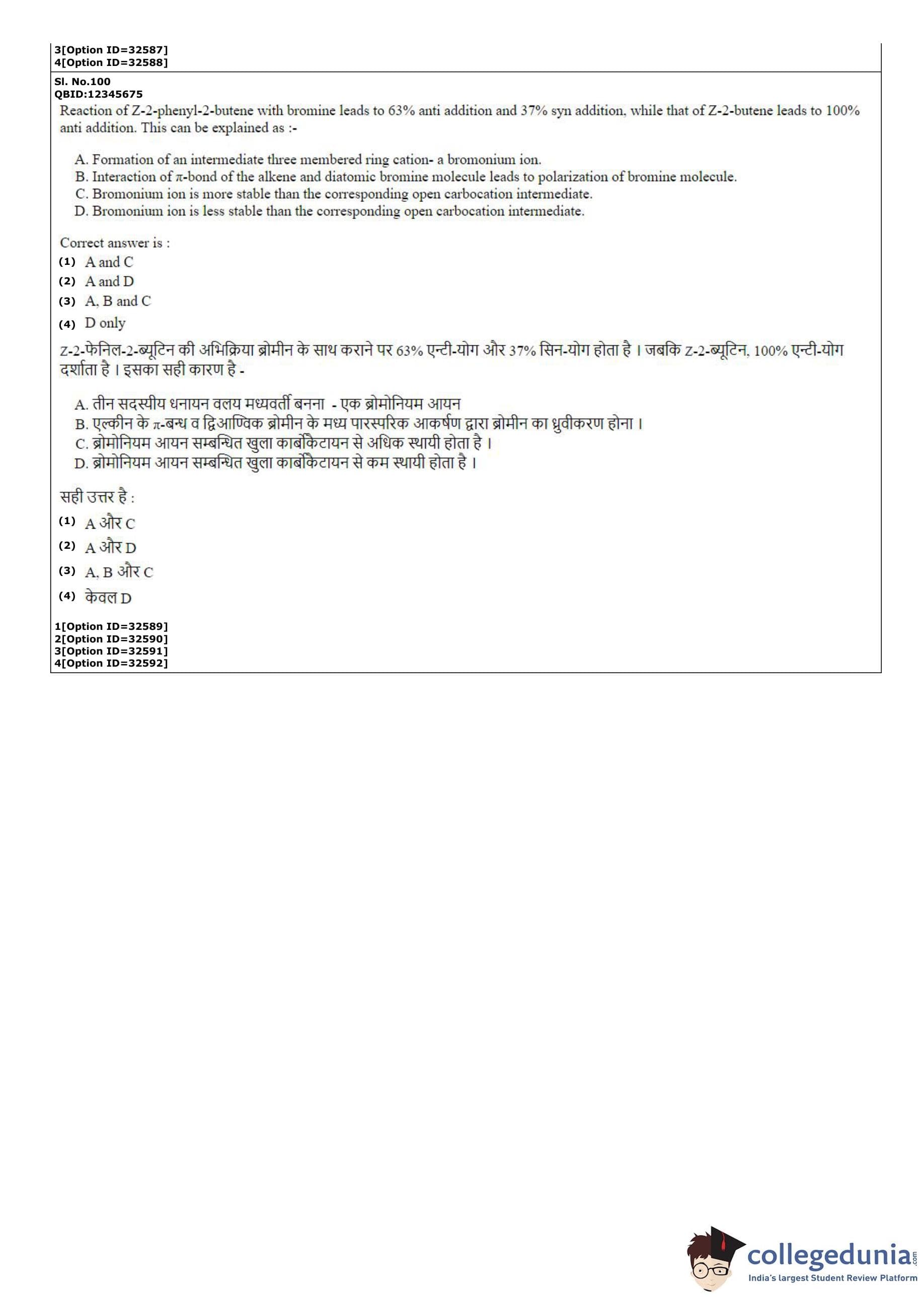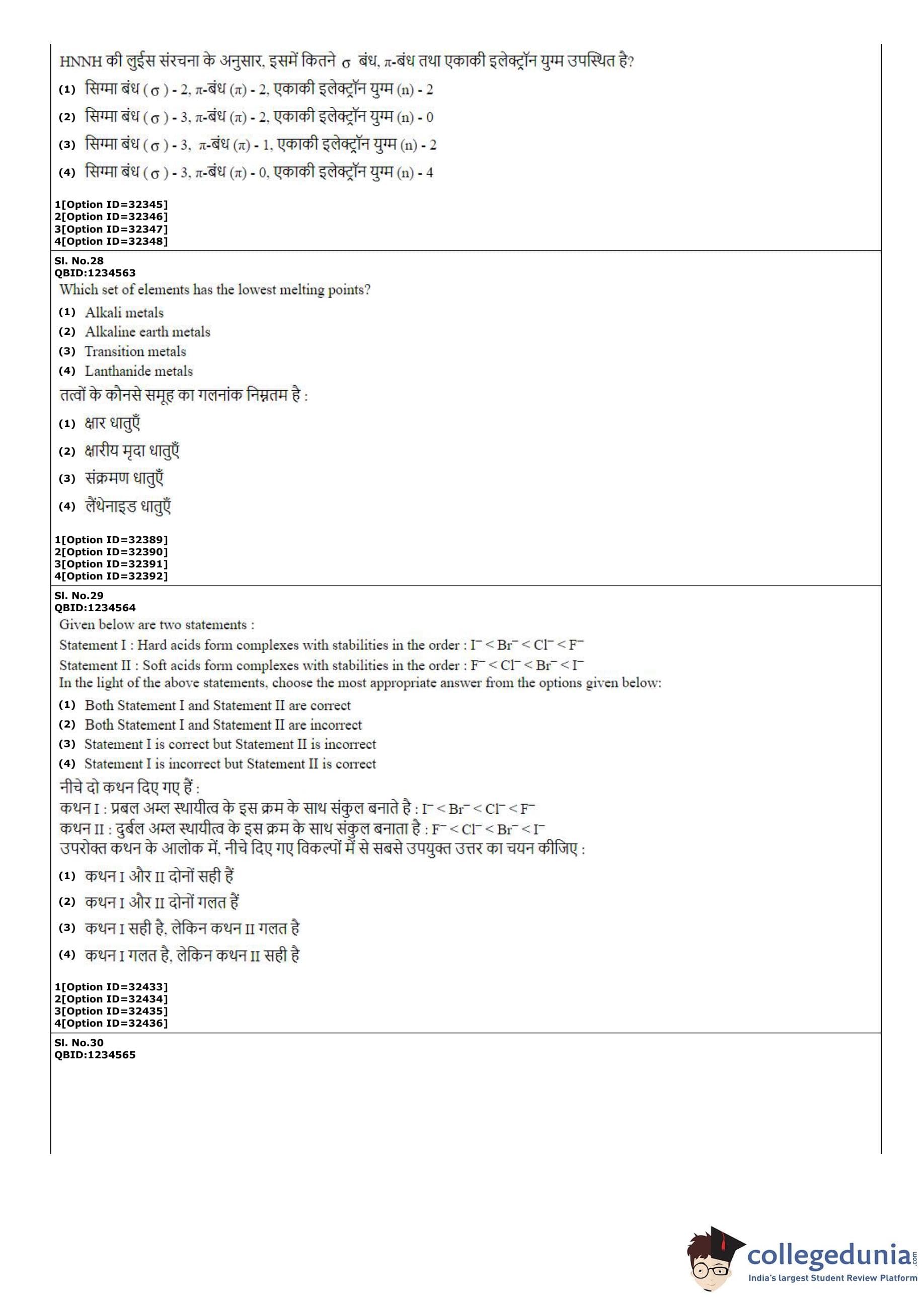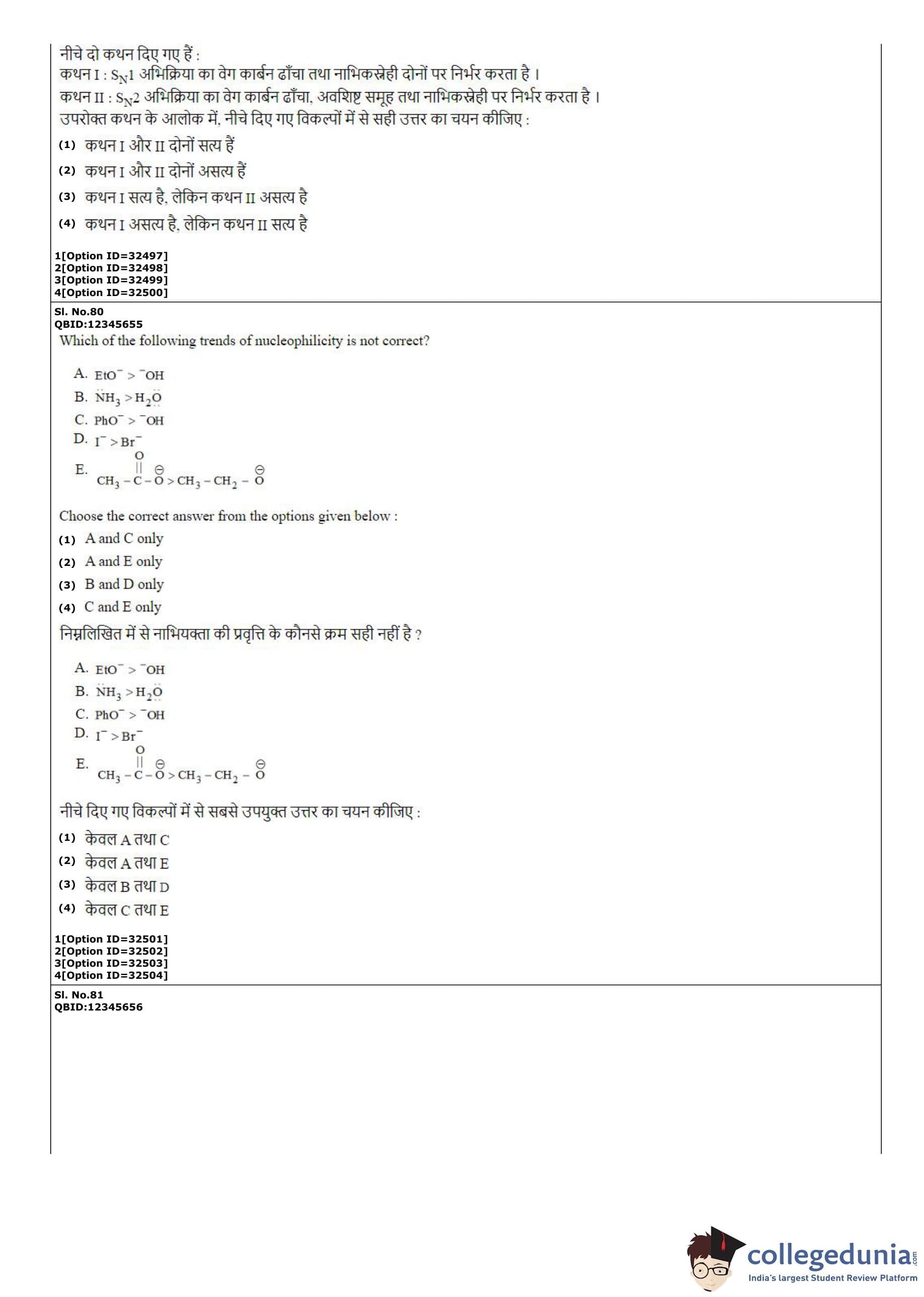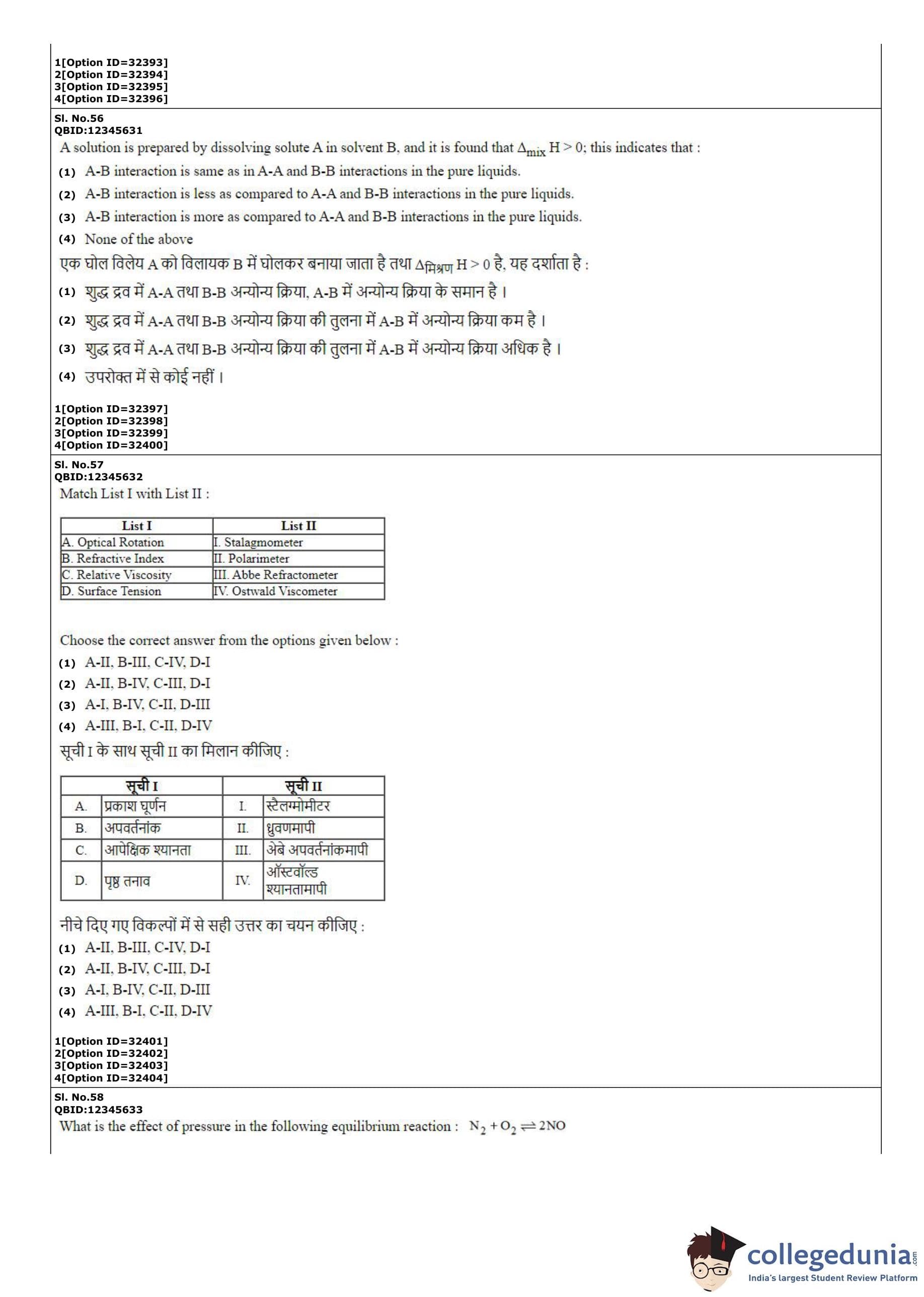 CUET PG 2022 Chemistry Question Paper with Answer Key PDF