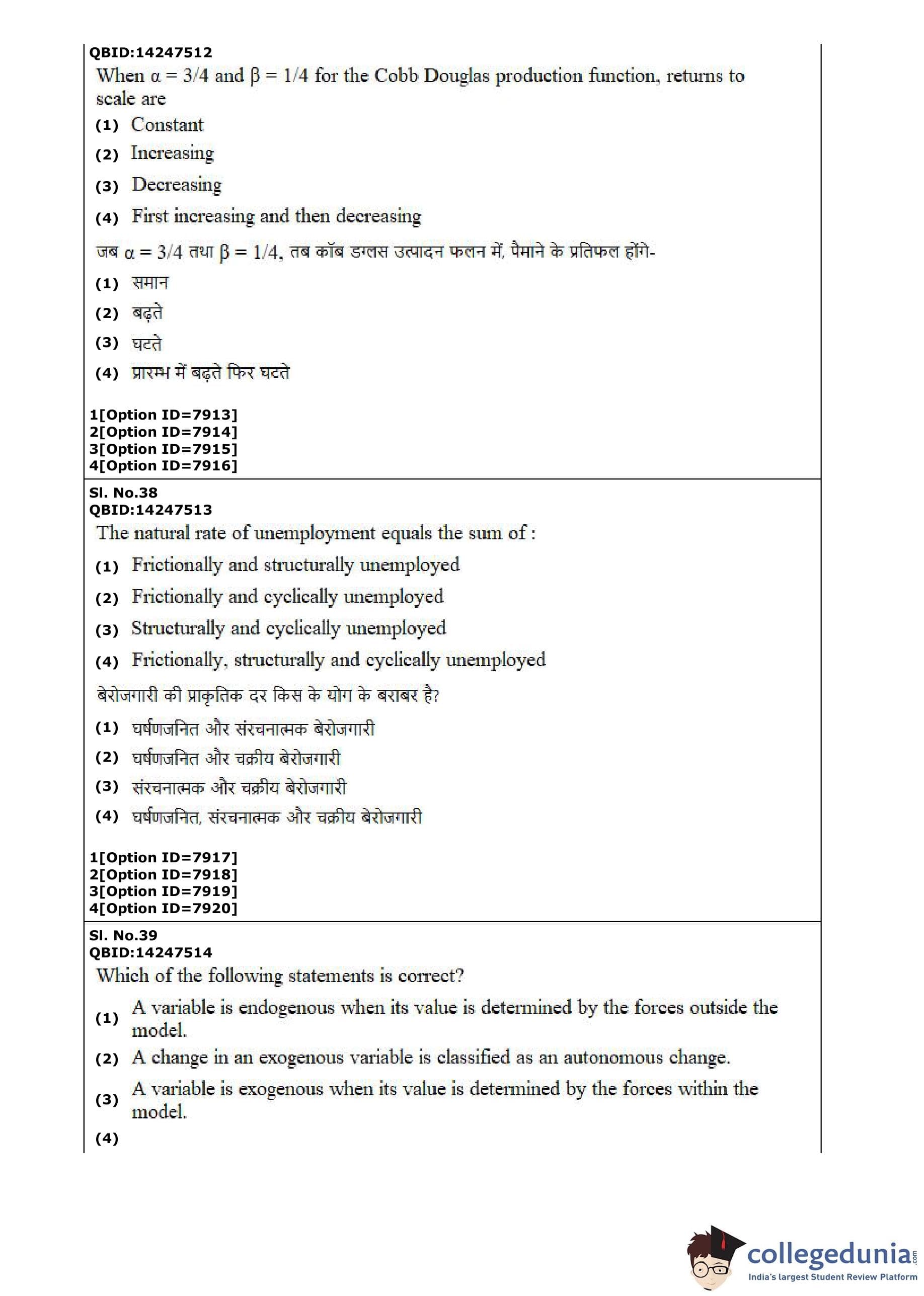 CUET PG 2022 Economics Question Paper with Answer Key PDF