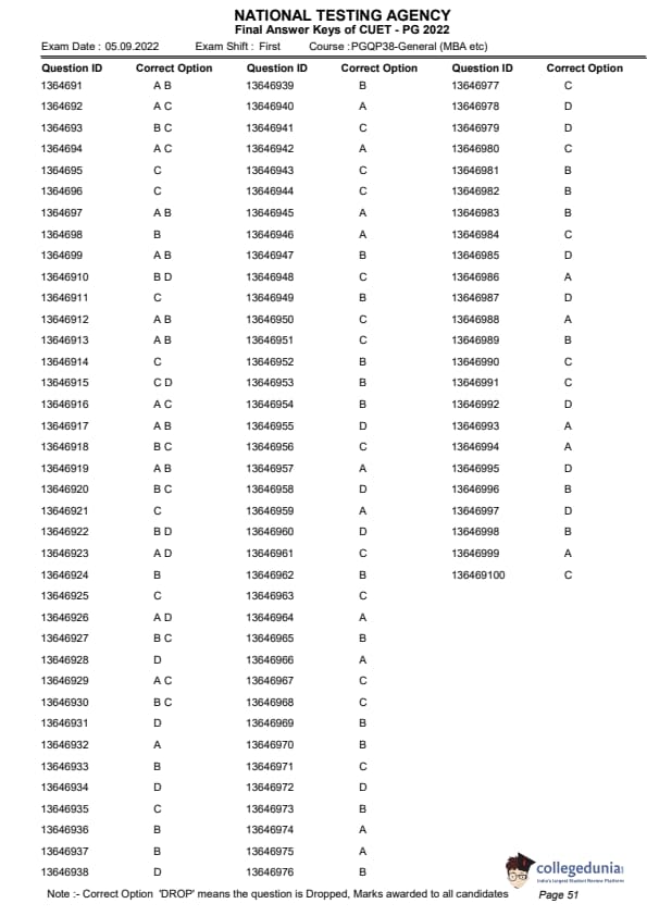 | CUET PG General (MBA) Question Paper PDF | CUET PG General (MBA) Answer Key PDF |