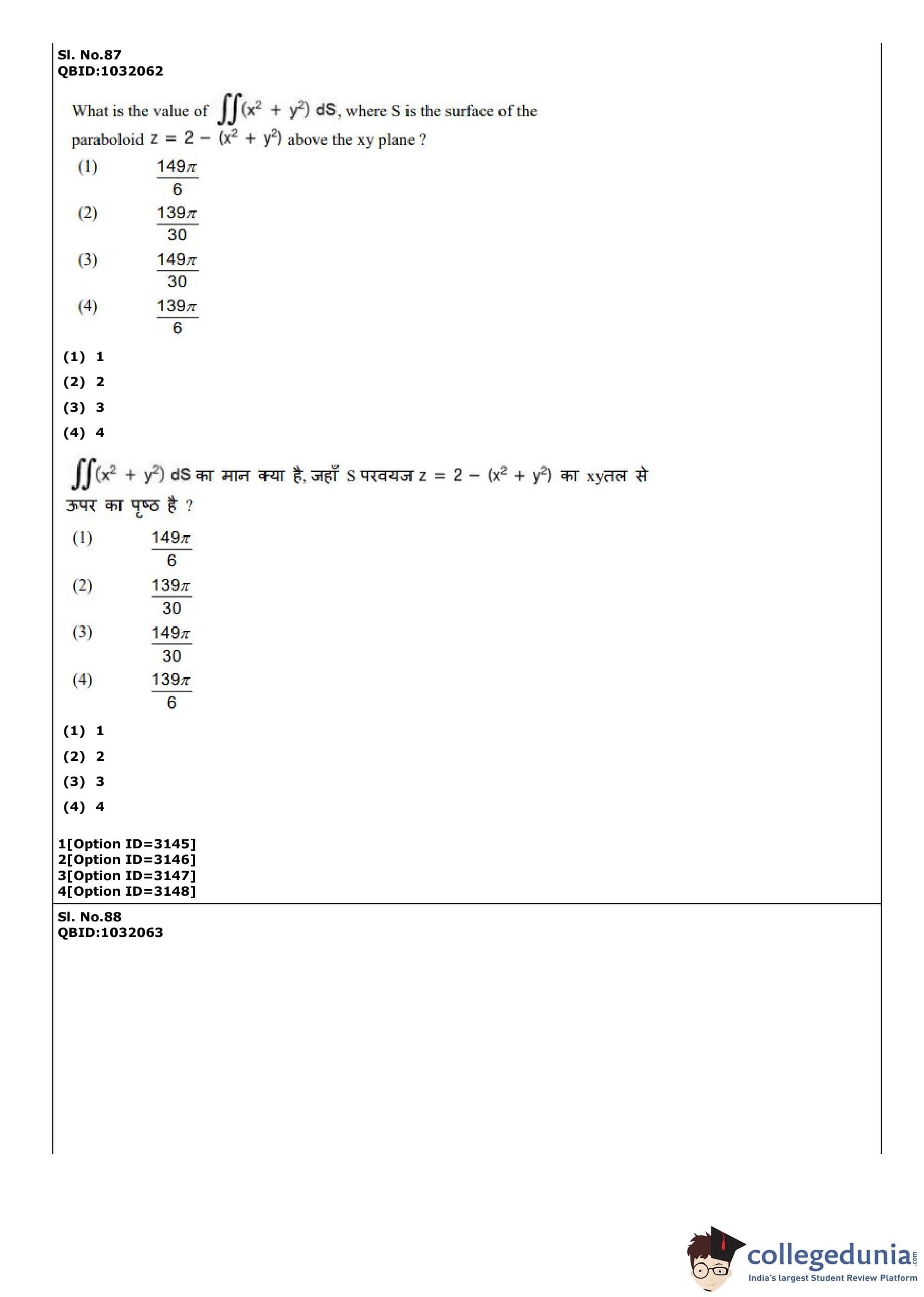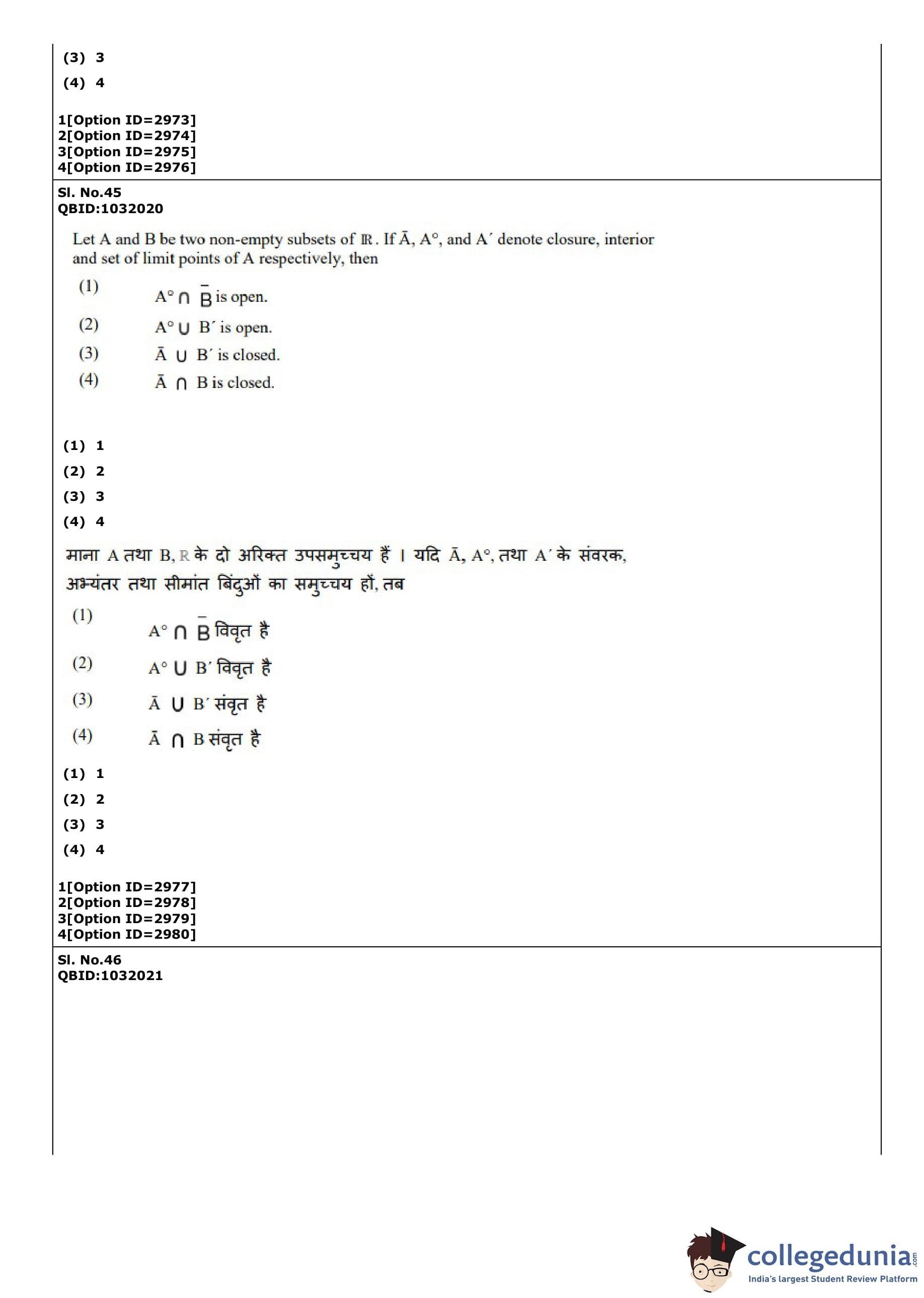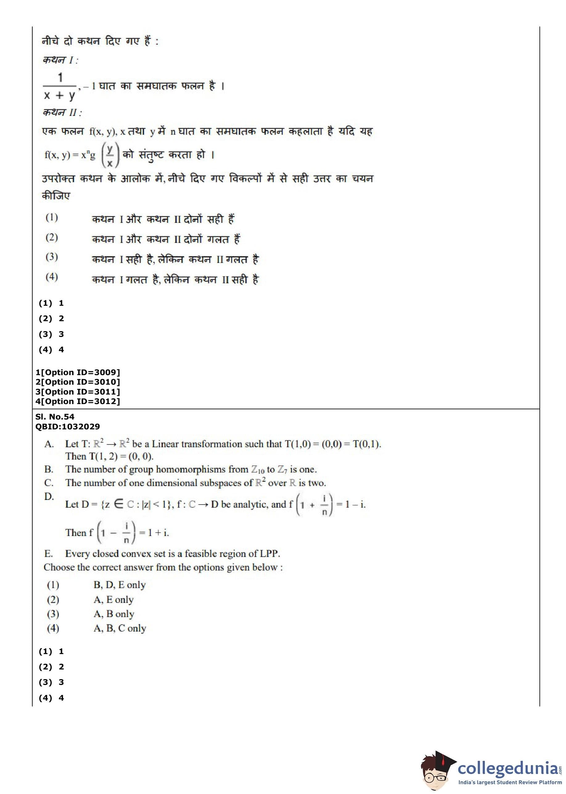 CUET PG 2022 Mathematics Question Paper with Answer Key PDF