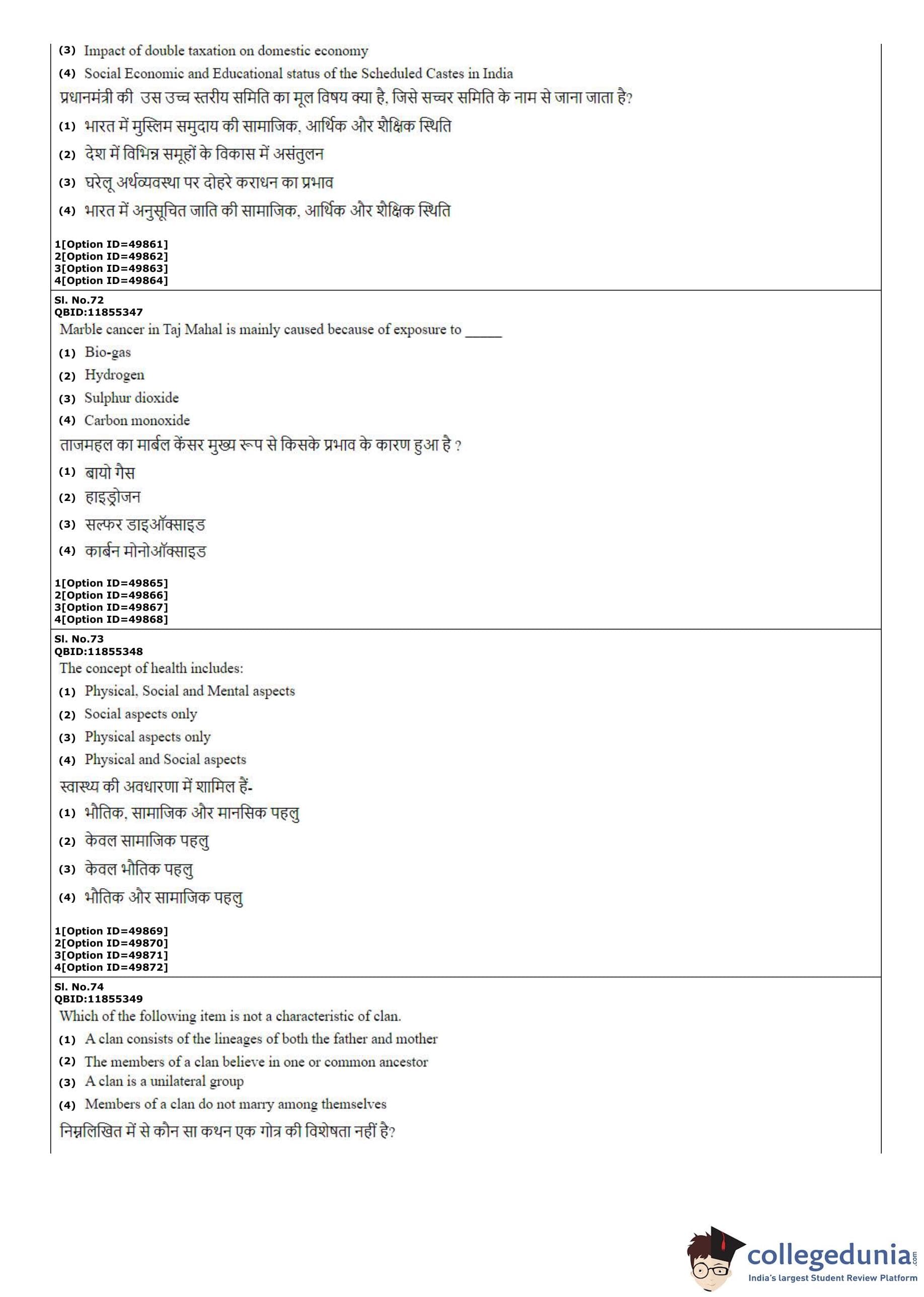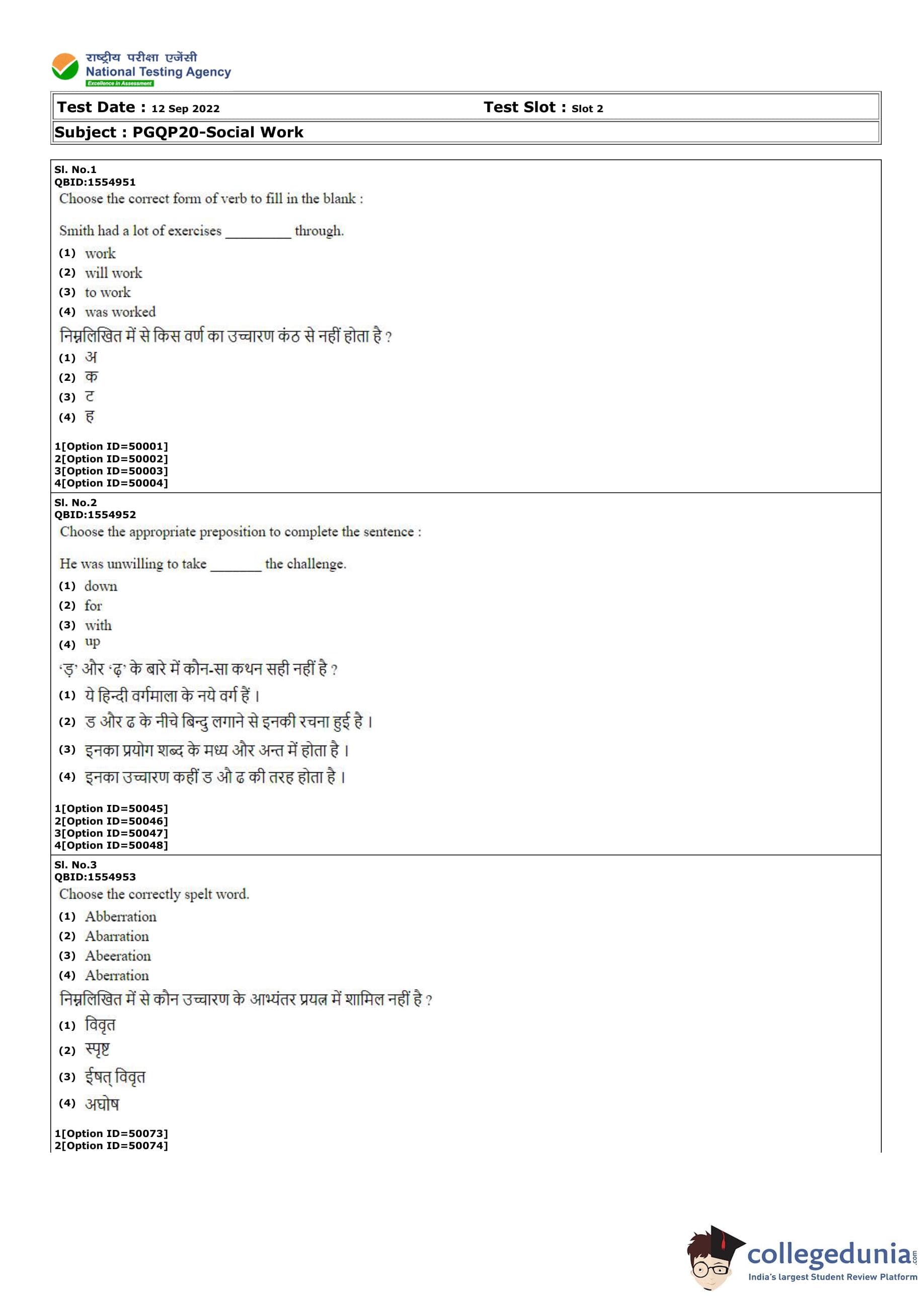 CUET PG Social Work Question Paper 2022 is available for download. CUET PG 2022 Social Work paper was conducted by National Testing Agency (NTA) on September 12, 2022 in Shift 2. The question paper comprised a total of 100 questions.