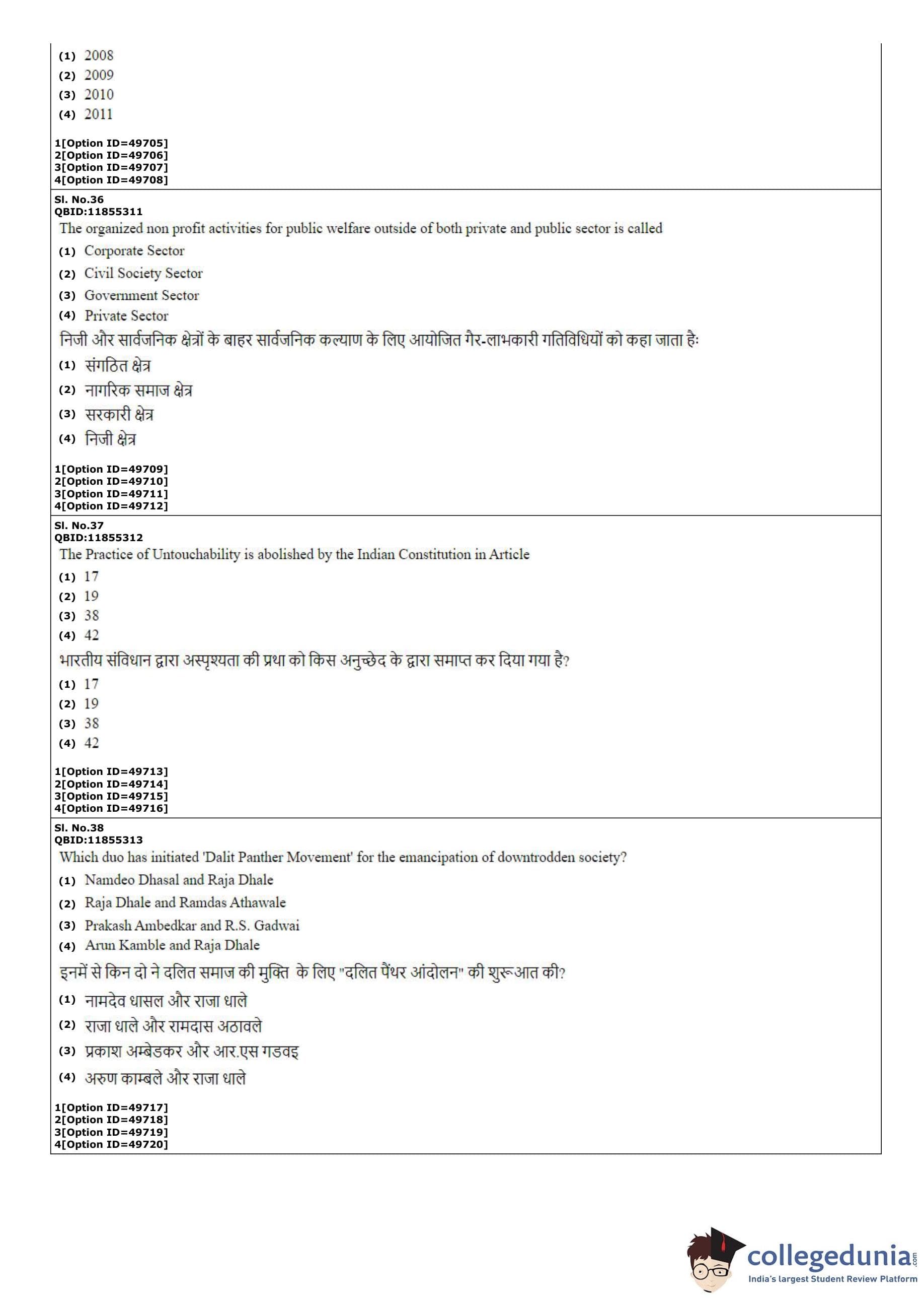 | CUET PG Social Work Question Paper PDF | CUET PG Social Work Answer Key PDF |