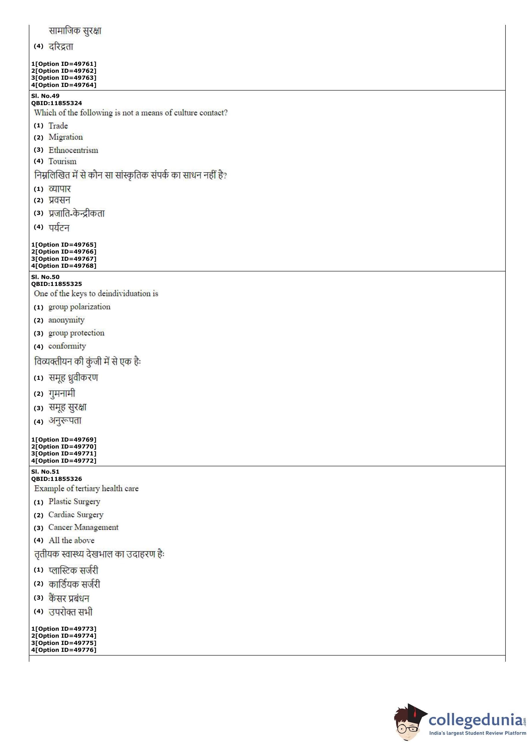 CUET PG 2022 Social Work Question Paper with Answer Key PDF