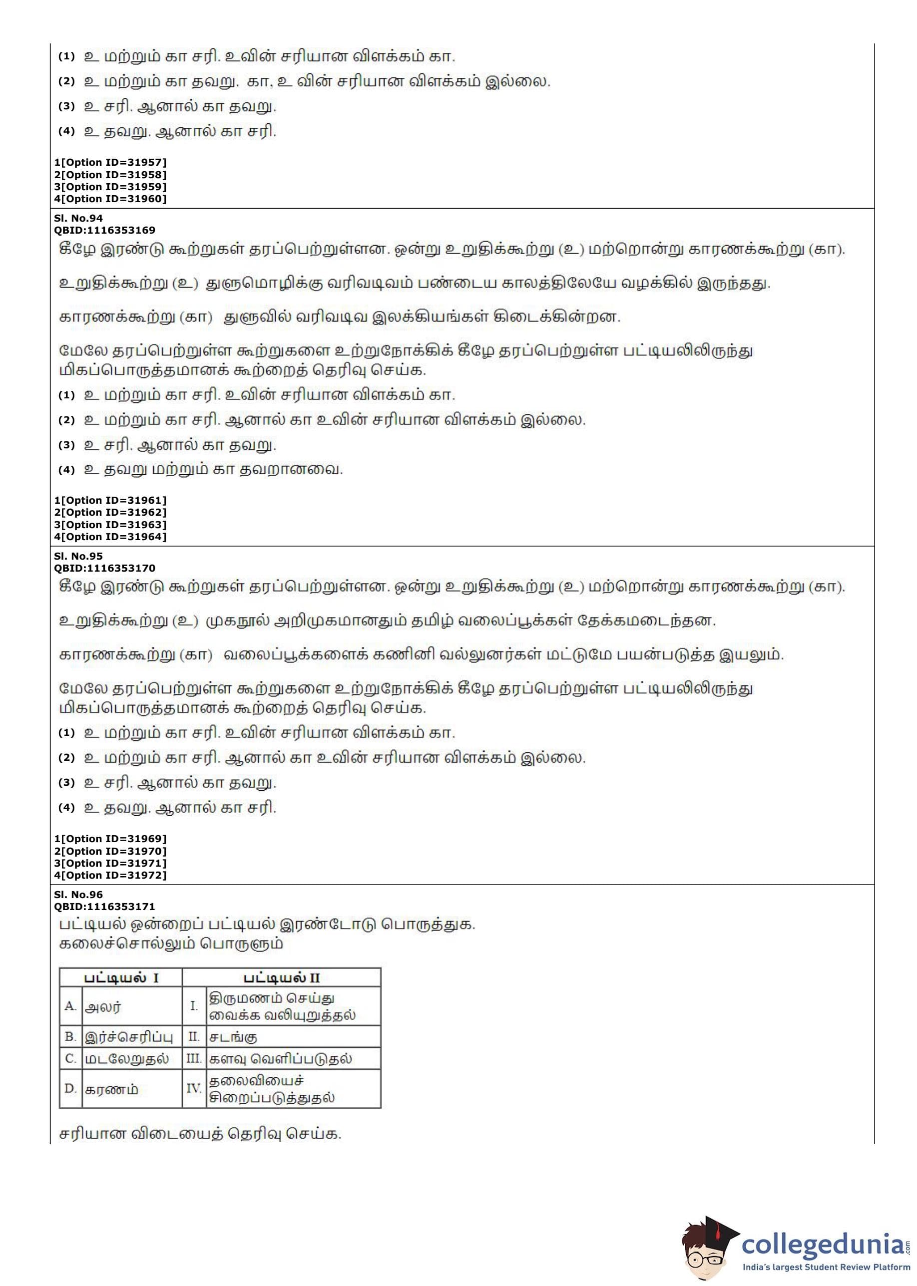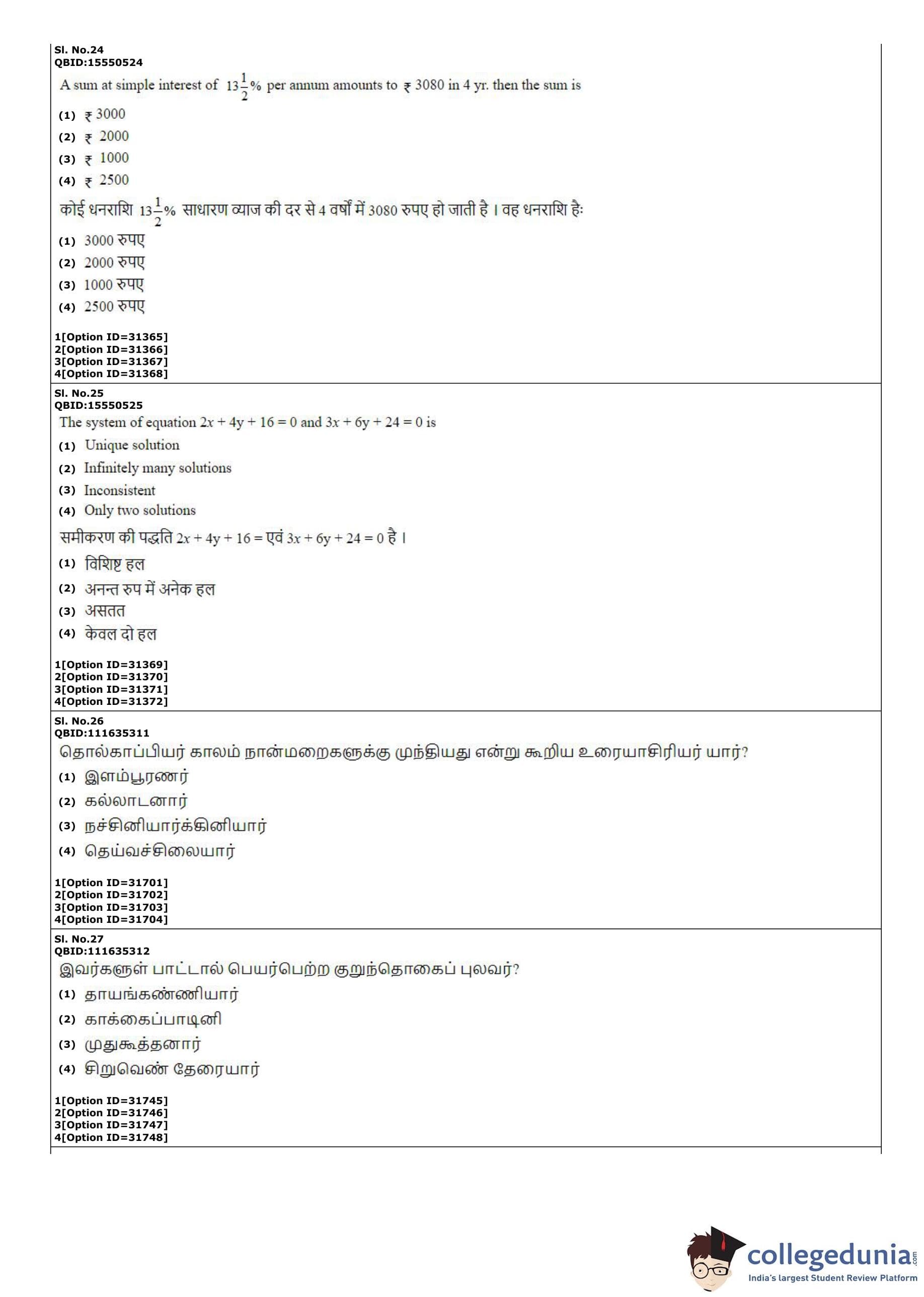 CUET PG 2022 Tamil Question Paper with Answer Key PDF