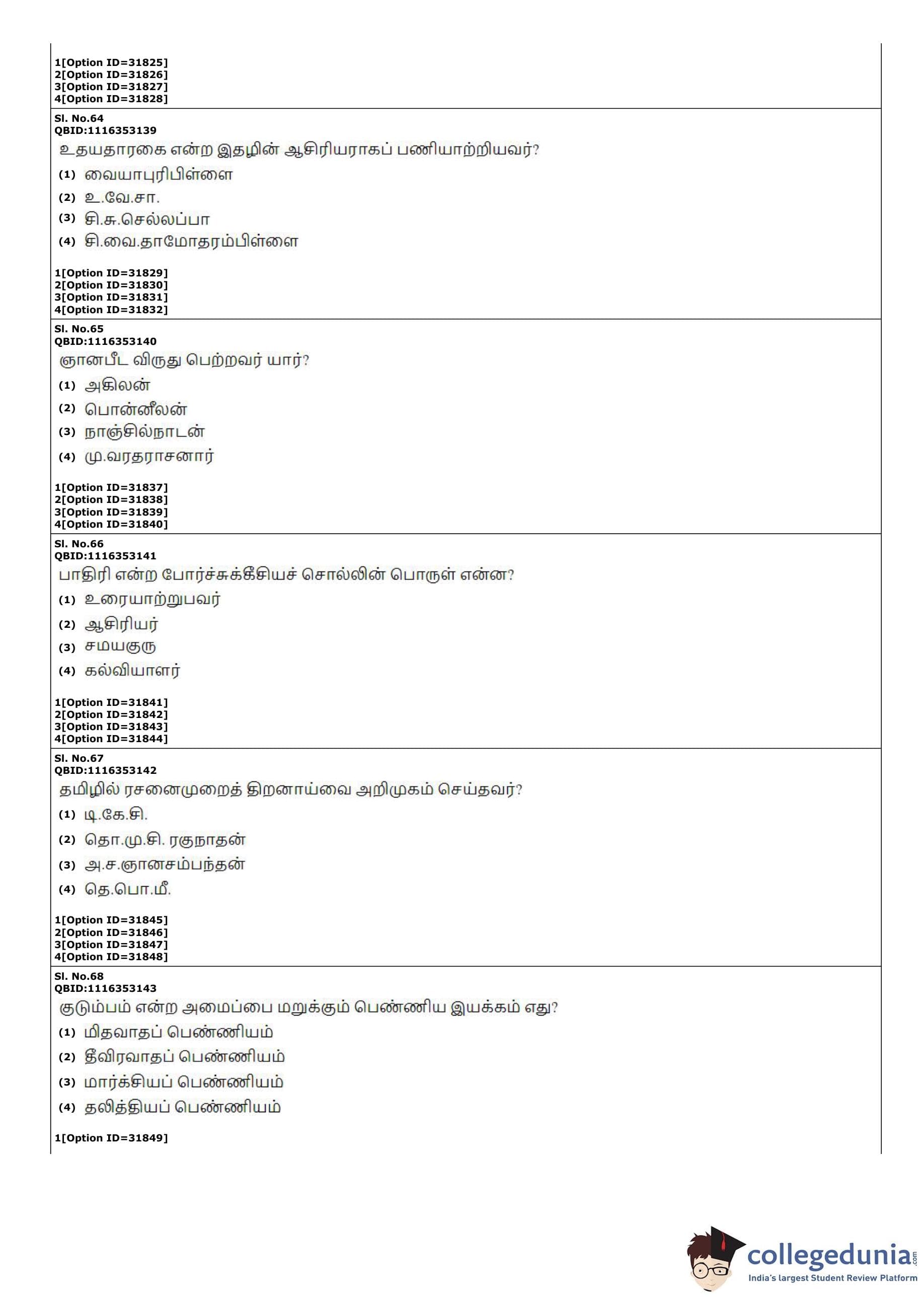 | CUET PG Tamil Question Paper PDF | CUET PG Tamil Answer Key PDF |