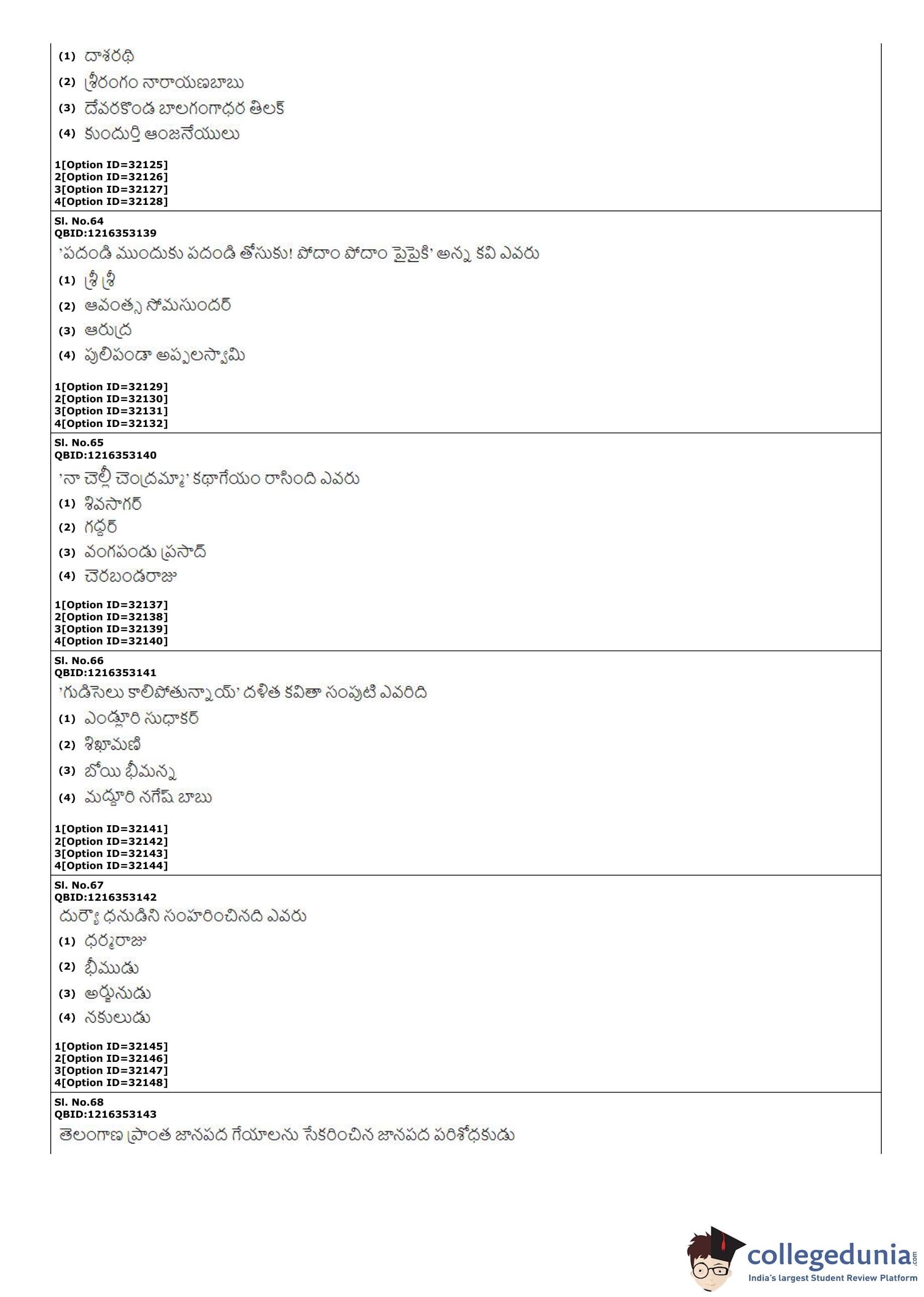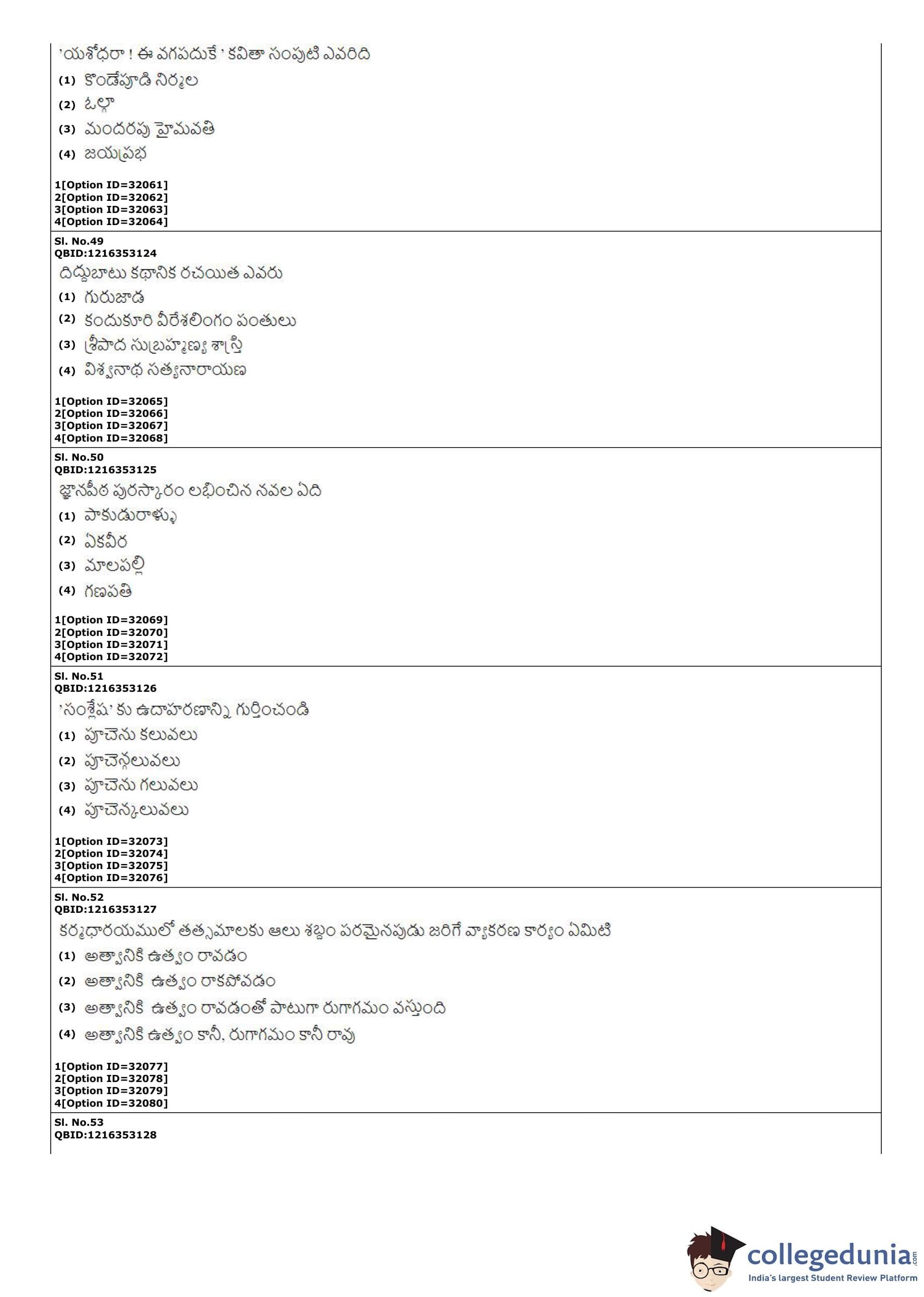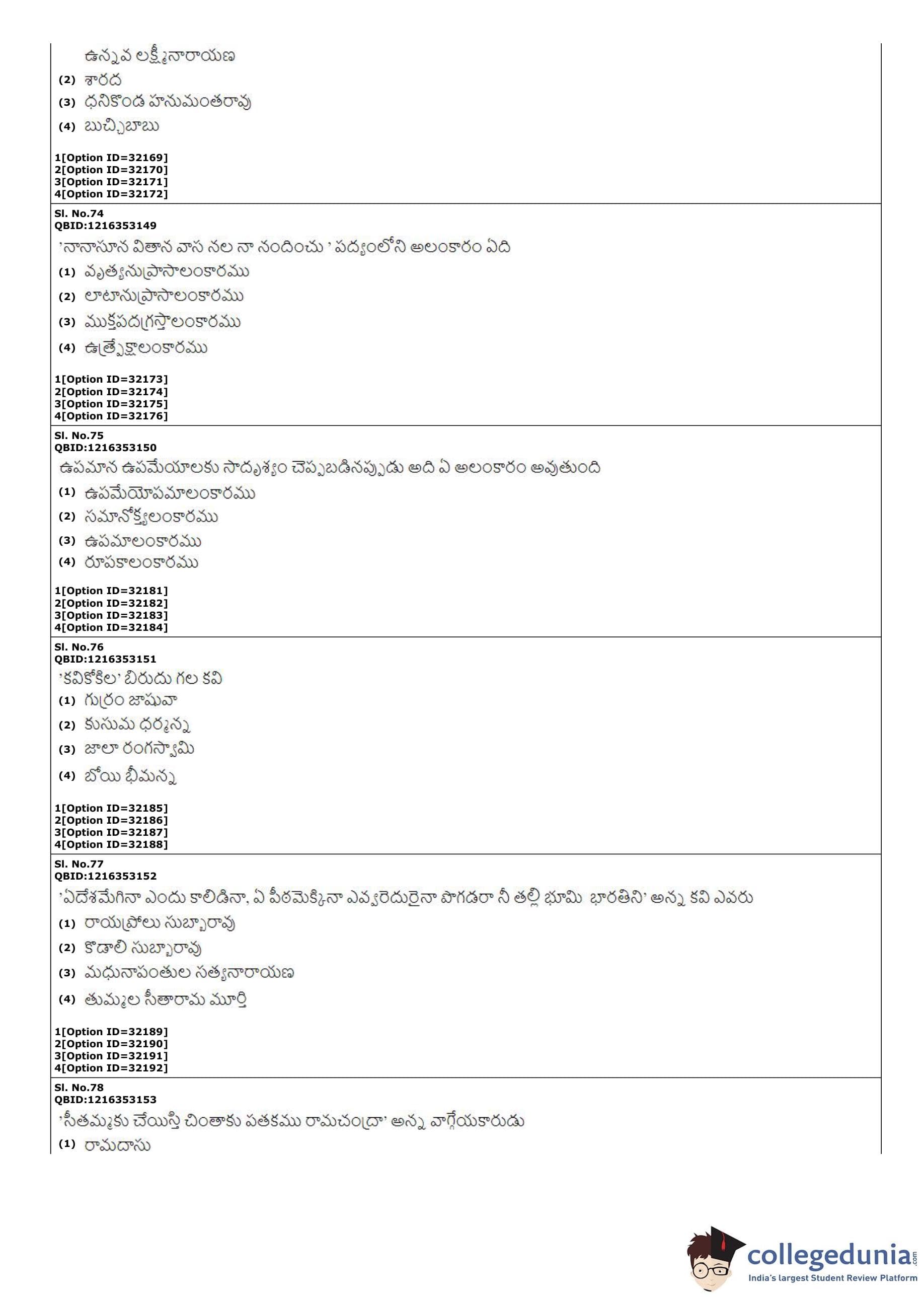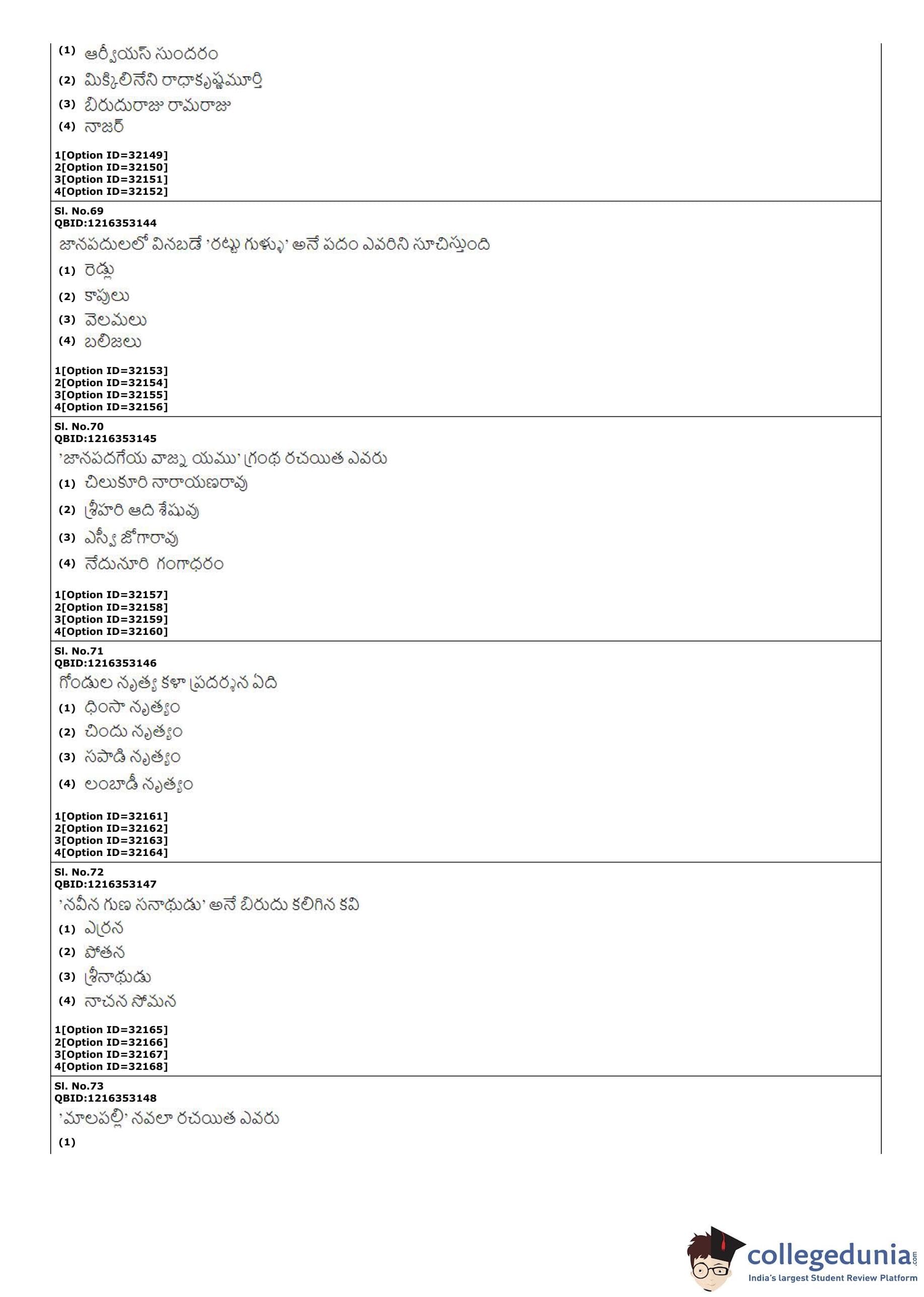 | CUET PG Telugu Question Paper PDF | CUET PG Telugu Answer Key PDF |