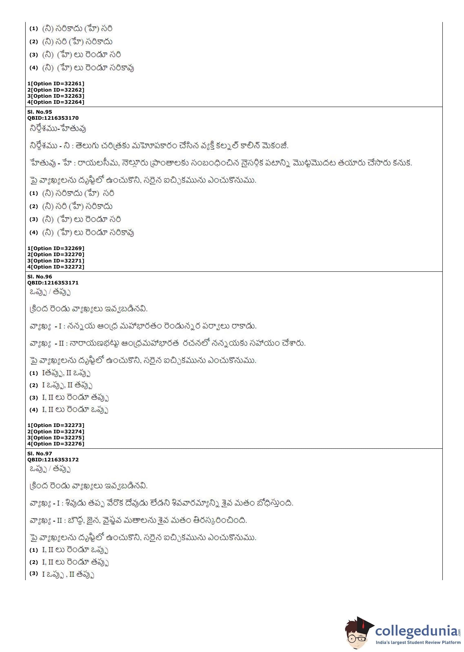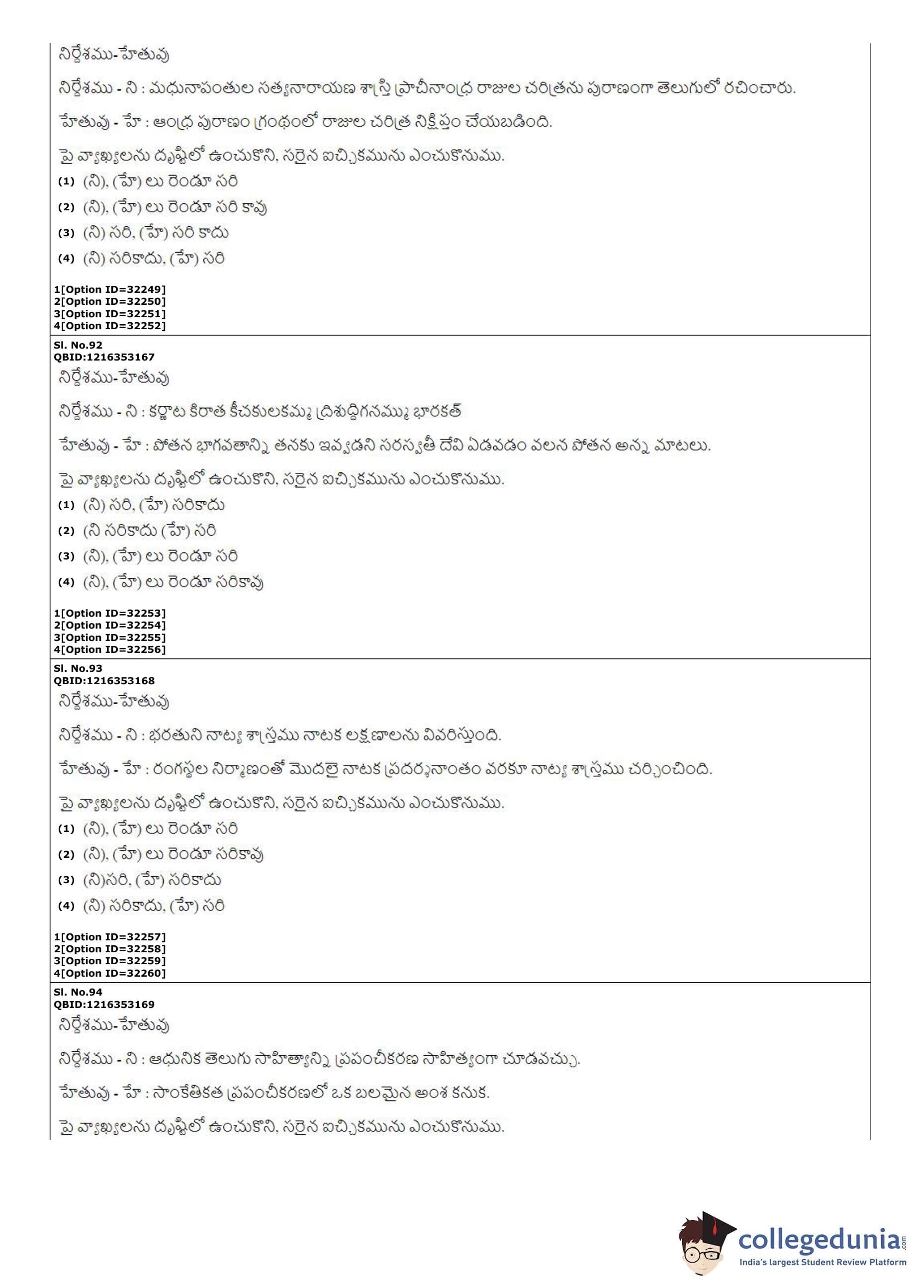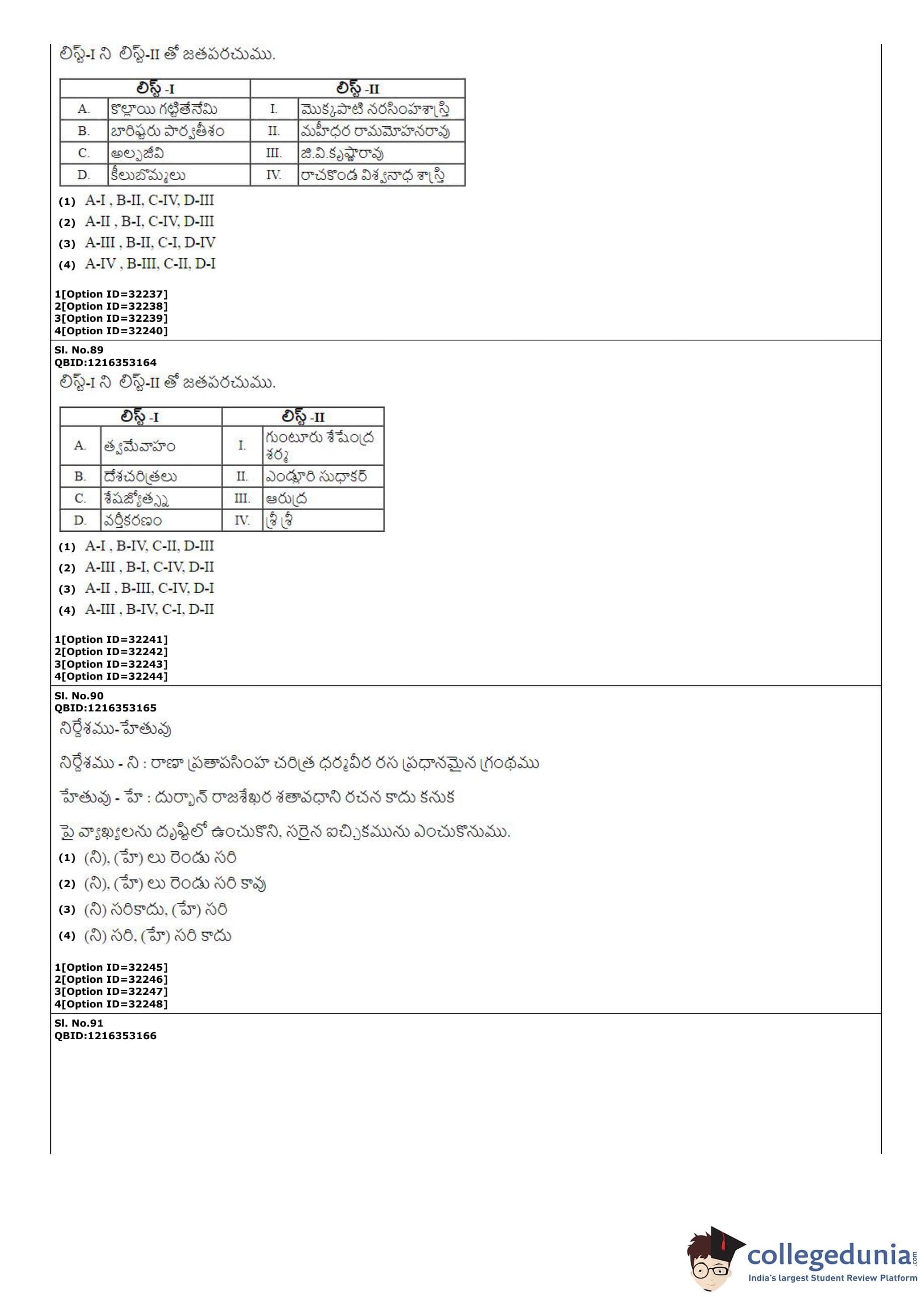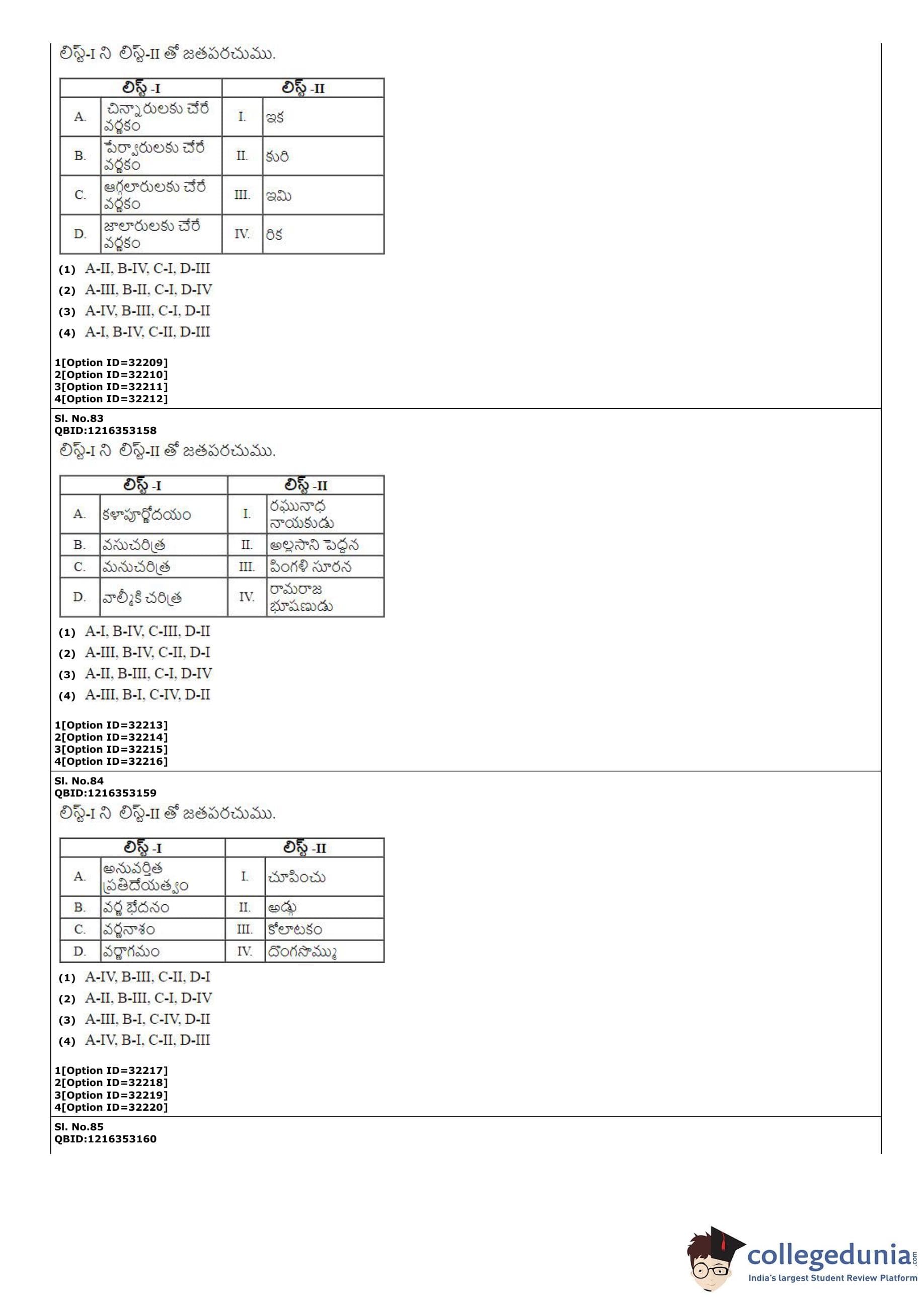 | CUET PG Telugu Question Paper PDF | CUET PG Telugu Answer Key PDF |