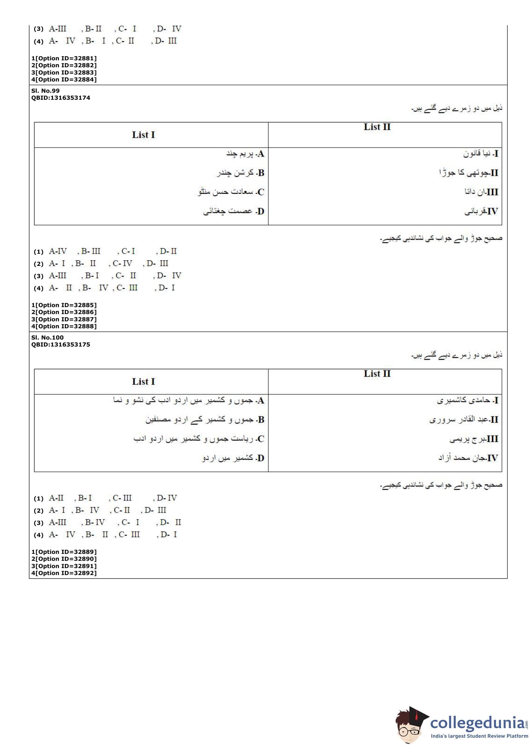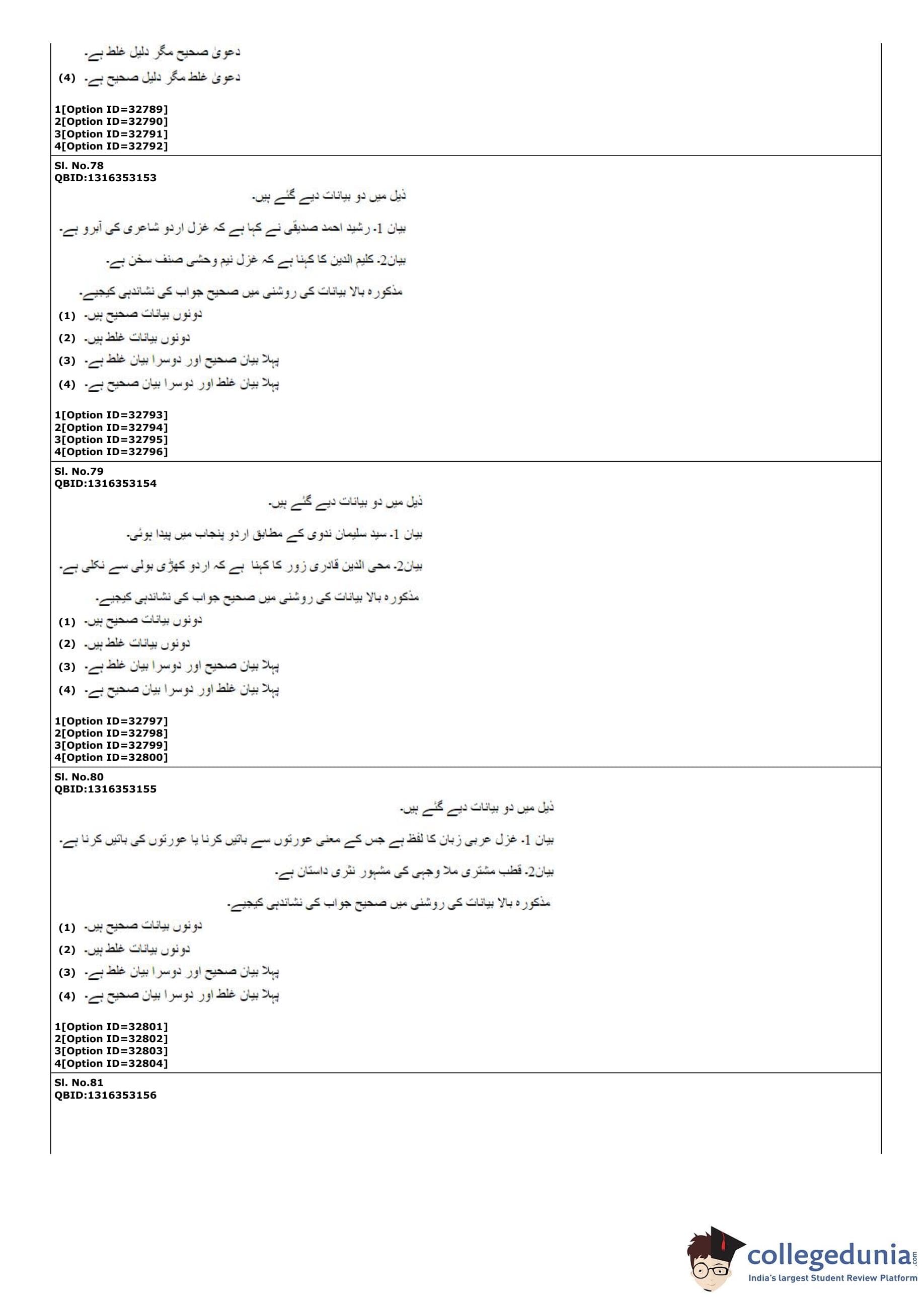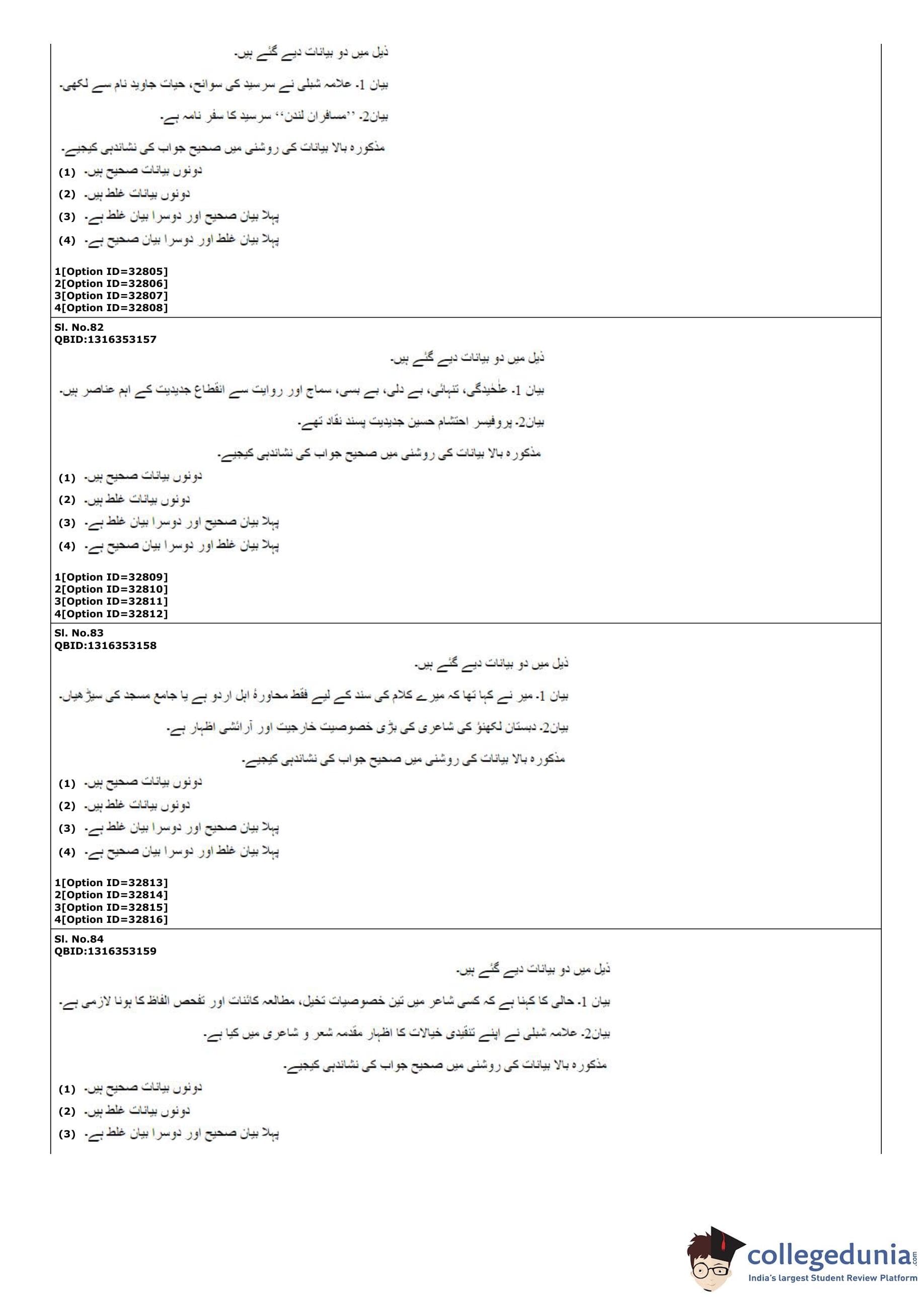 | CUET PG Urdu Question Paper PDF | CUET PG Urdu Answer Key PDF |