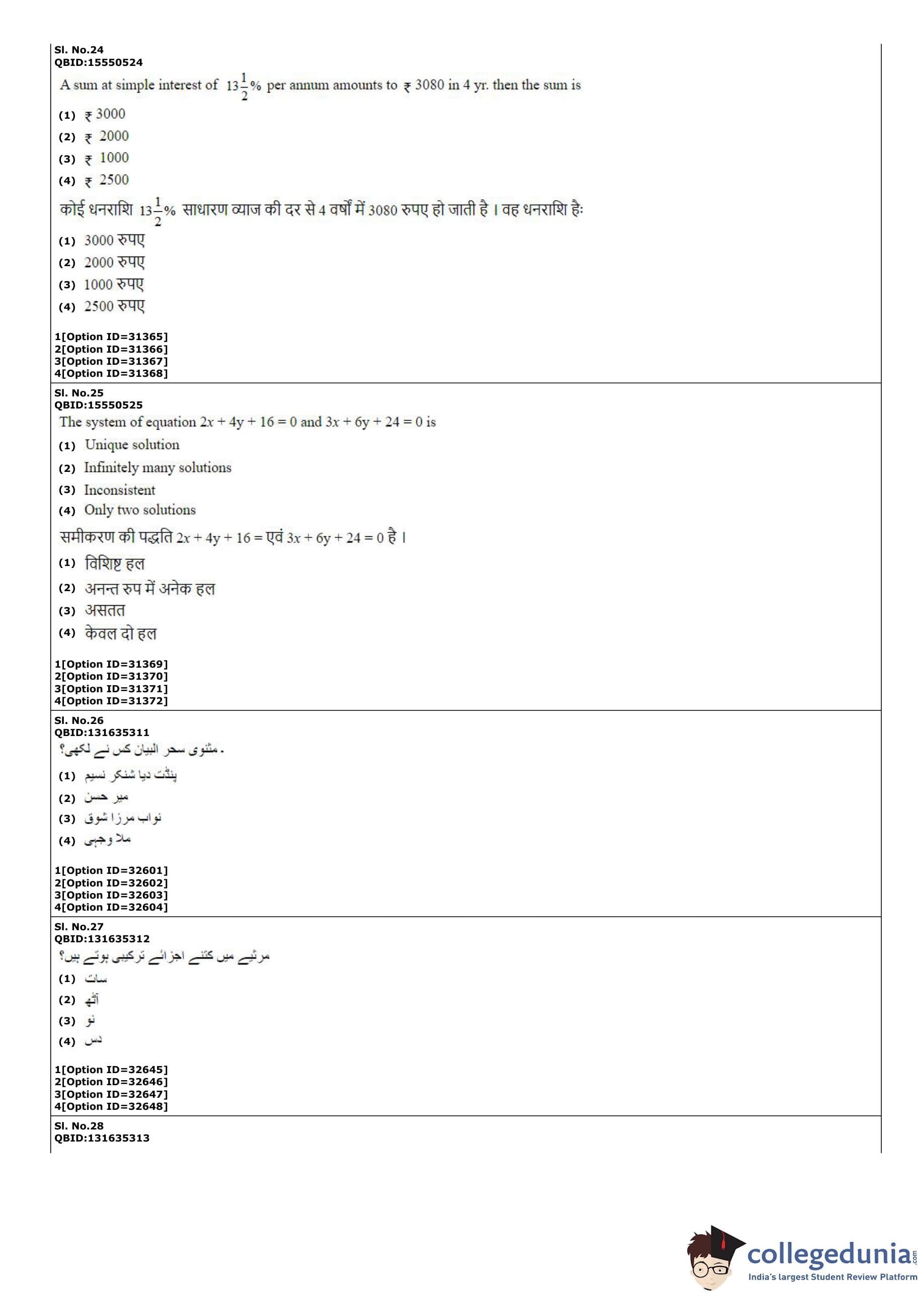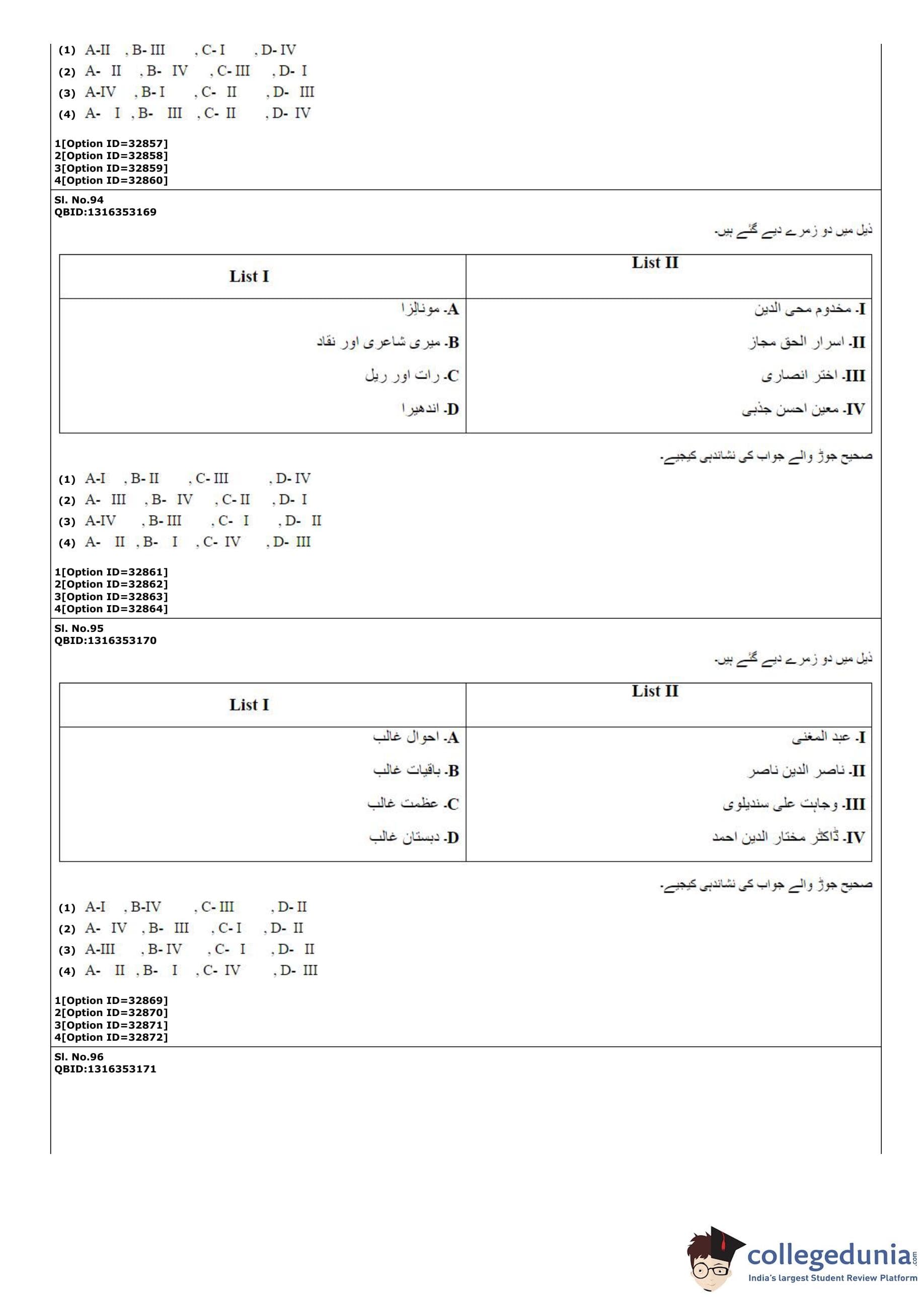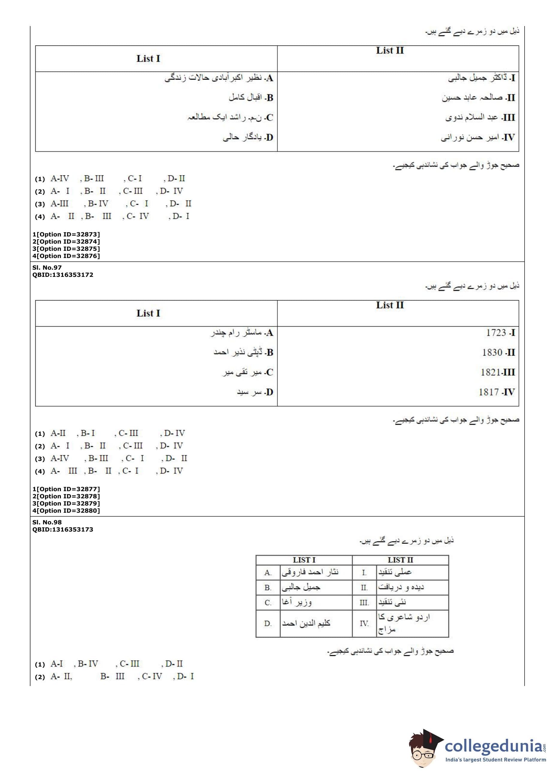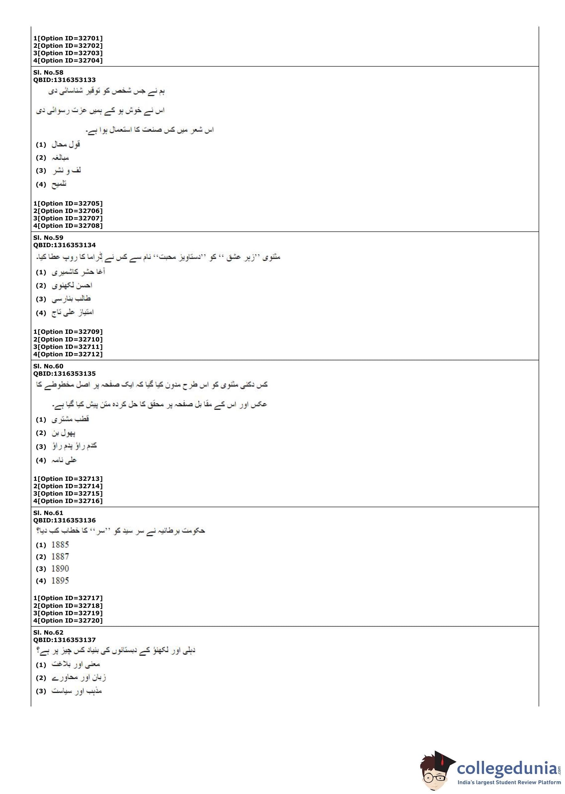 | CUET PG Urdu Question Paper PDF | CUET PG Urdu Answer Key PDF |