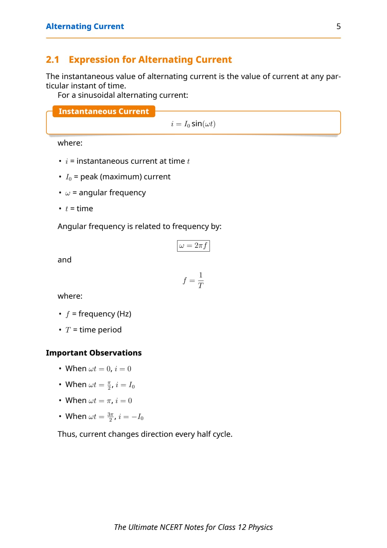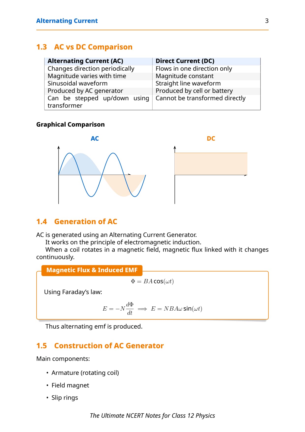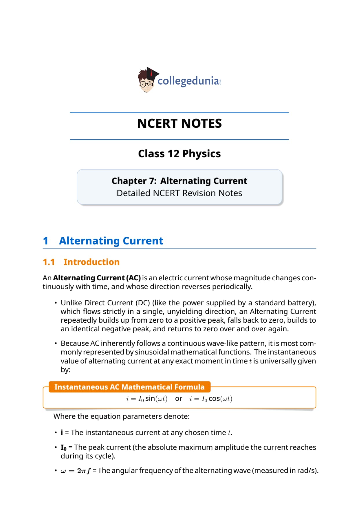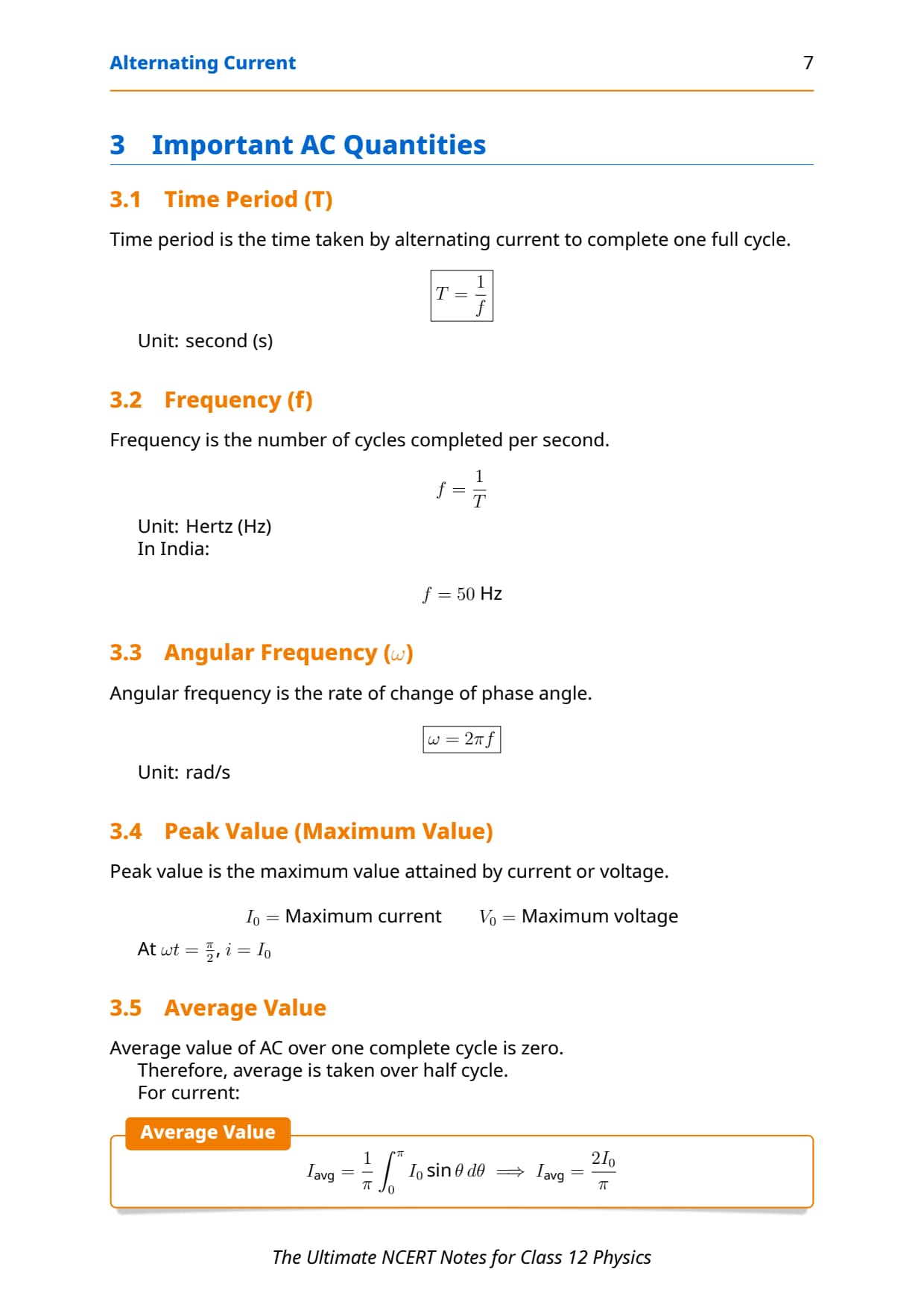 Chapter 7 Alternating Current Notes HD PDF