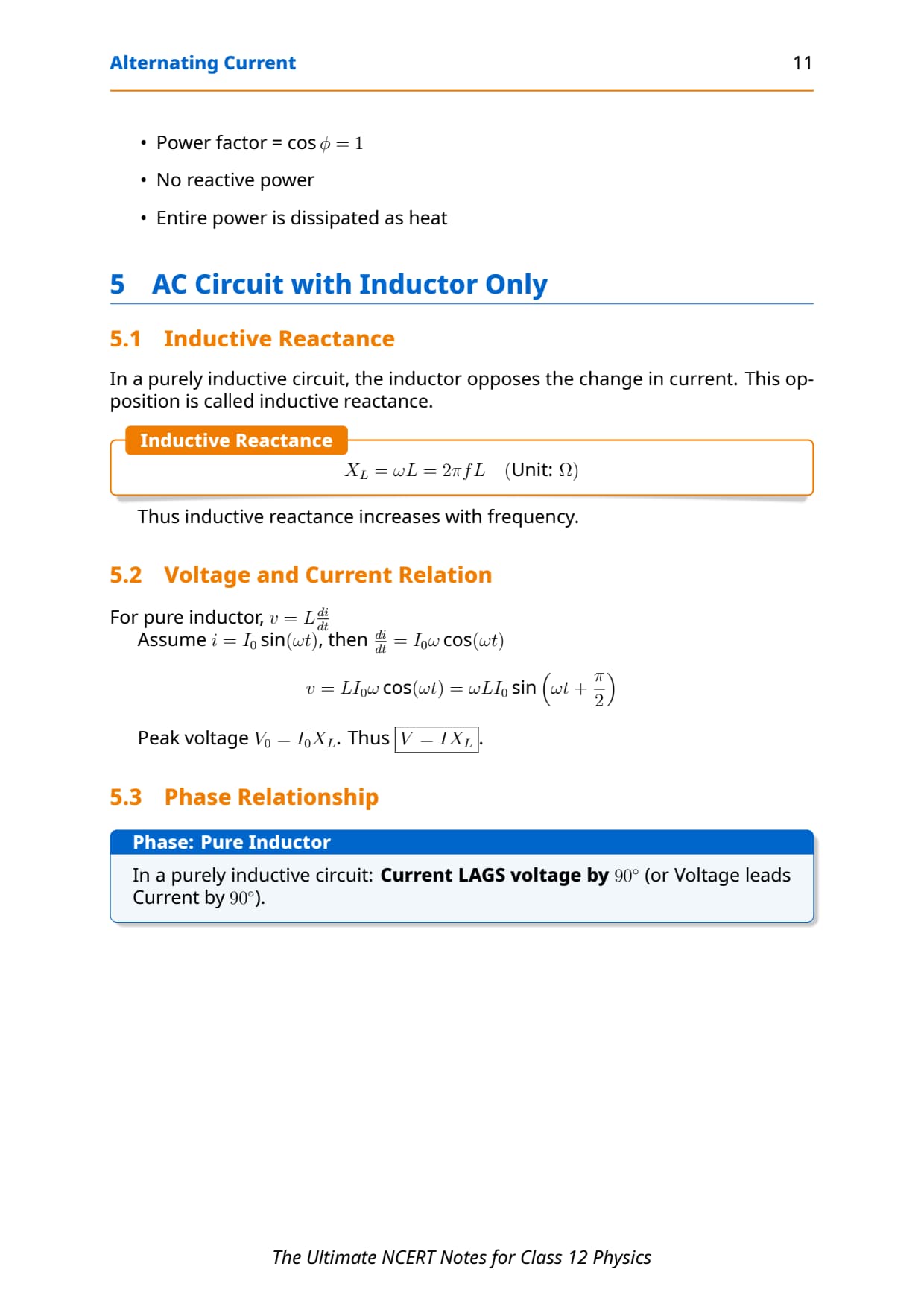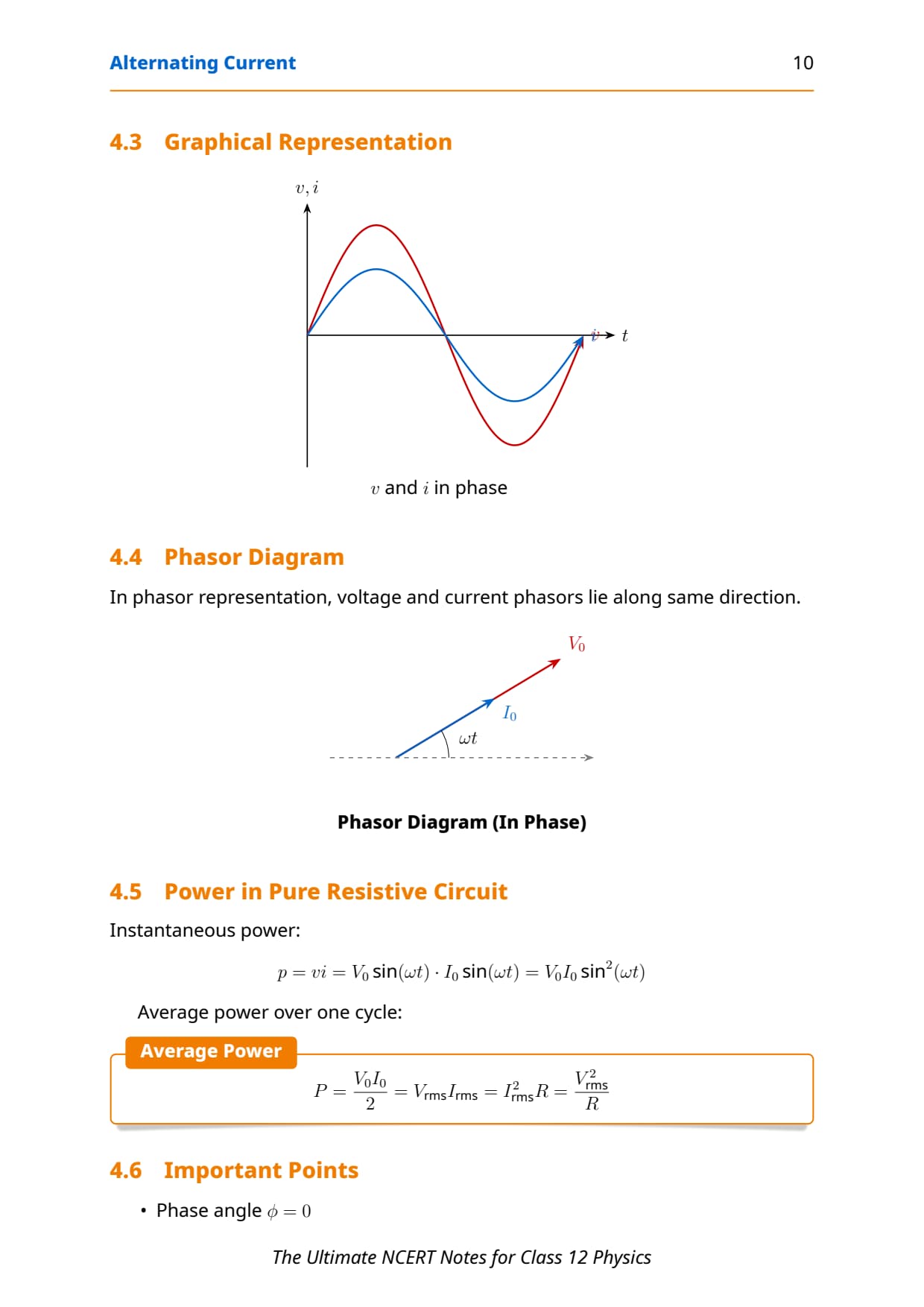 • AC power derivation (\( P = VI\cos\phi \))