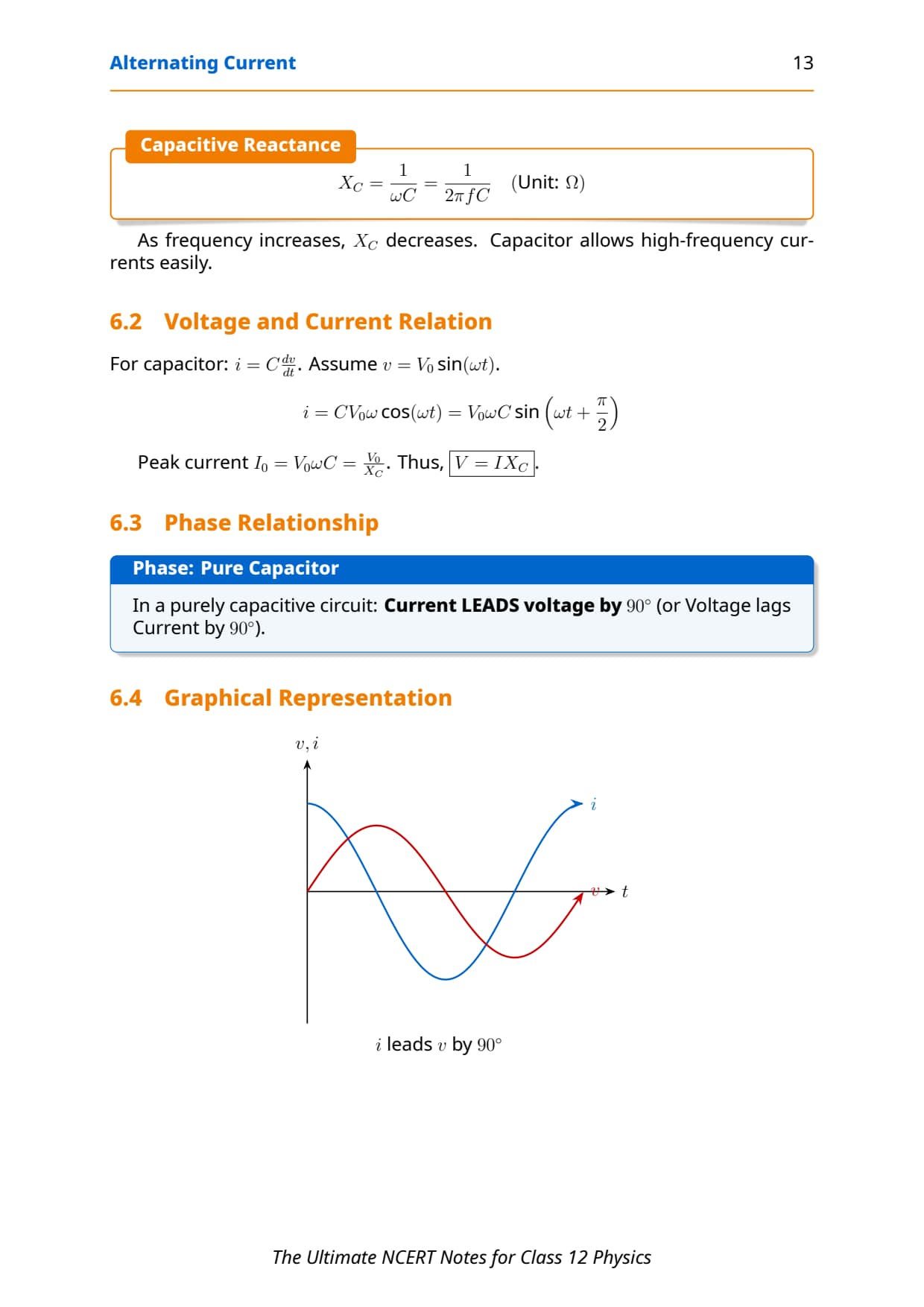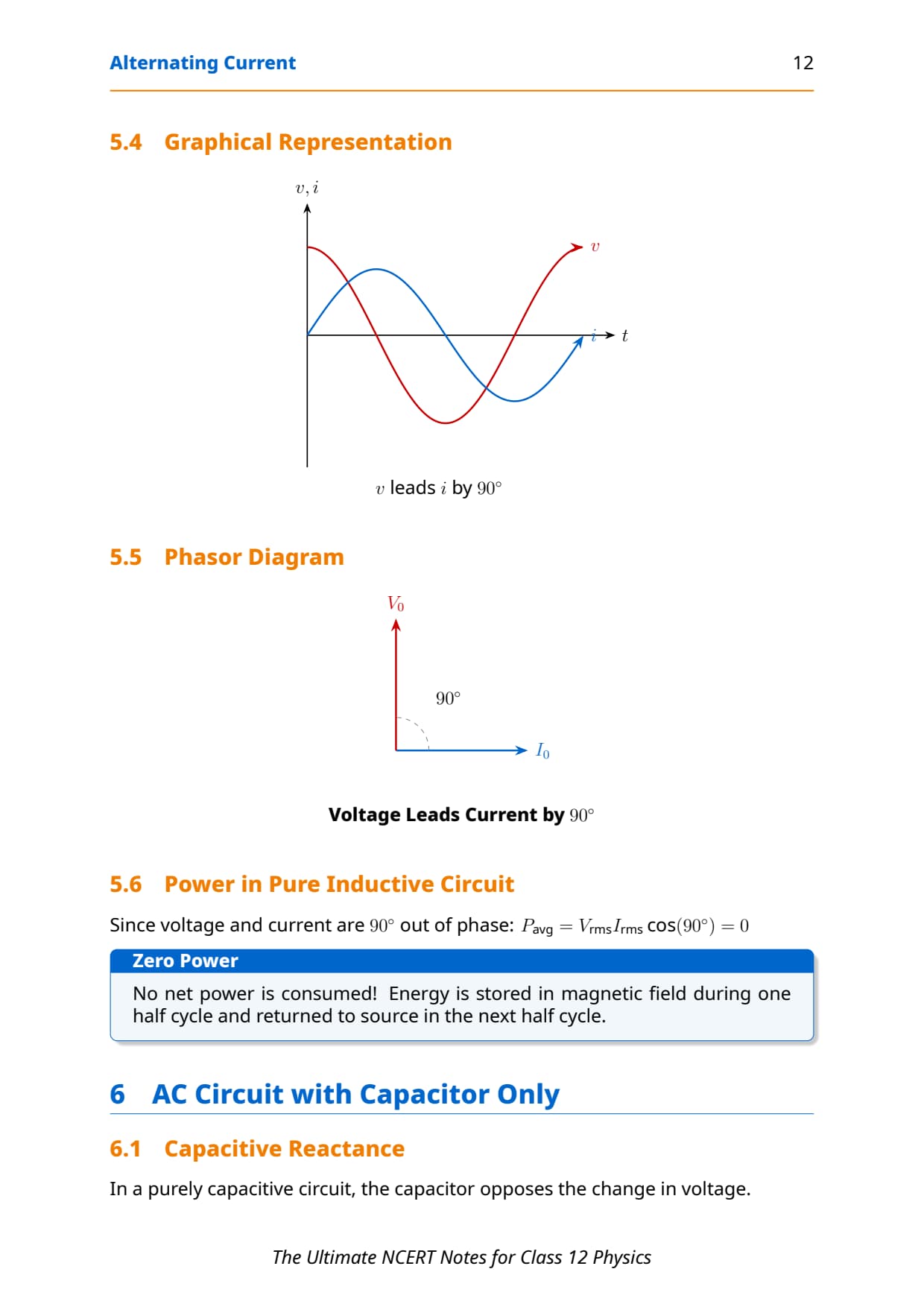 • Current leads voltage by 90°