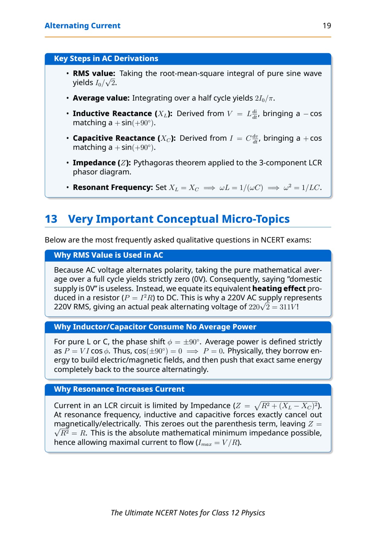 RMS & Average Learn derivation + formula writing Direct substitution in numericals 1–2 questions guaranteed (CBSE)