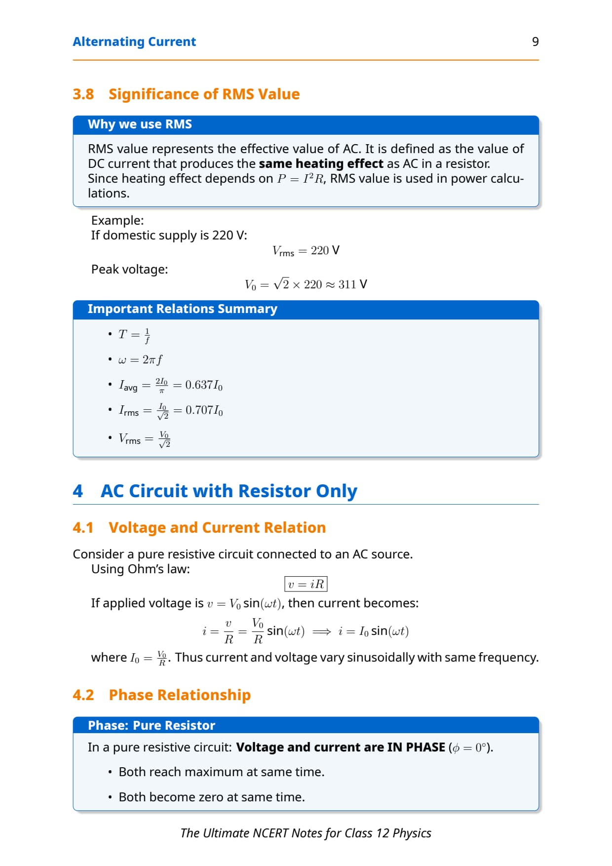 RMS + Power formulas are directly asked Easy marks