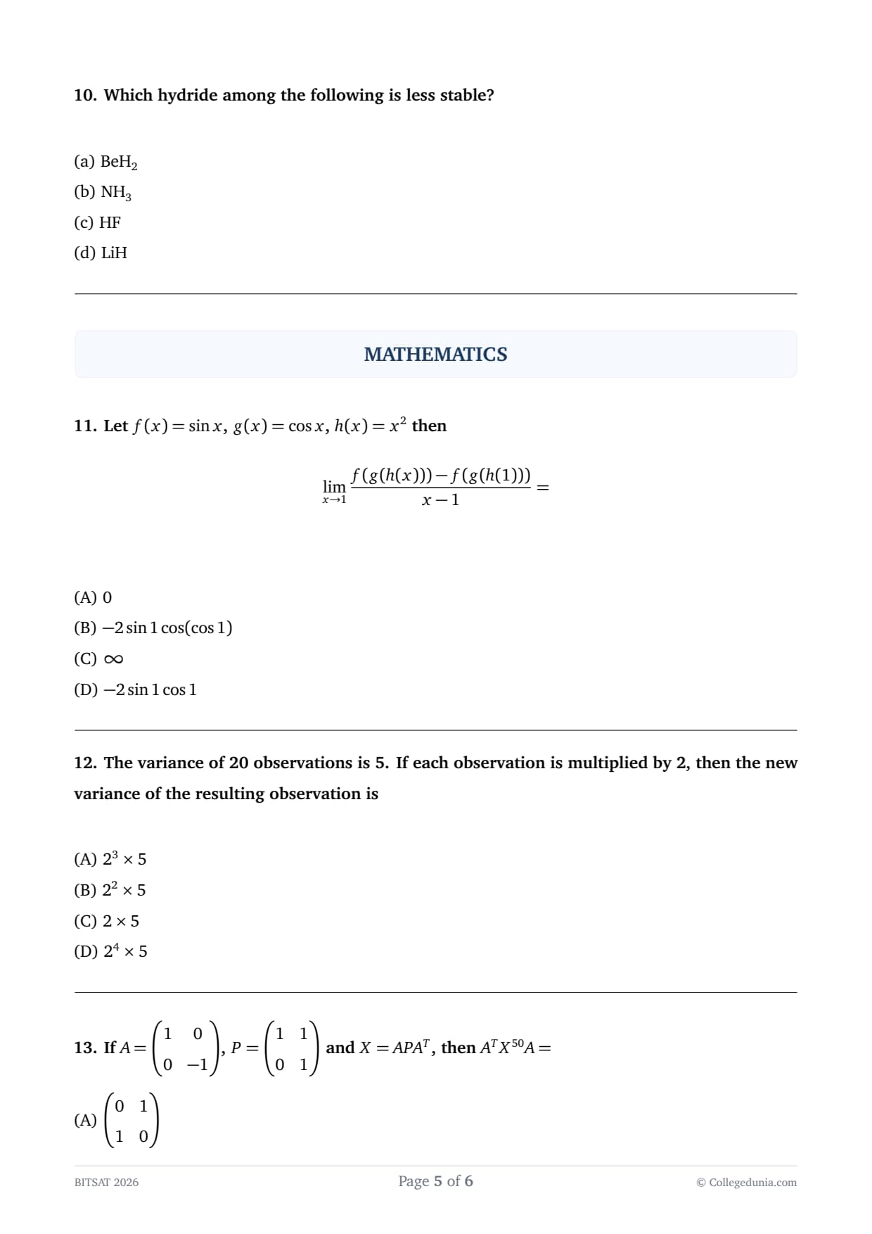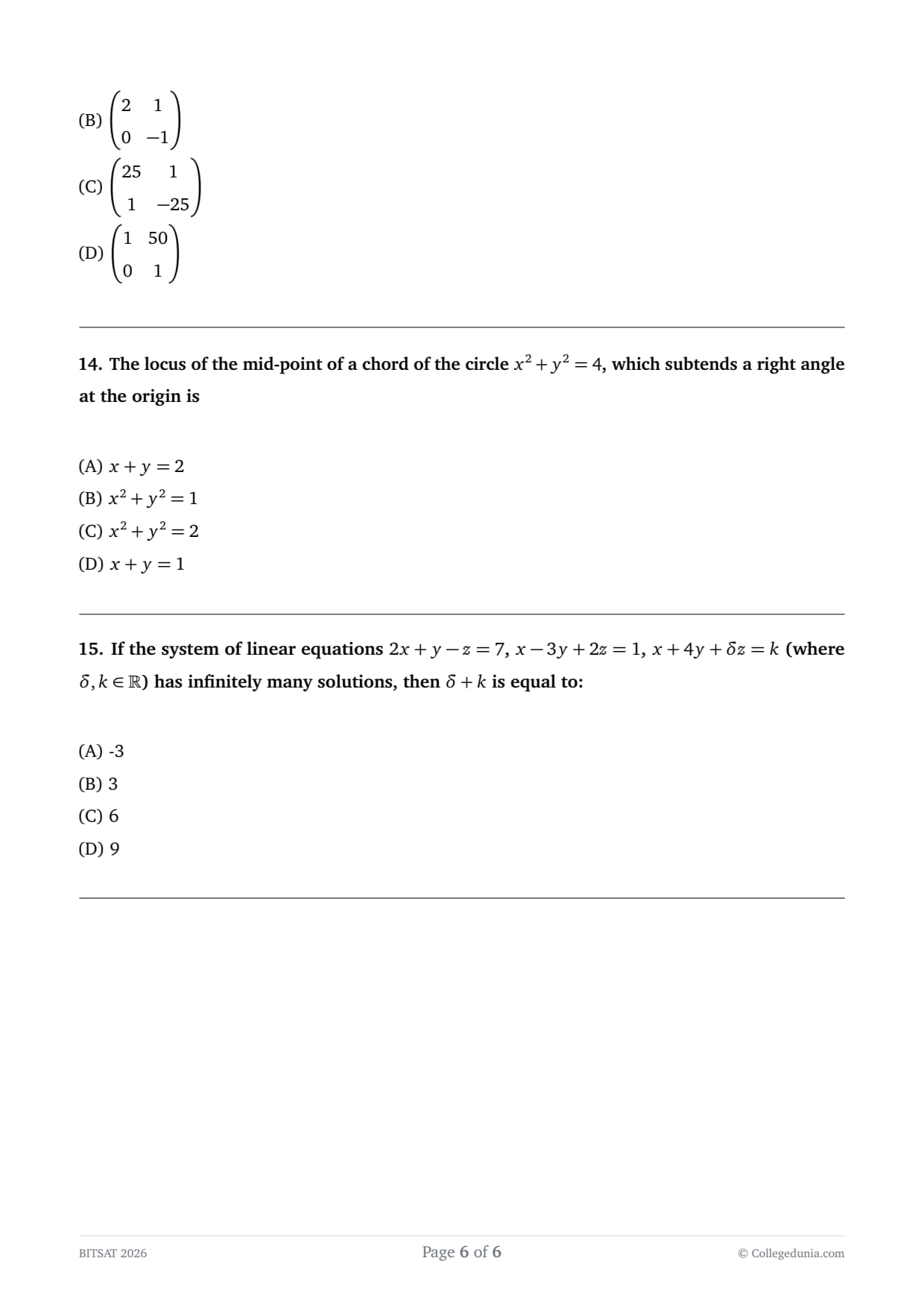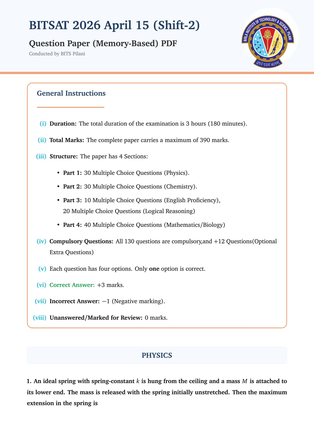 | BITSAT 2026 Question Paper April 15 Shift 2 | Download PDF | Check Solutions |