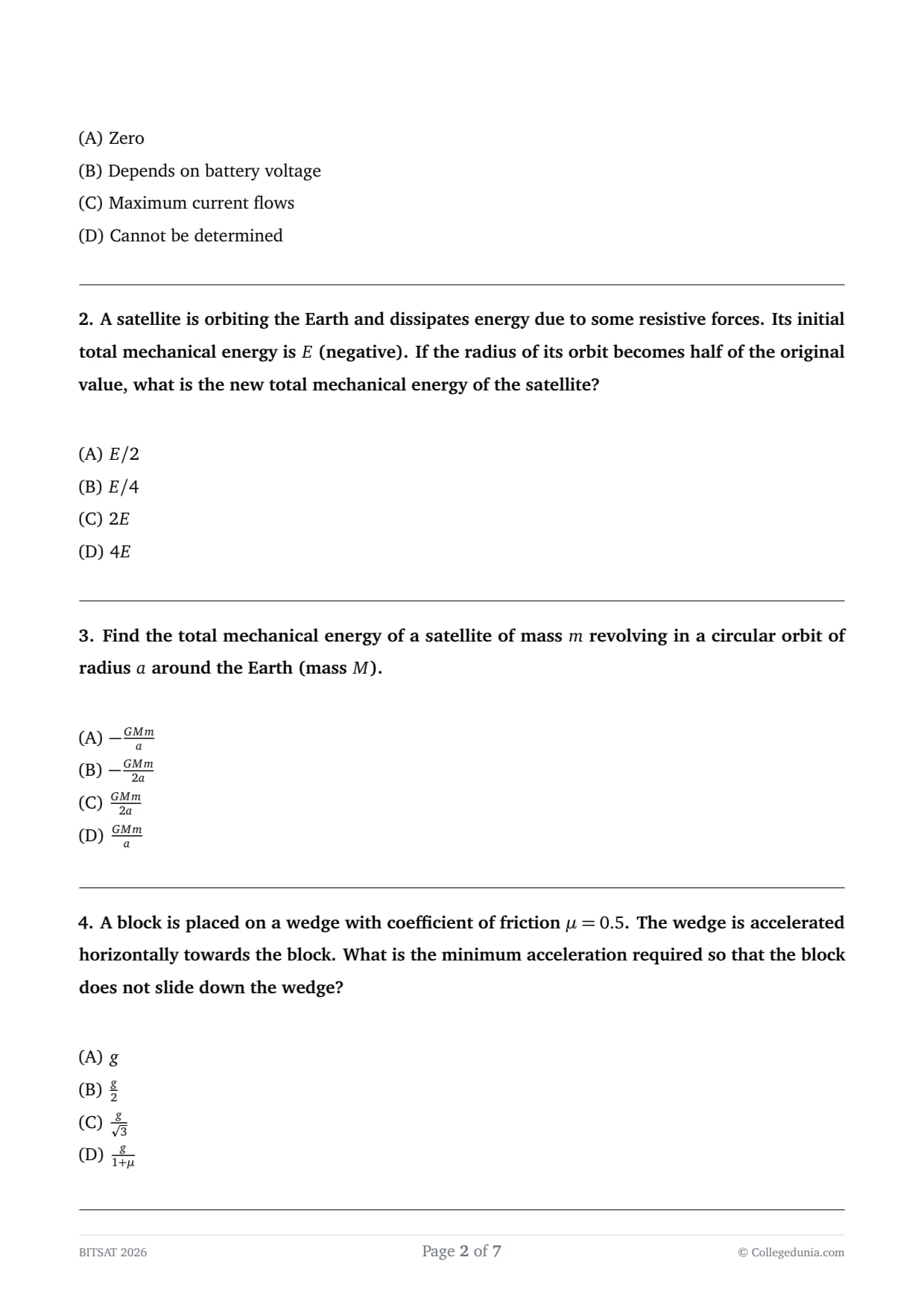 The total mechanical energy is \(-\frac{GMm}{2a}\). Quick Tip: A negative total energy signifies that the satellite is "bound" to the Earth. If the energy were zero or positive, the satellite would have enough energy to escape the Earth's gravitational pull.