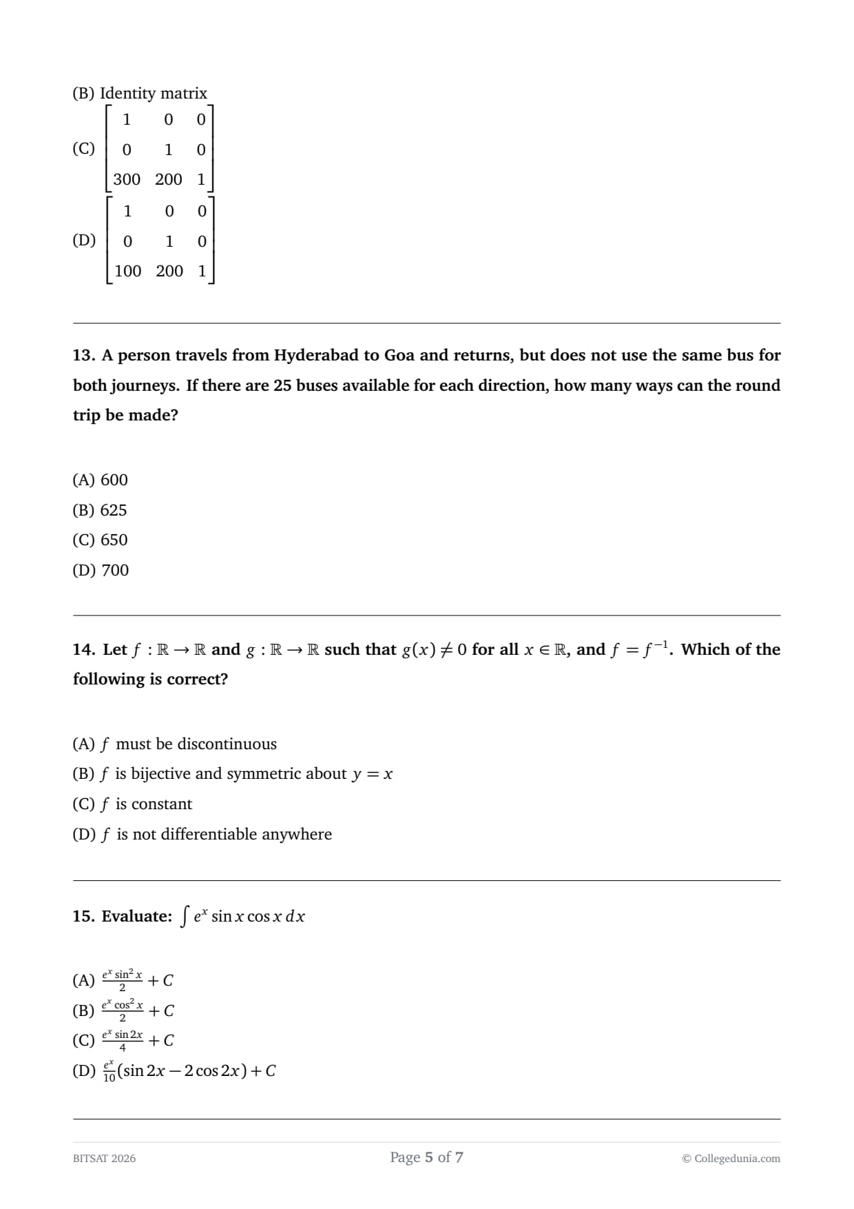 | Calculus (Limits, Integration, Differentiation) | 12–15% |