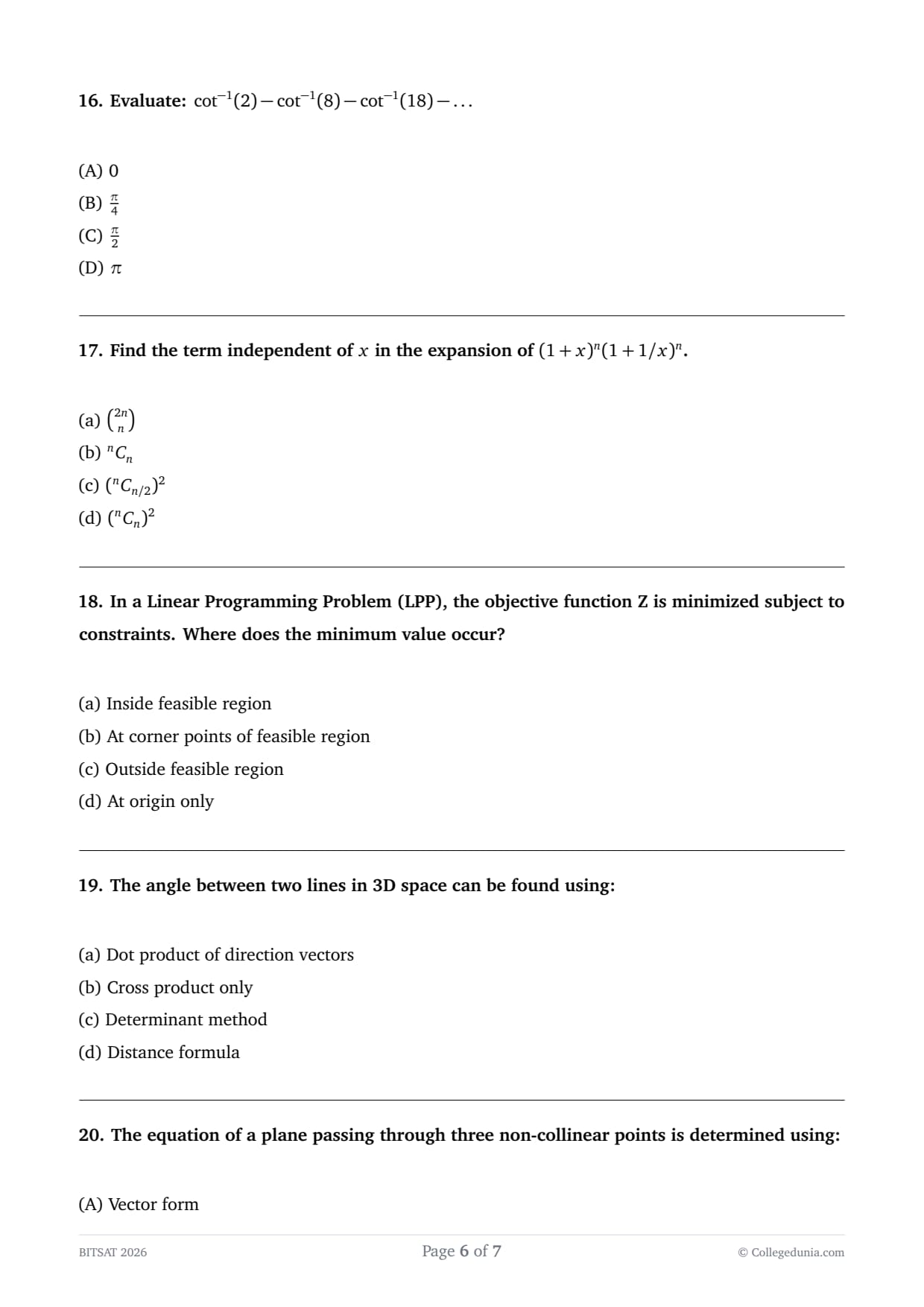 | BITSAT 2026 Question Paper April 16 Shift 1 | Download PDF | Check Solutions |