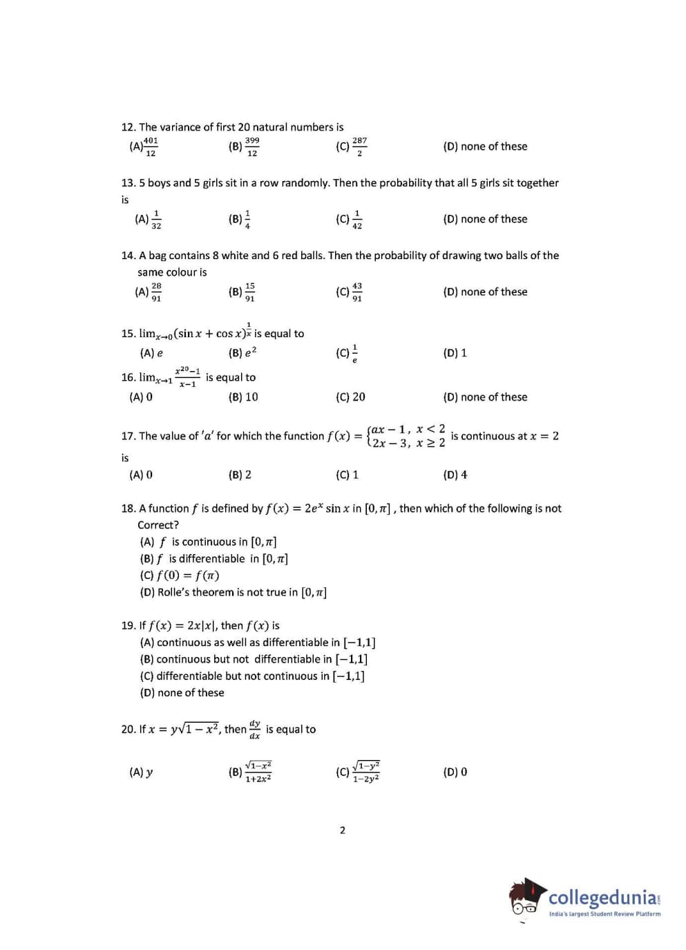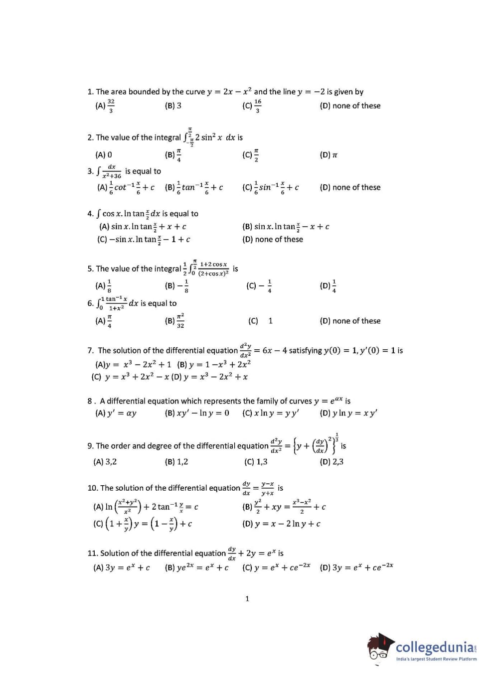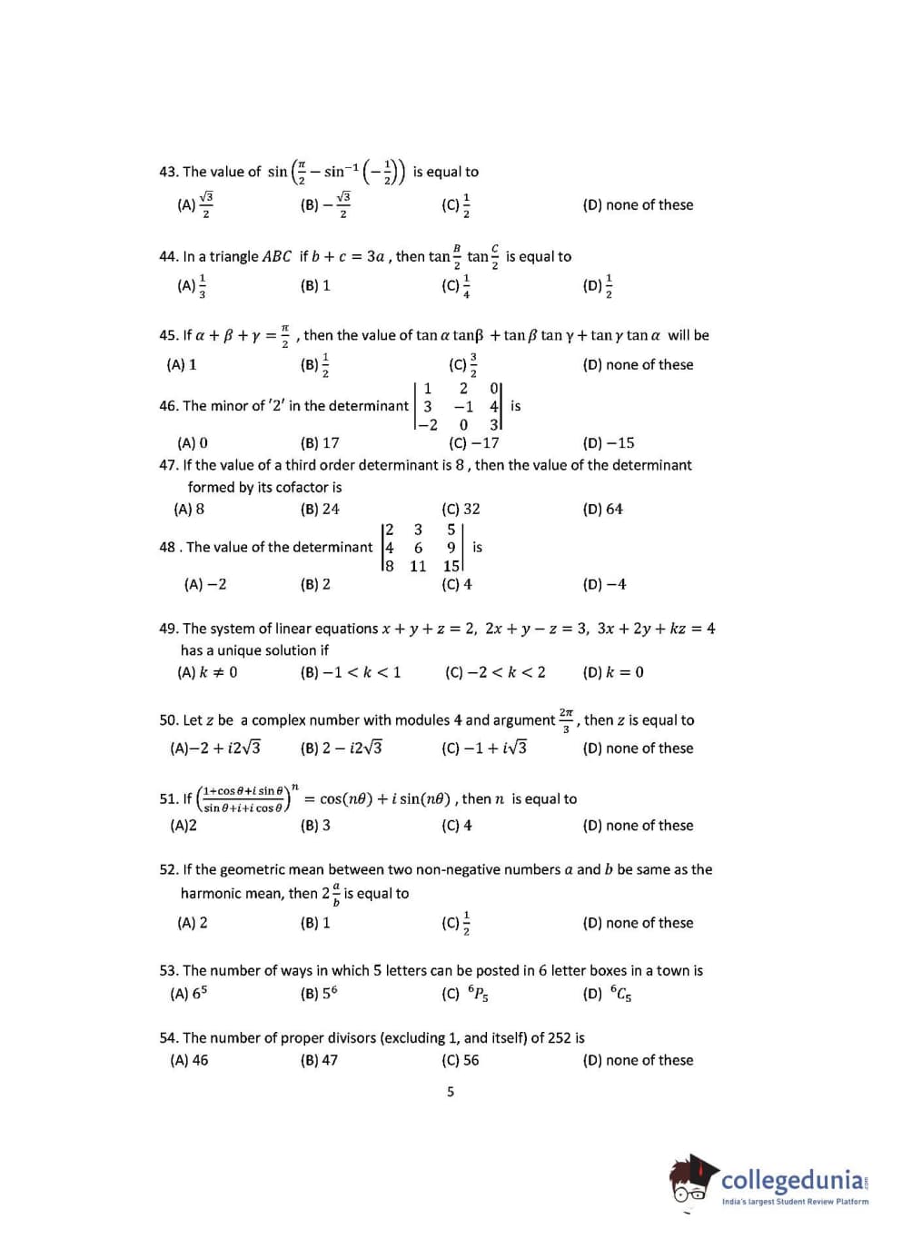 OJEE 2016 Mathematics Question paper with answer key pdf conducted on May 8 is available for download. The exam was successfully organized by Odisha Joint Entrance Examination Committee. The question paper comprised a total of 60 questions.