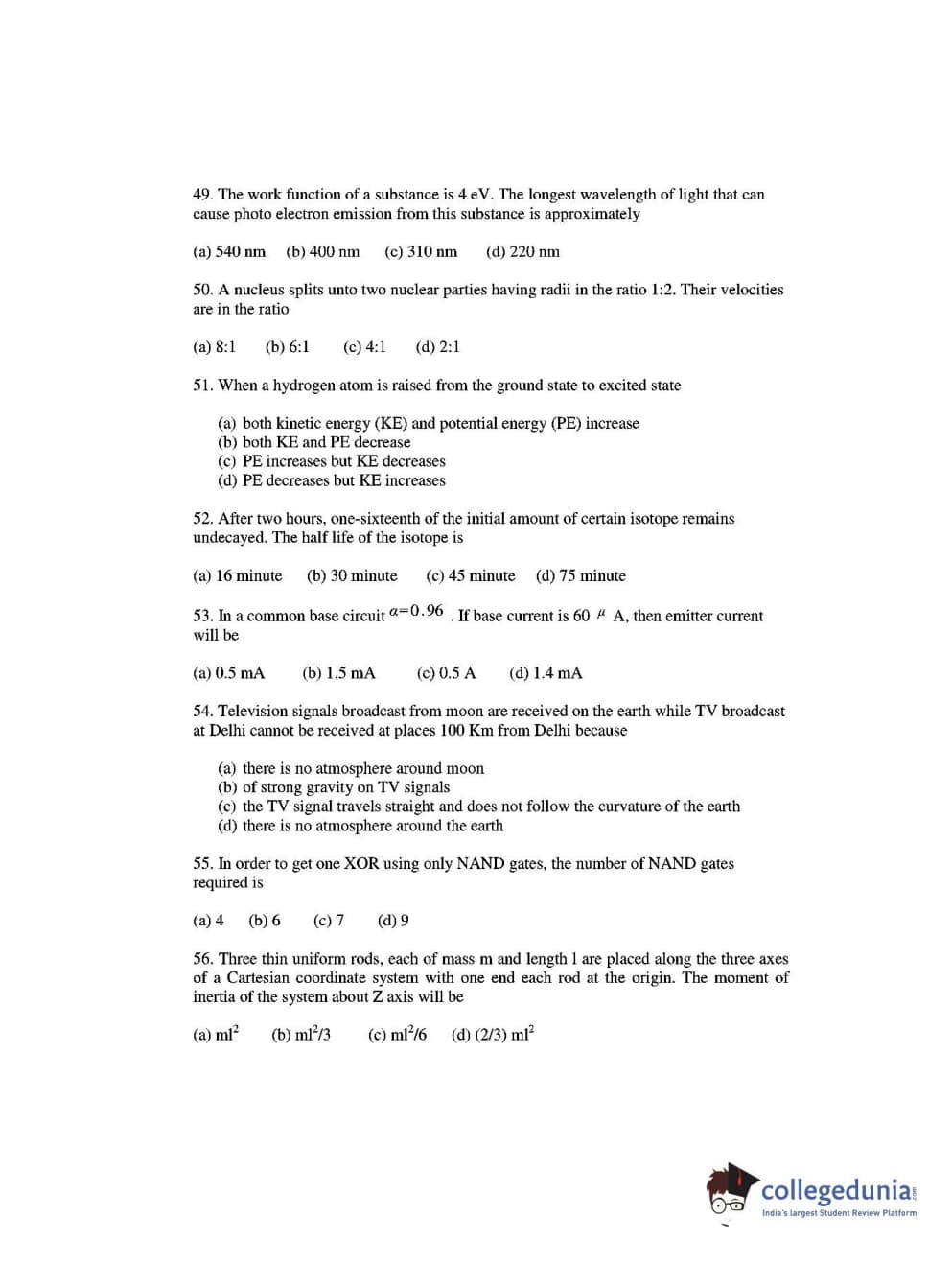 OJEE 2016 Physics and Chemistry Question paper with answer key pdf conducted on May 8 is available for download. The exam was successfully organized by Odisha Joint Entrance Examination Committee. The question paper comprised a total of 120 questions.