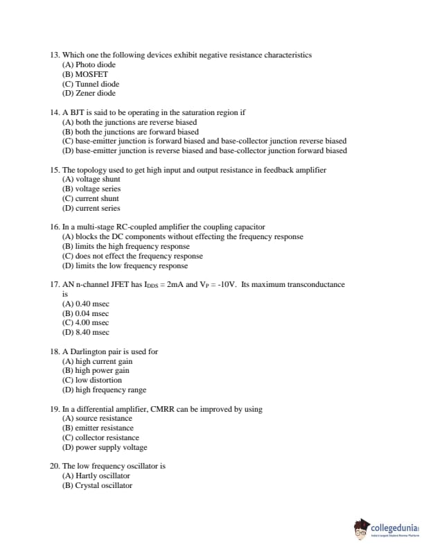 OJEE 2017 Electronics Question paper with answer key pdf conducted on May 14 is available for download. The exam was successfully organized by Odisha Joint Entrance Examination Committee. The question paper comprised a total of 60 questions.