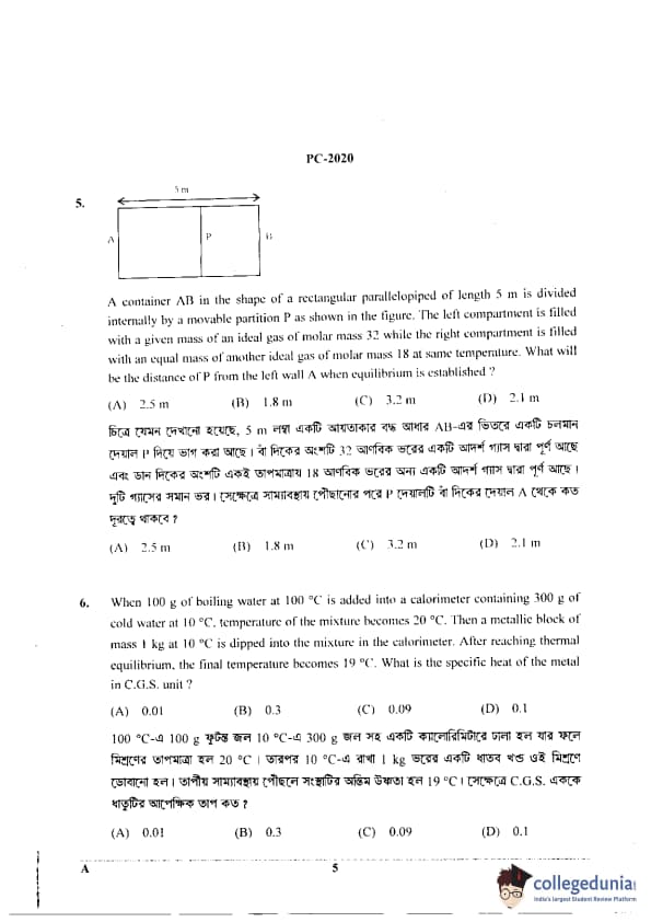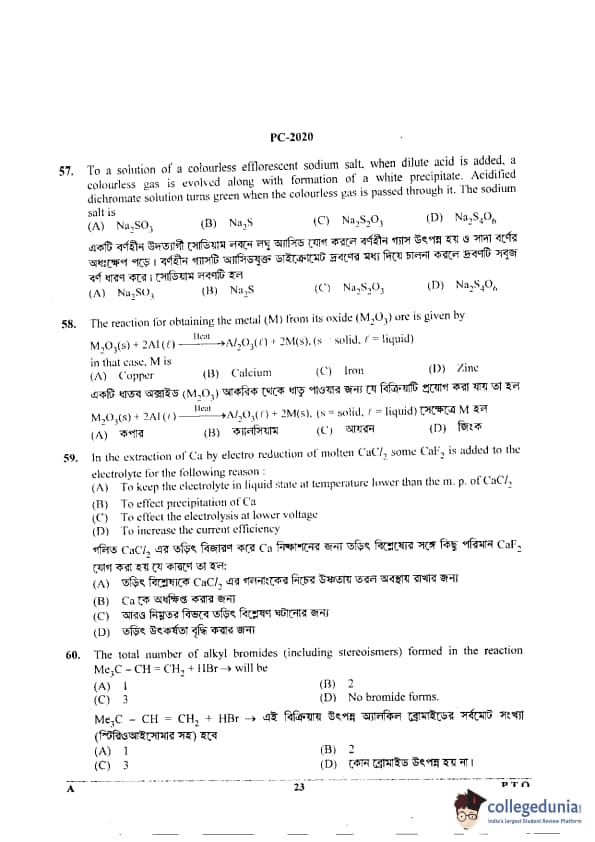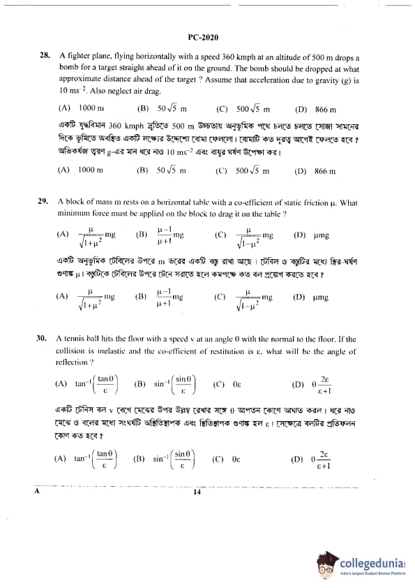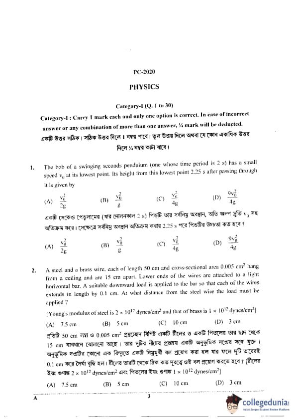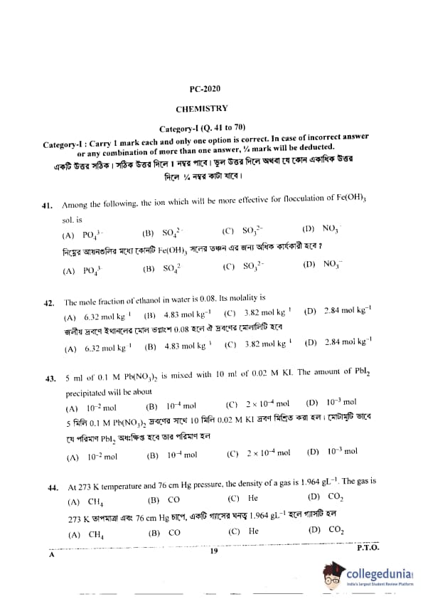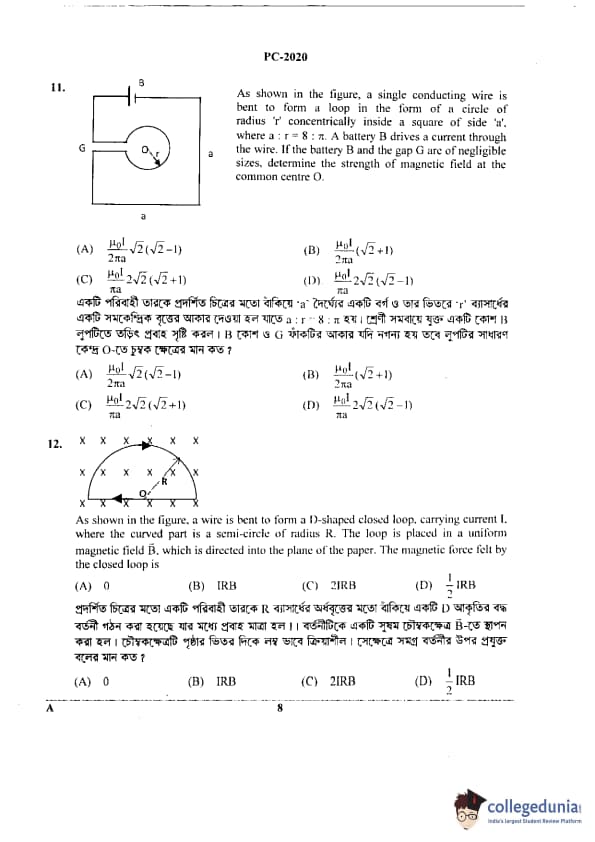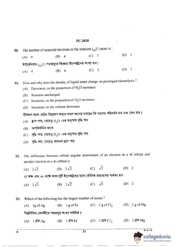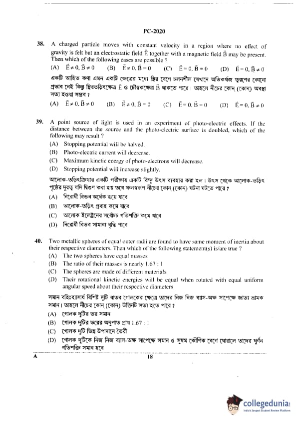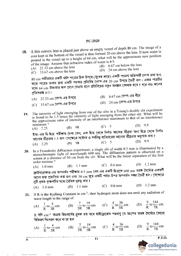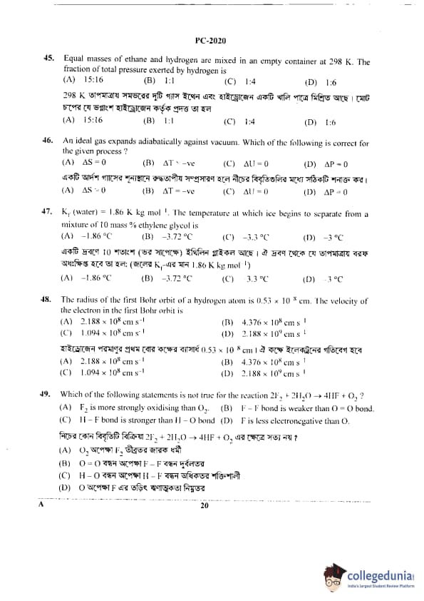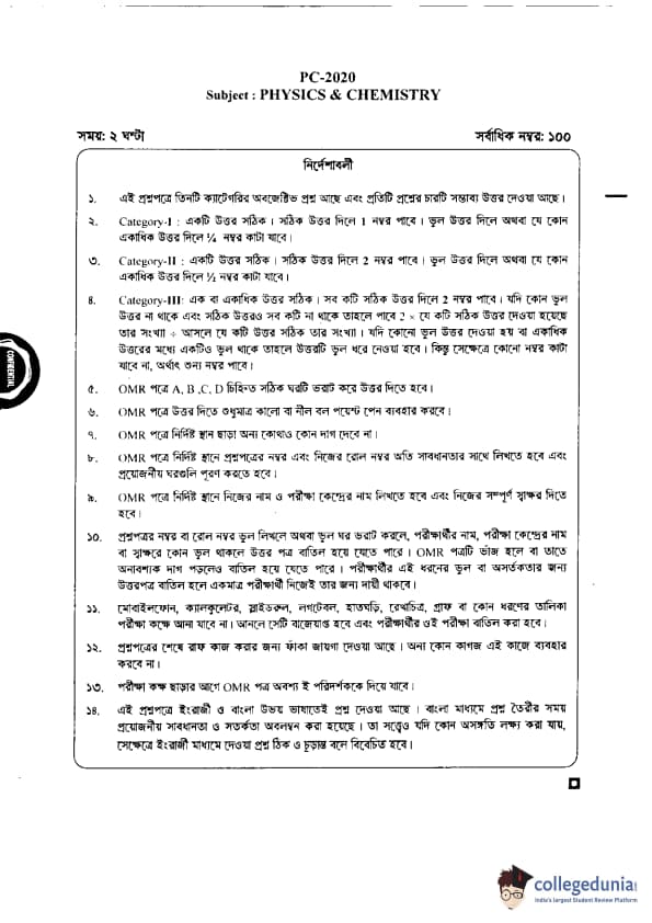 WBJEE 2020 Physics & Chemistry Question Paper with Answer Key PDF for Afternoon Session