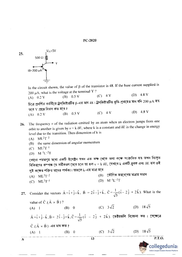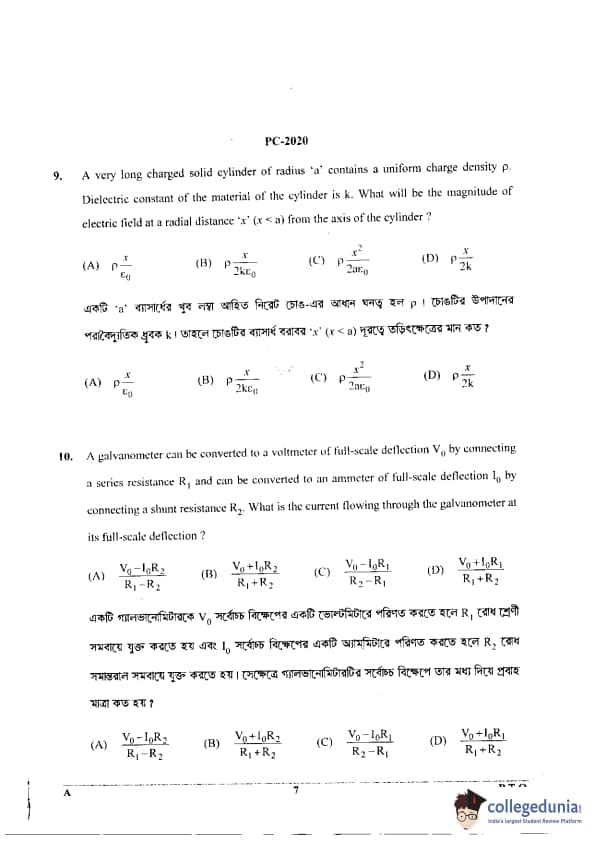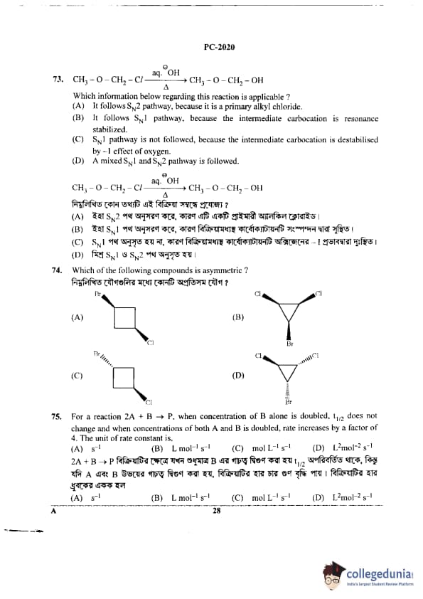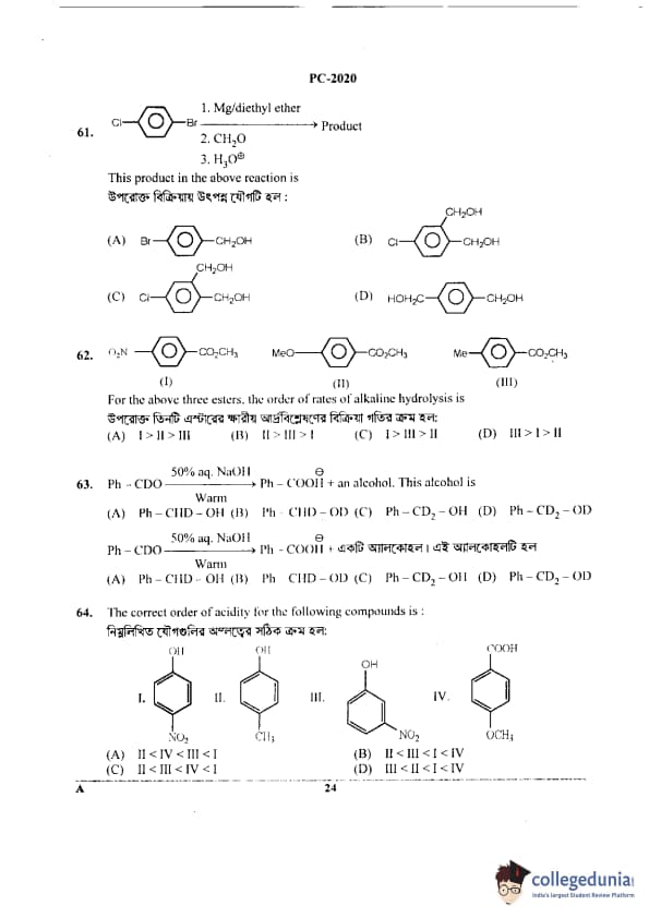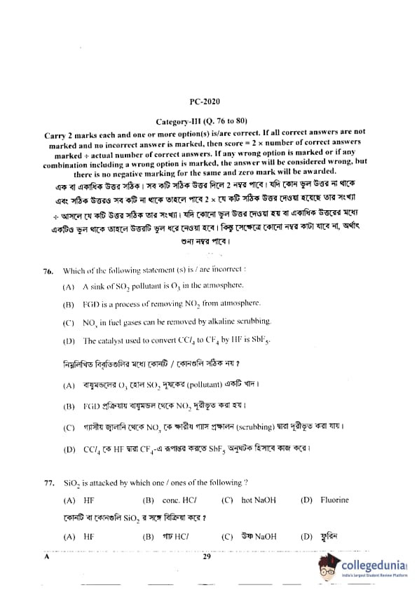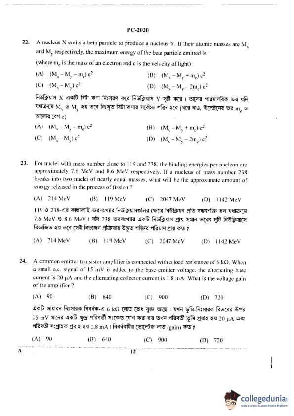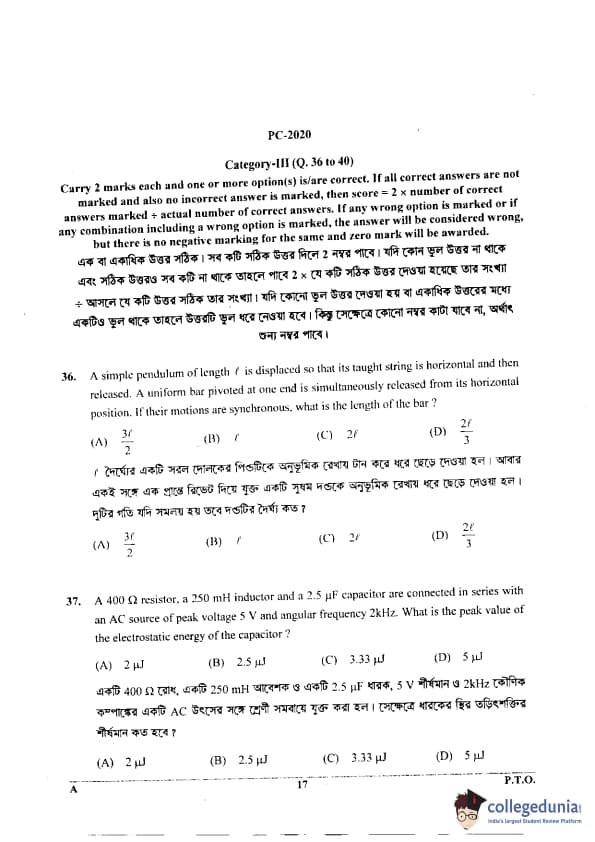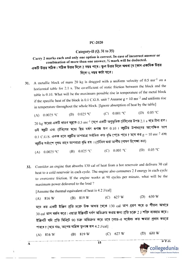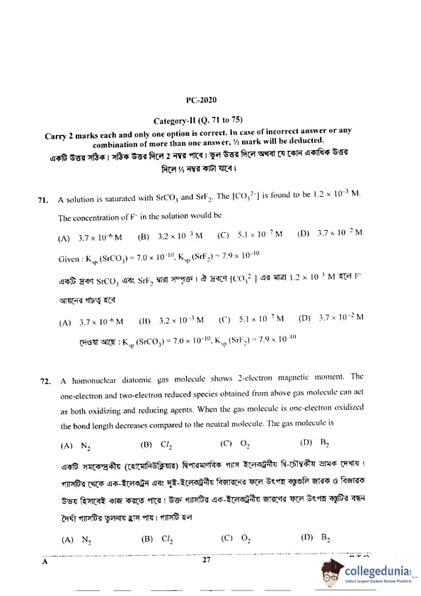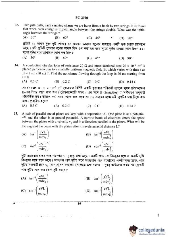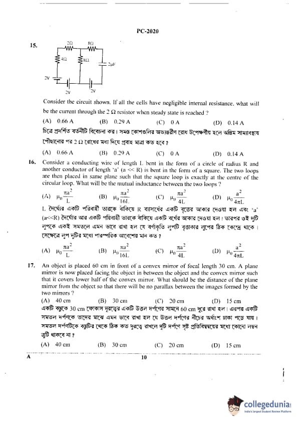 WBJEE 2020 Physics & Chemistry Question Paper with Answer Key PDF for Afternoon Session