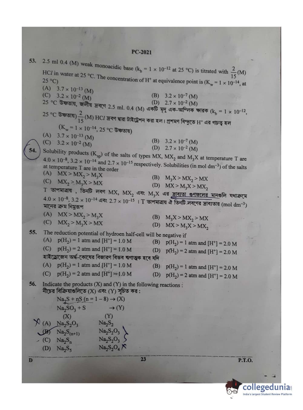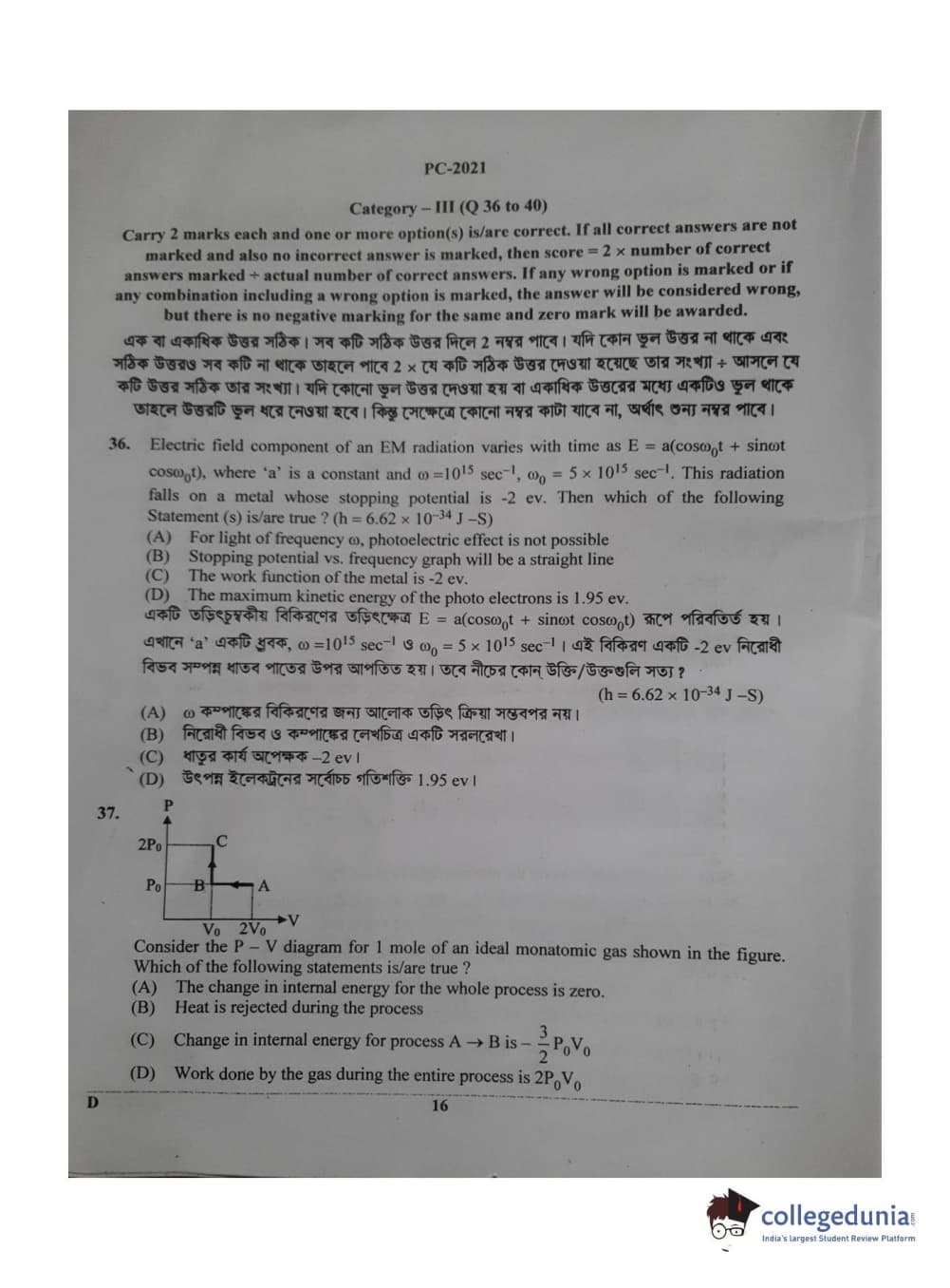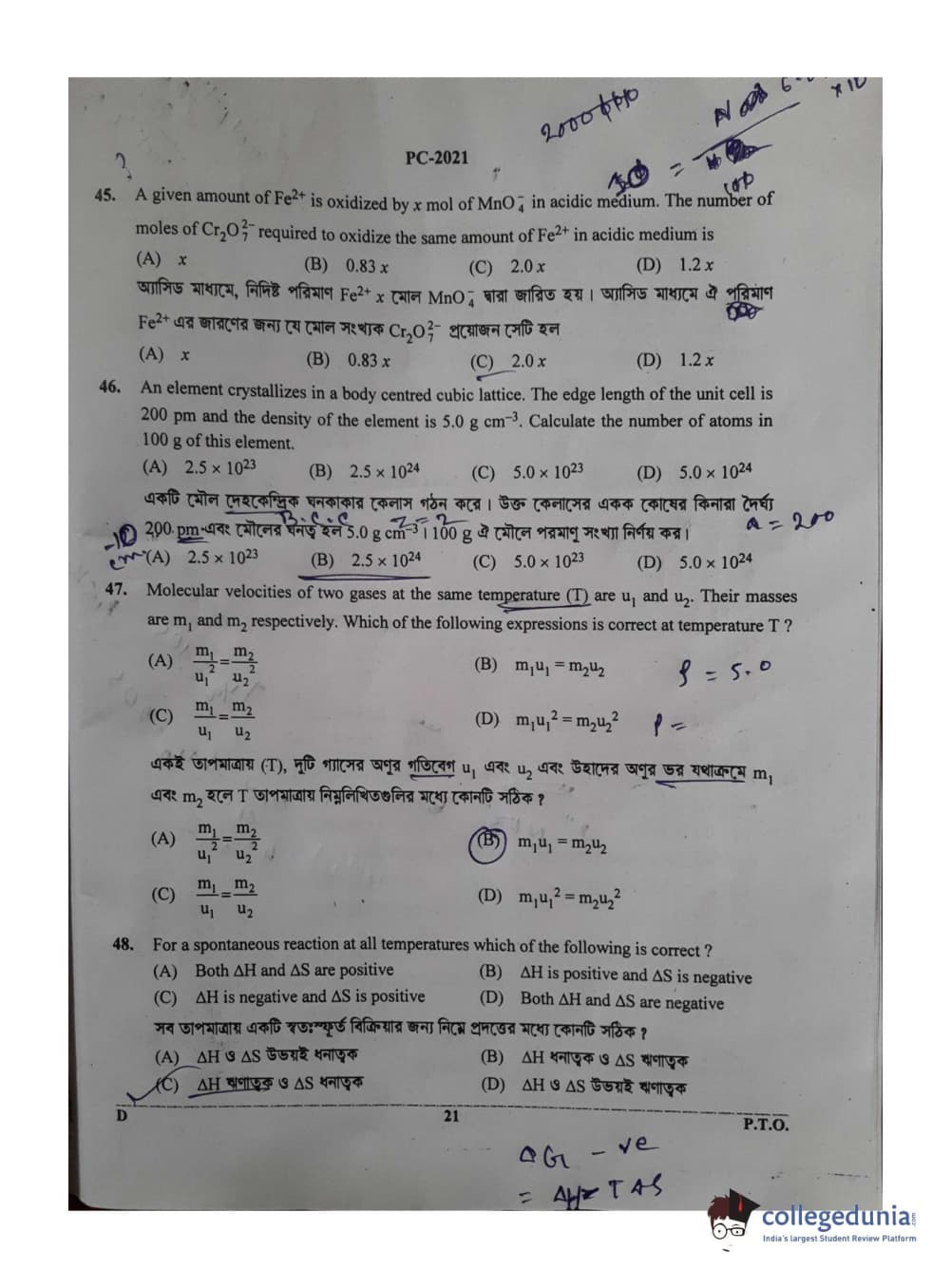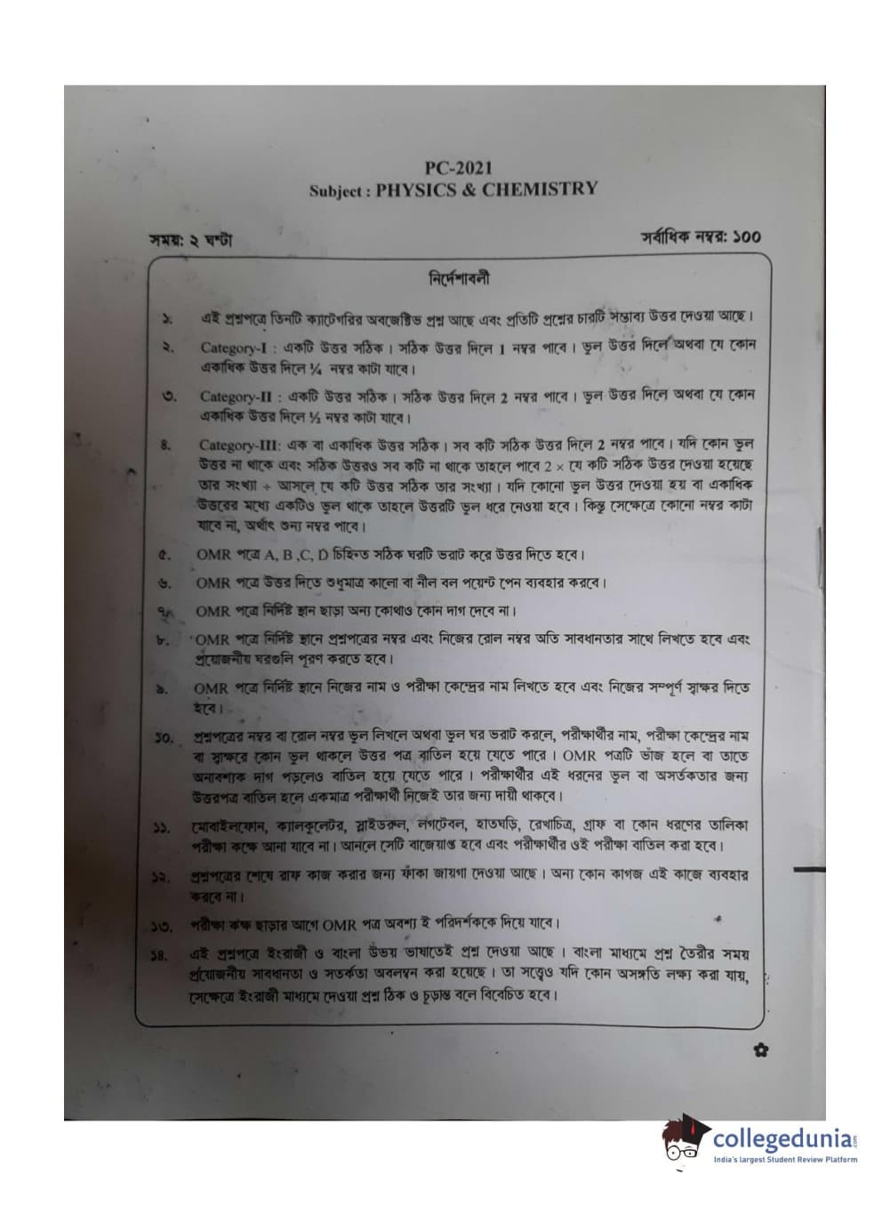 WBJEE 2021 Physics & Chemistry Question Paper with Answer Key PDF for Afternoon Session