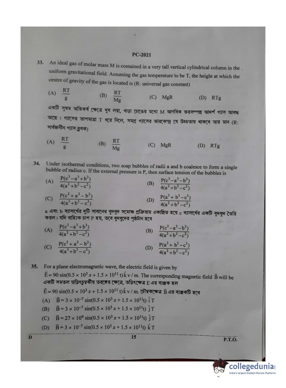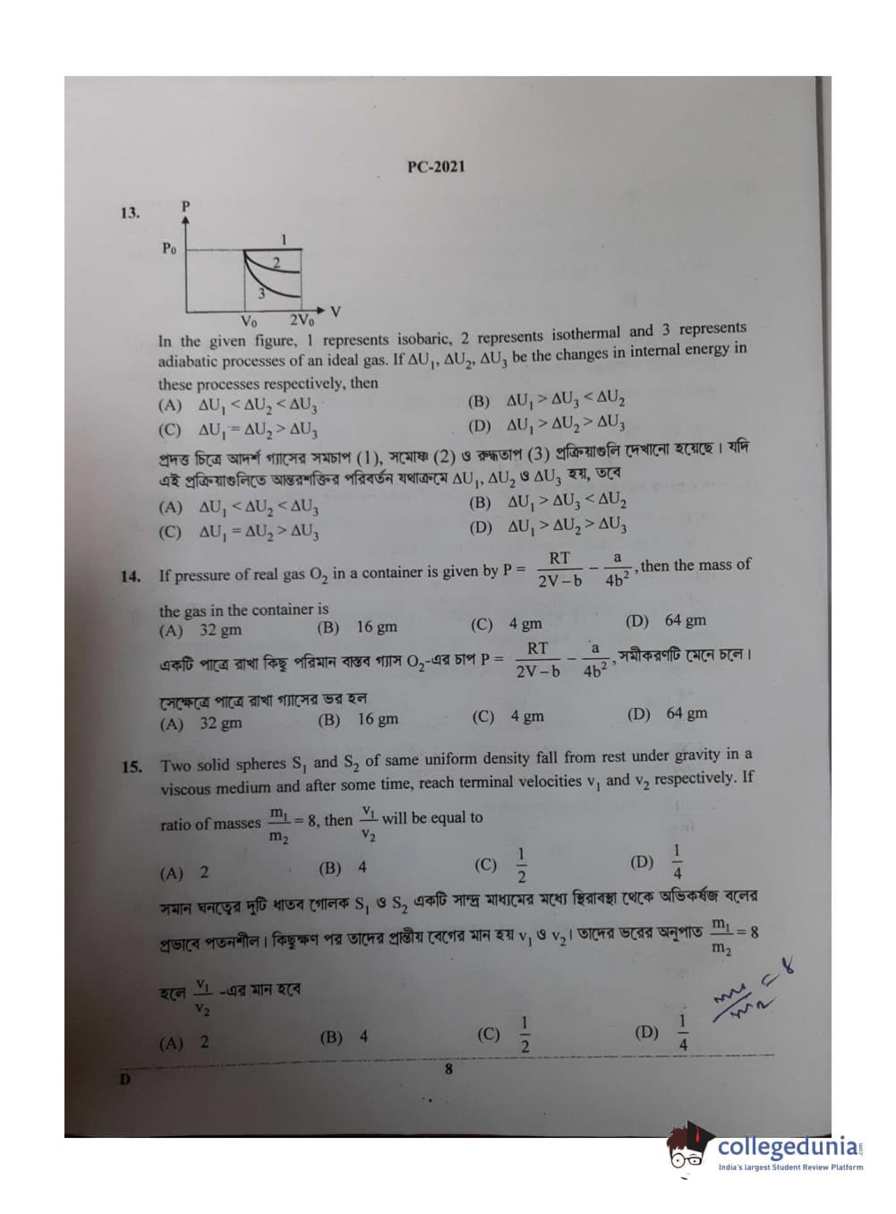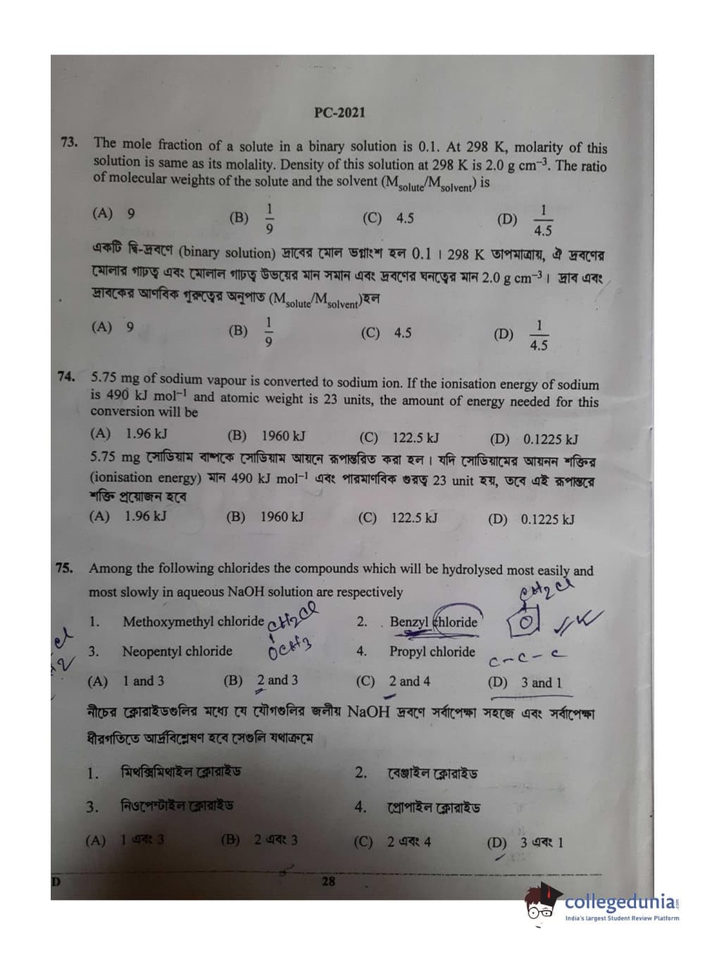 WBJEE 2021 Physics & Chemistry Question Paper with Answer Key PDF for Afternoon Session