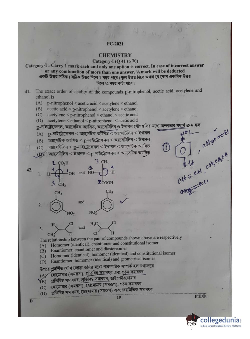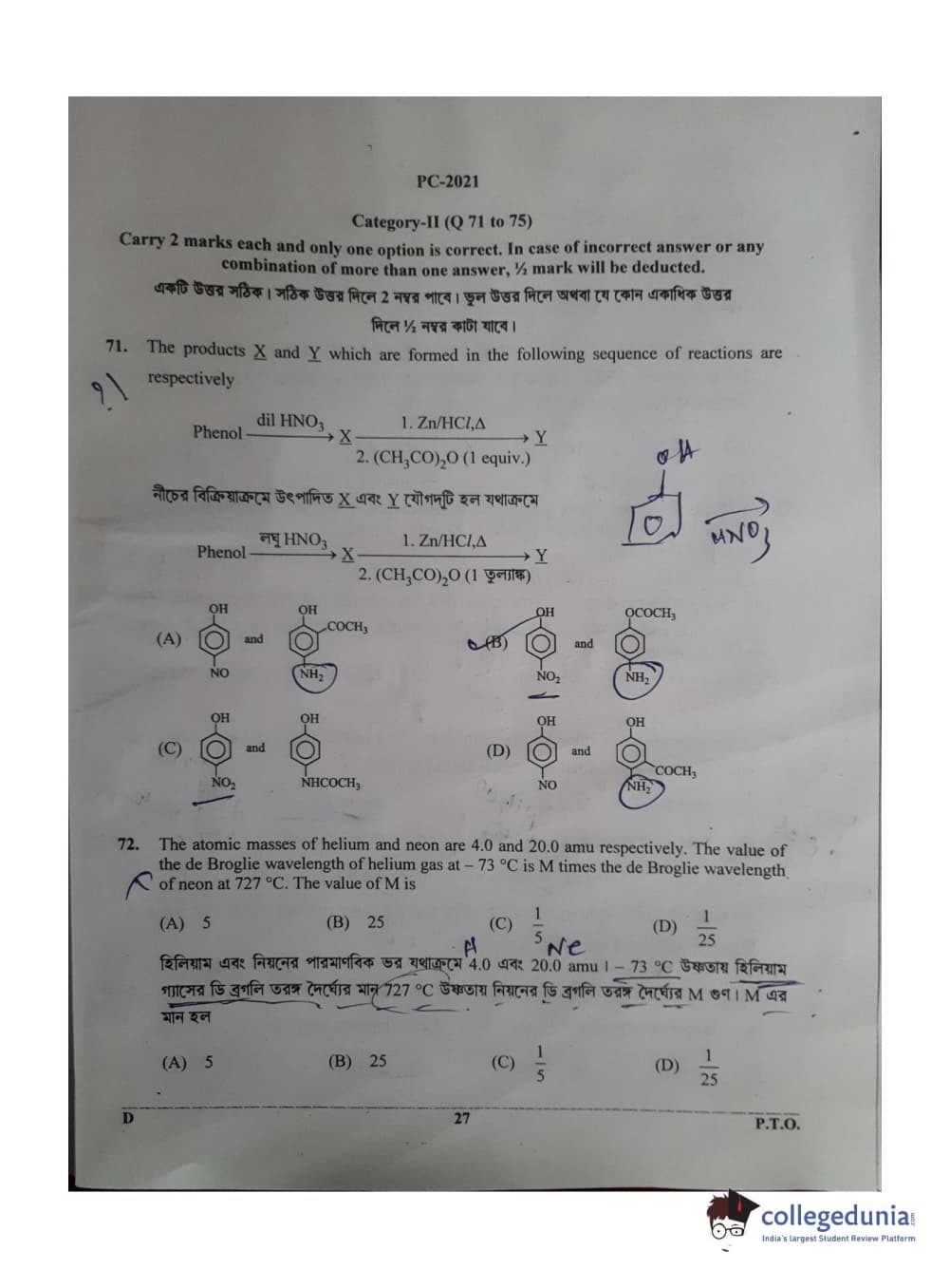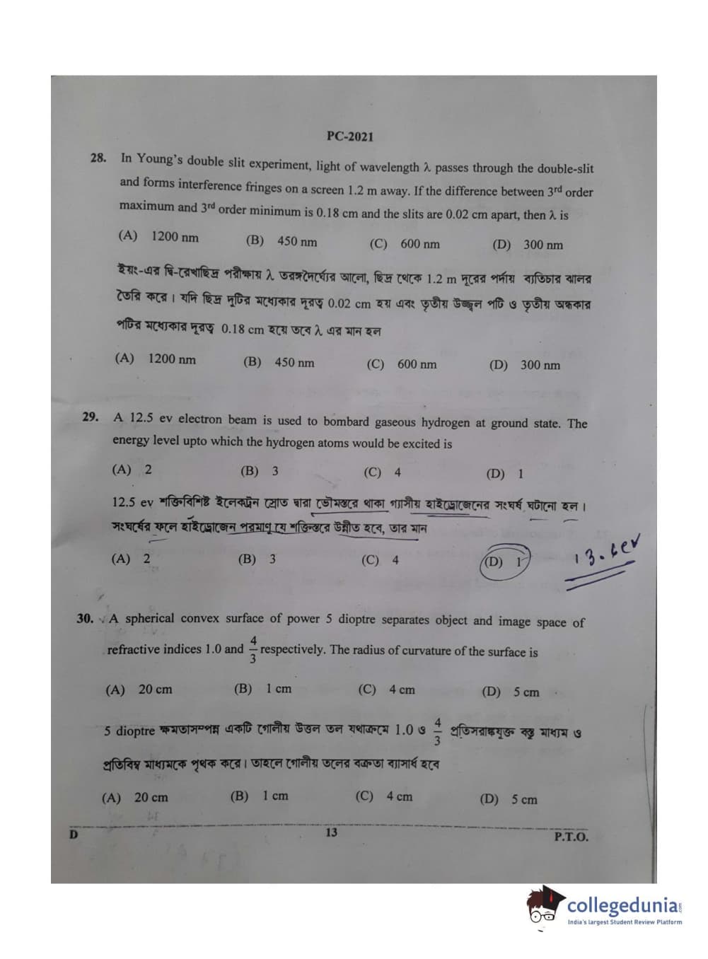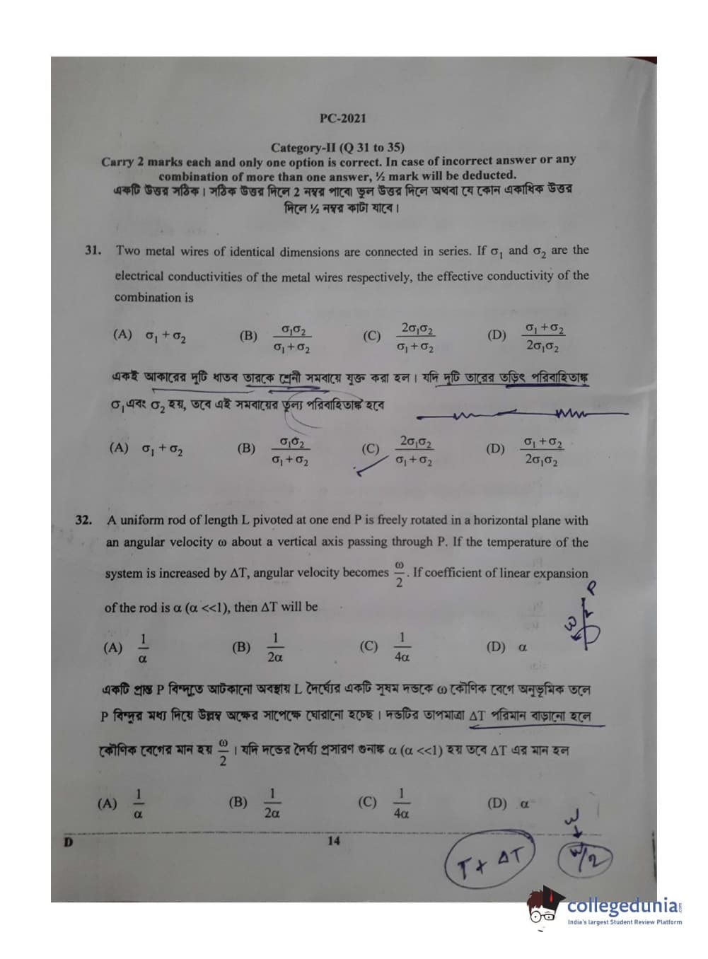 WBJEE 2021 Physics & Chemistry Question Paper with Answer Key PDF for Afternoon Session