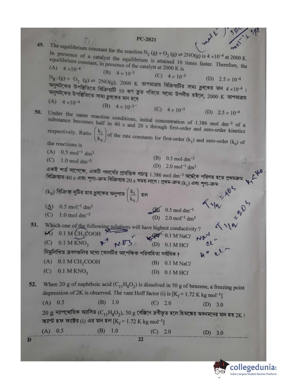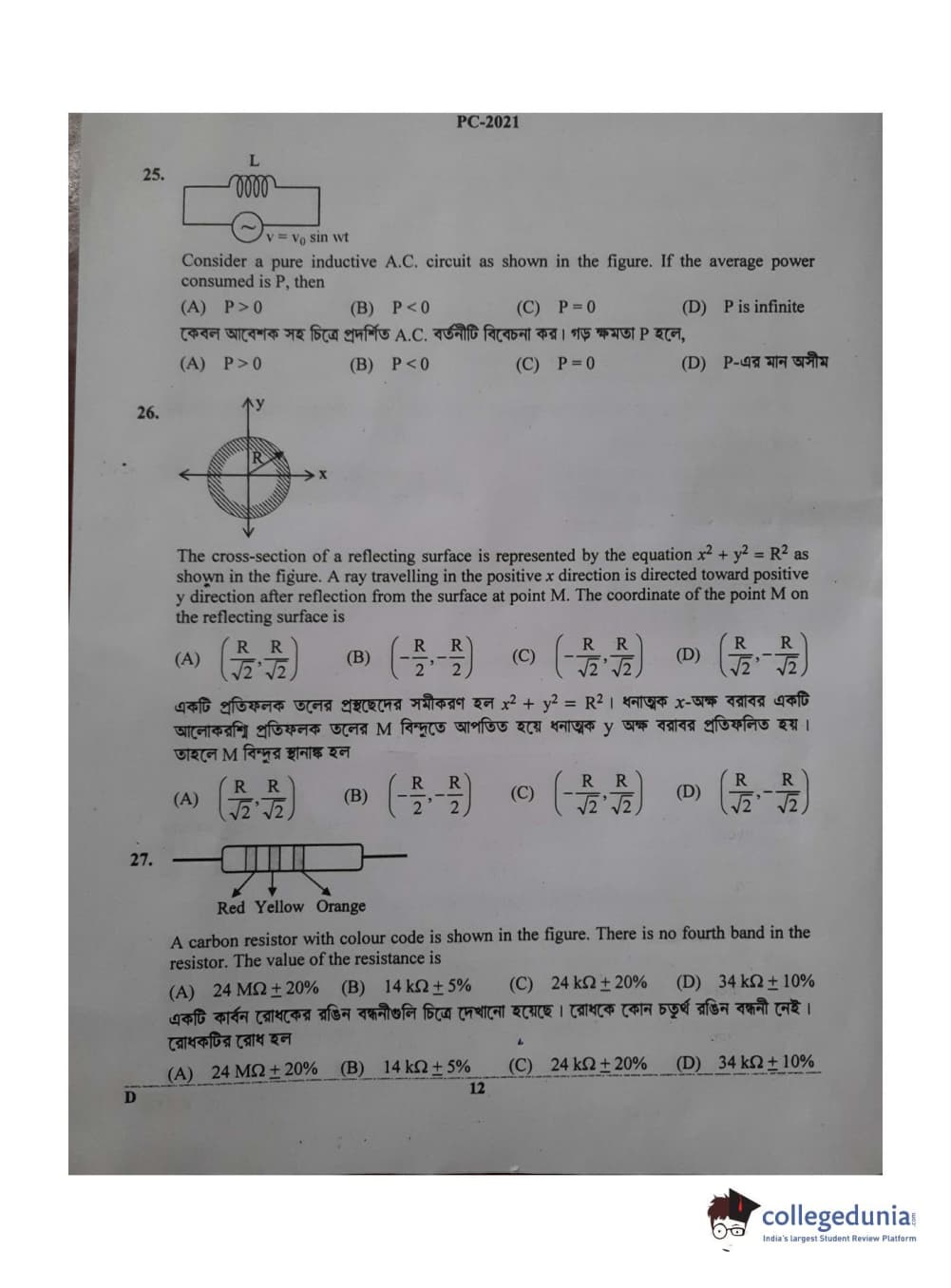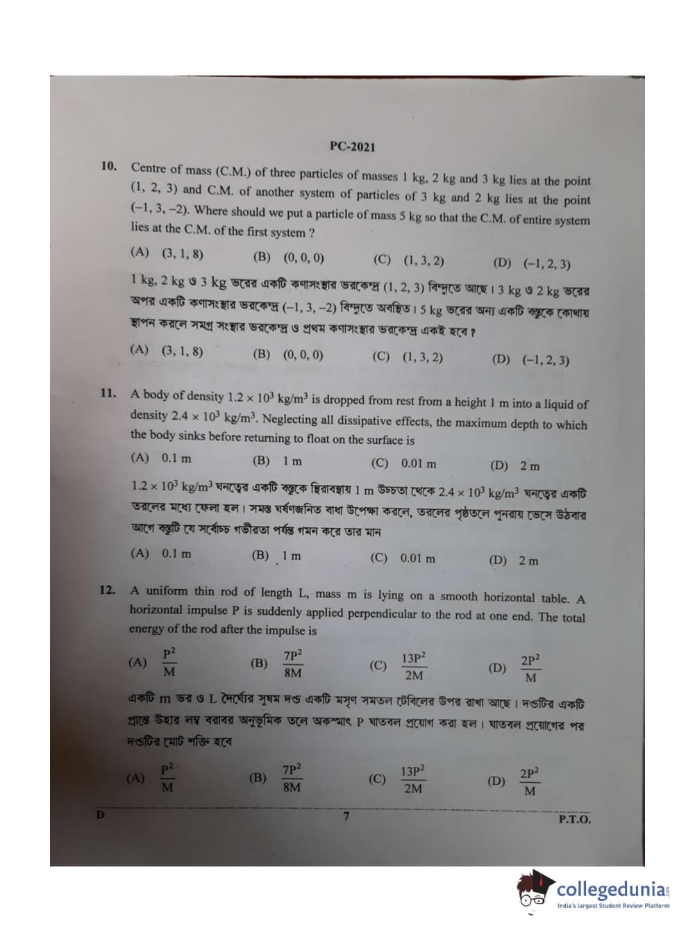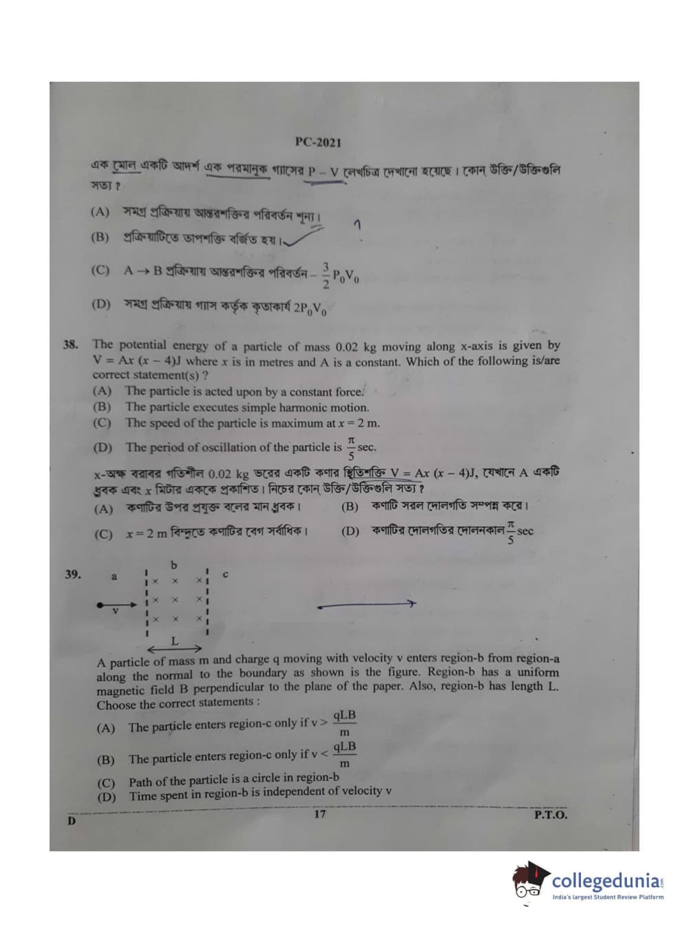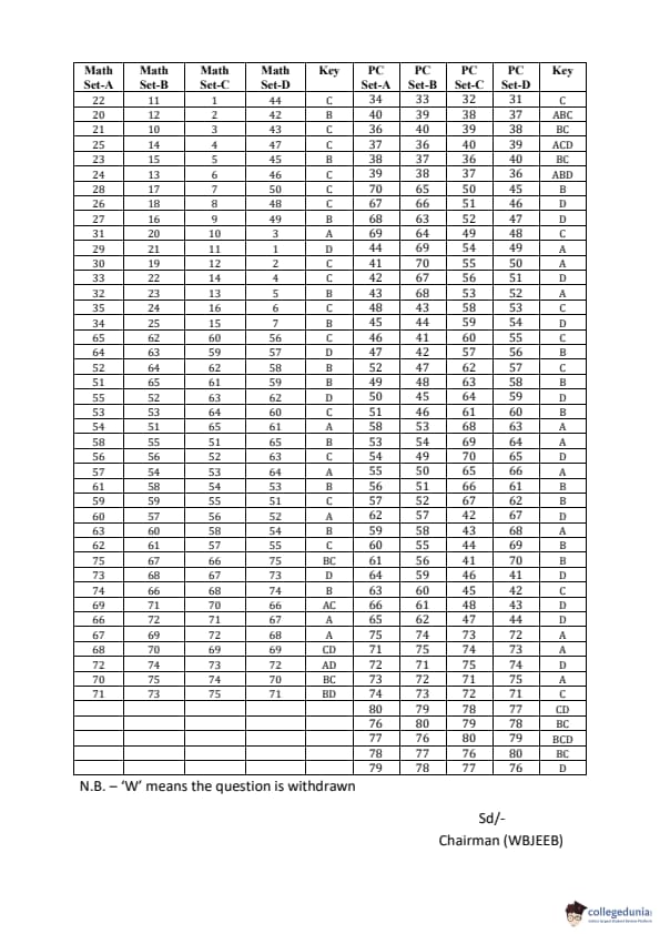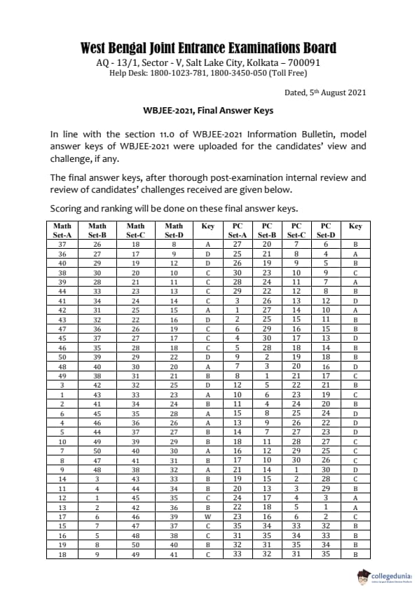 Collegedunia has provided WBJEE Previous Year Question paper pdf with answer key in the links given below: