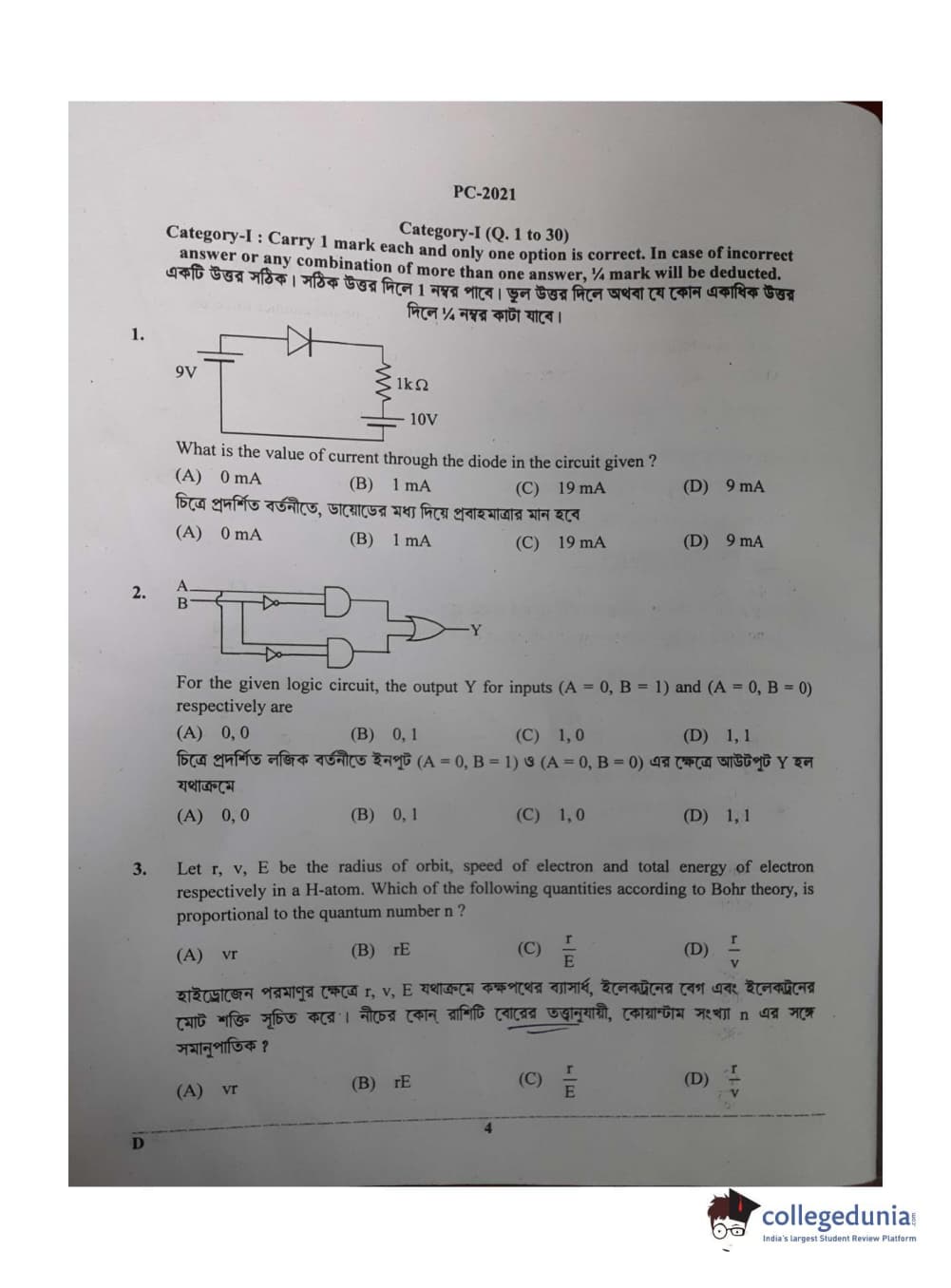 WBJEE 2021 Physics & Chemistry Question paper with answer key pdf conducted on Jul-17 in Afternoon Session for Set D is available for download. The exam was successfully organized by West Bengal Joint Entrance Examination Board (WBJEEB). In terms of difficulty level, WBJEE was of Moderate level. The question paper comprised a total of 80 questions divided among Two sections.