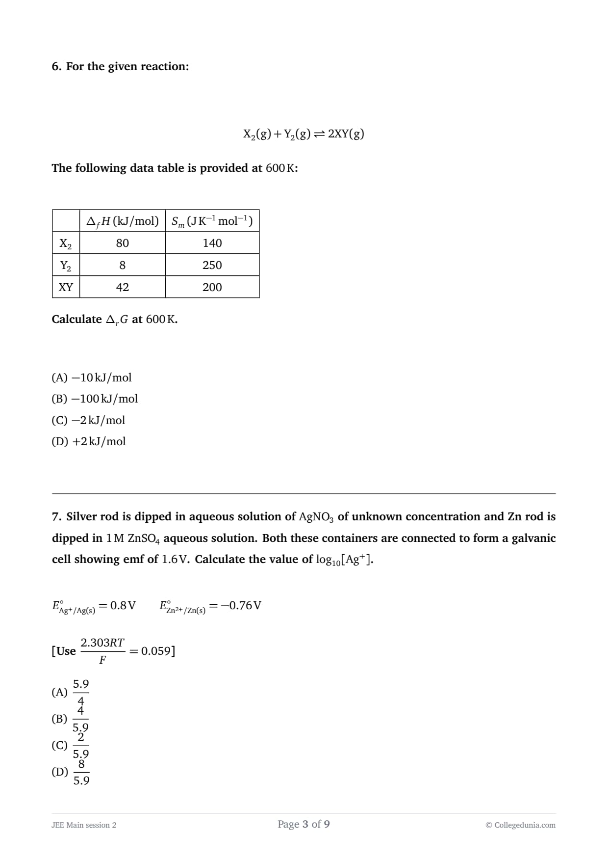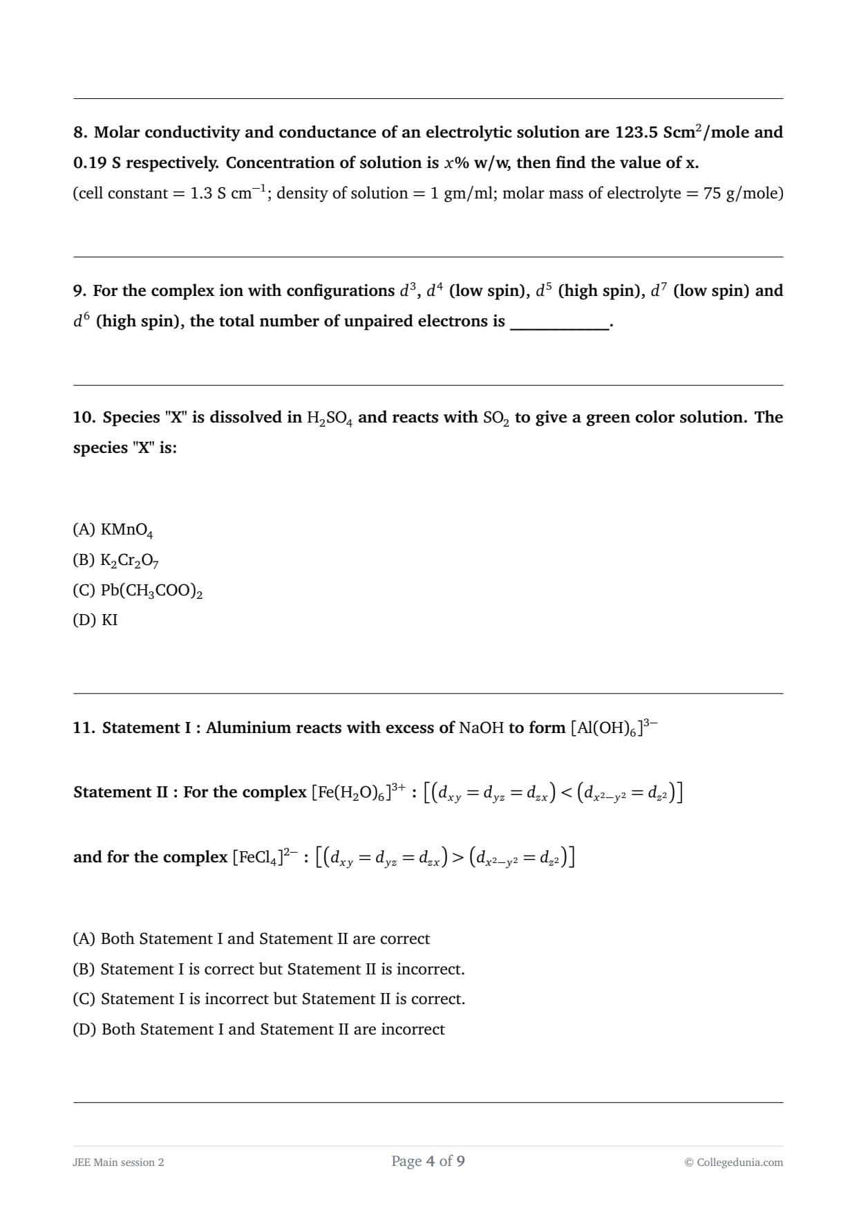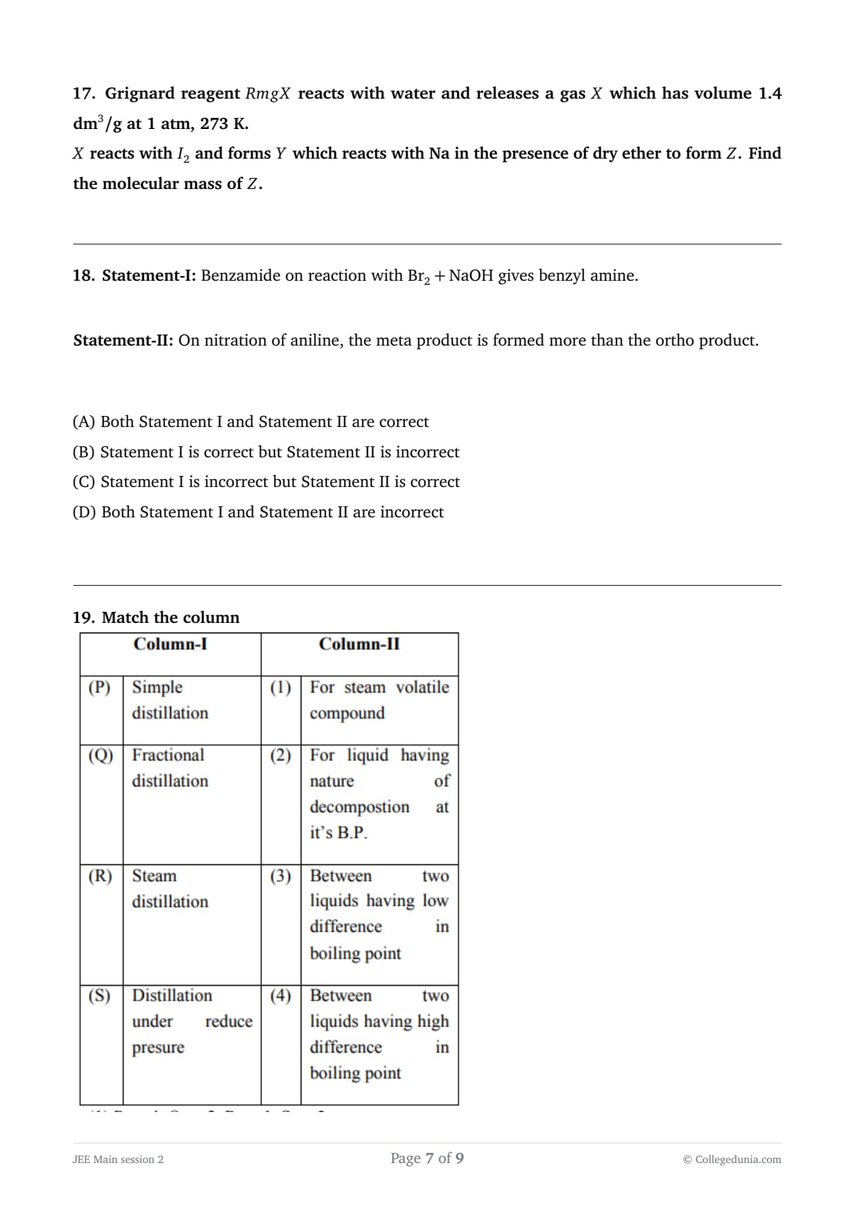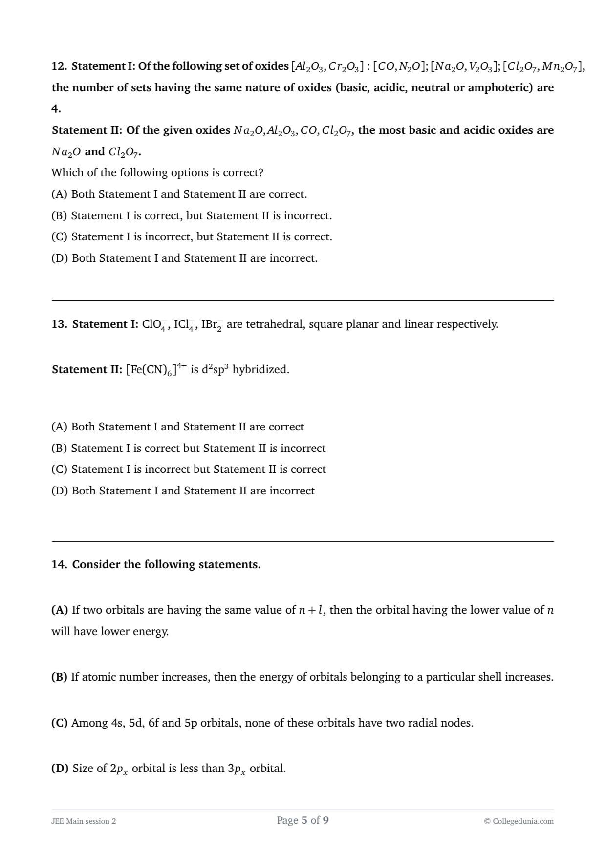 - The JEE Main Chemistry Question Paper contains a total of 25 questions.
