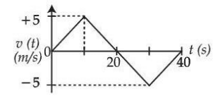 The velocity (\(v\)) versus time (\(t\)) plot of a particle is shown in the figure,for a time interval of 40 s. The total distance travelled by the particle and the average velocity during this period are, respectively :