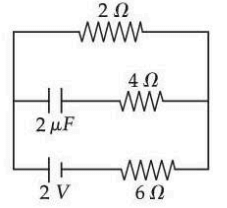 Under steady state condition the potential difference across the capacitor in the circuit is \dots V.
