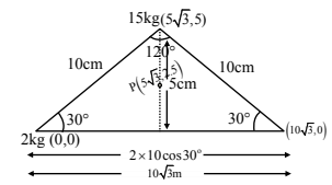 \[ x_{cm} = \frac{2(0) + 15(5\sqrt{3}) + 3(10\sqrt{3})}{20} \]
