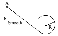 A particle is released from point \(A\) of the track as shown in the figure. Find \(h\) so that the normal reaction at the highest point is 3 times the weight of the block. The surface is smooth.