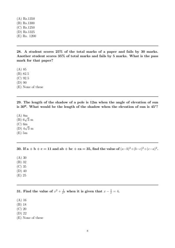 IBSAT Quantitative Ability Question Paper with Solutions