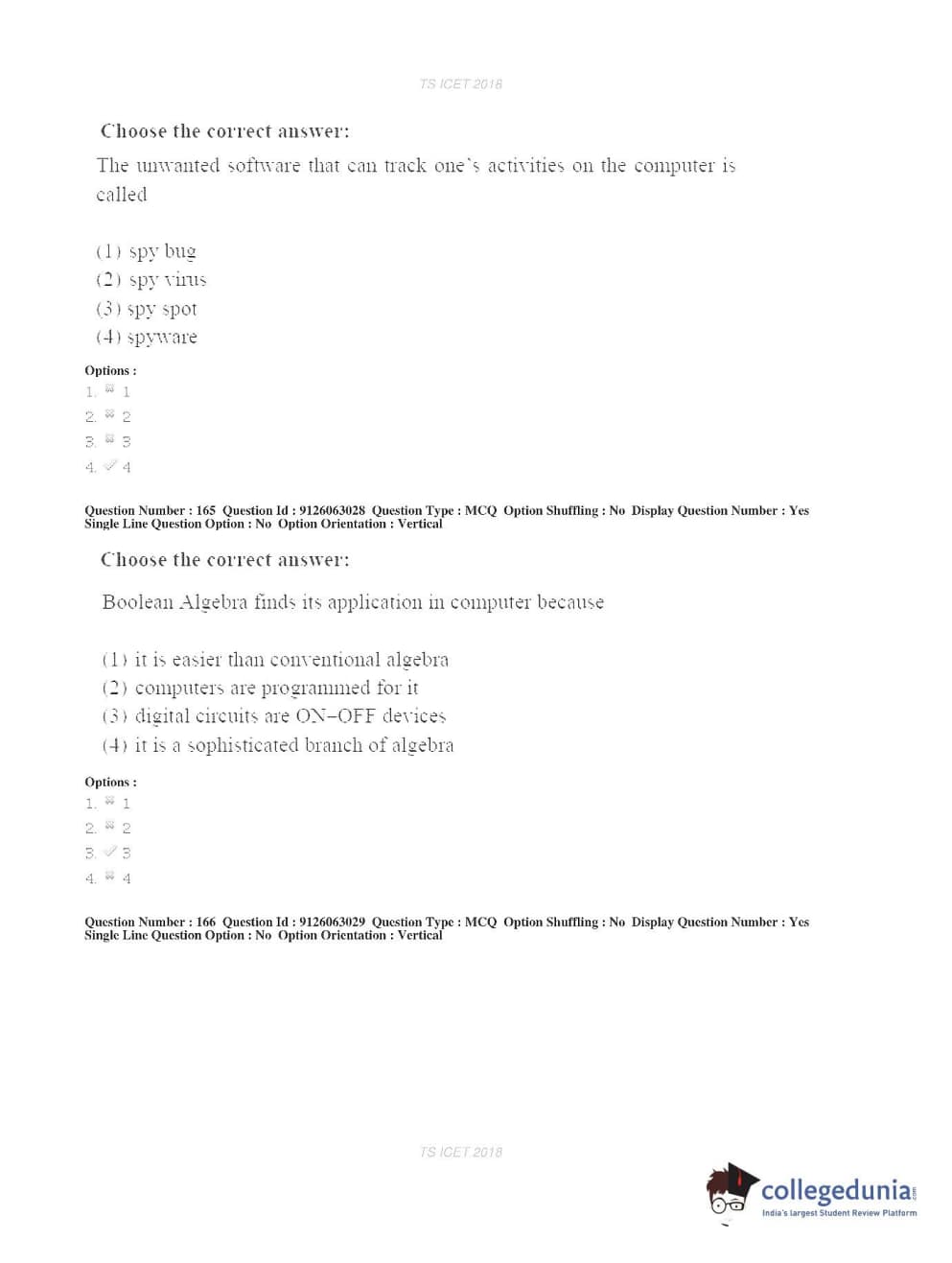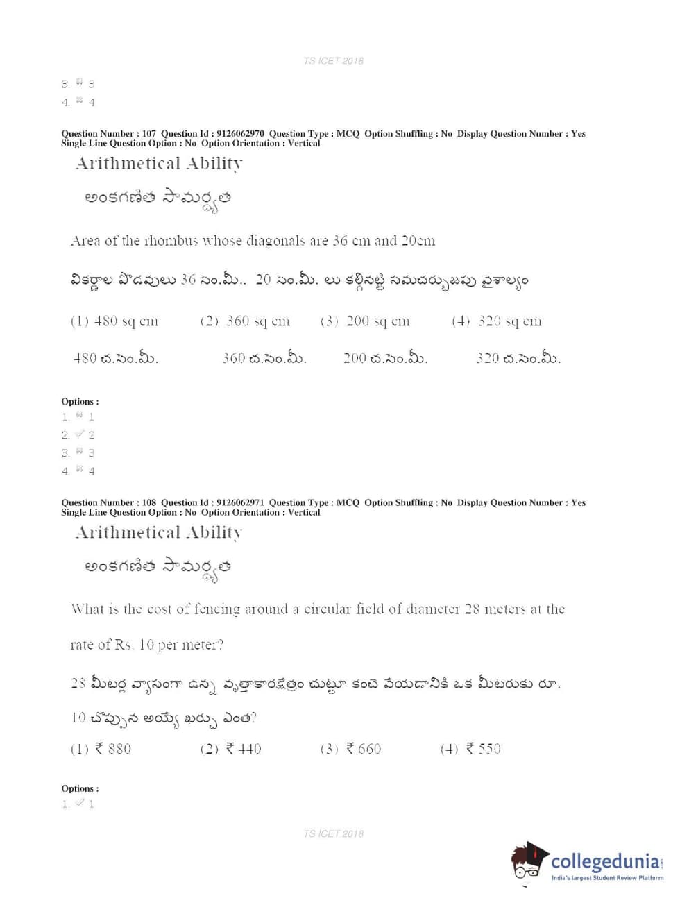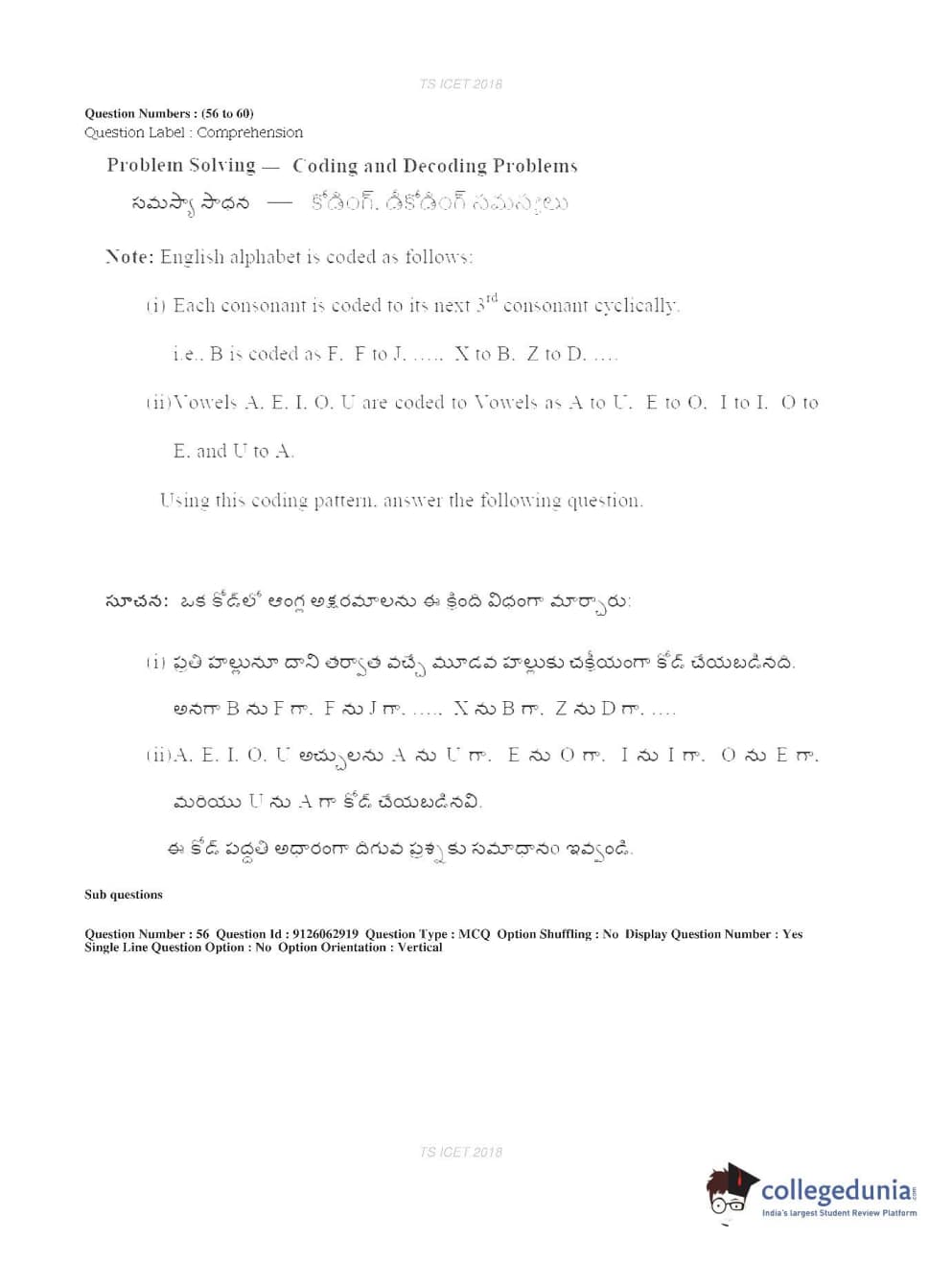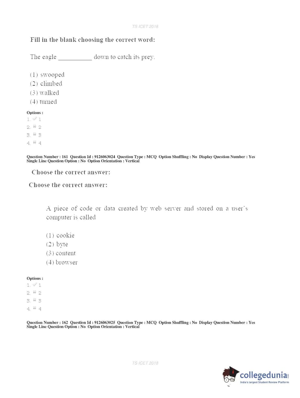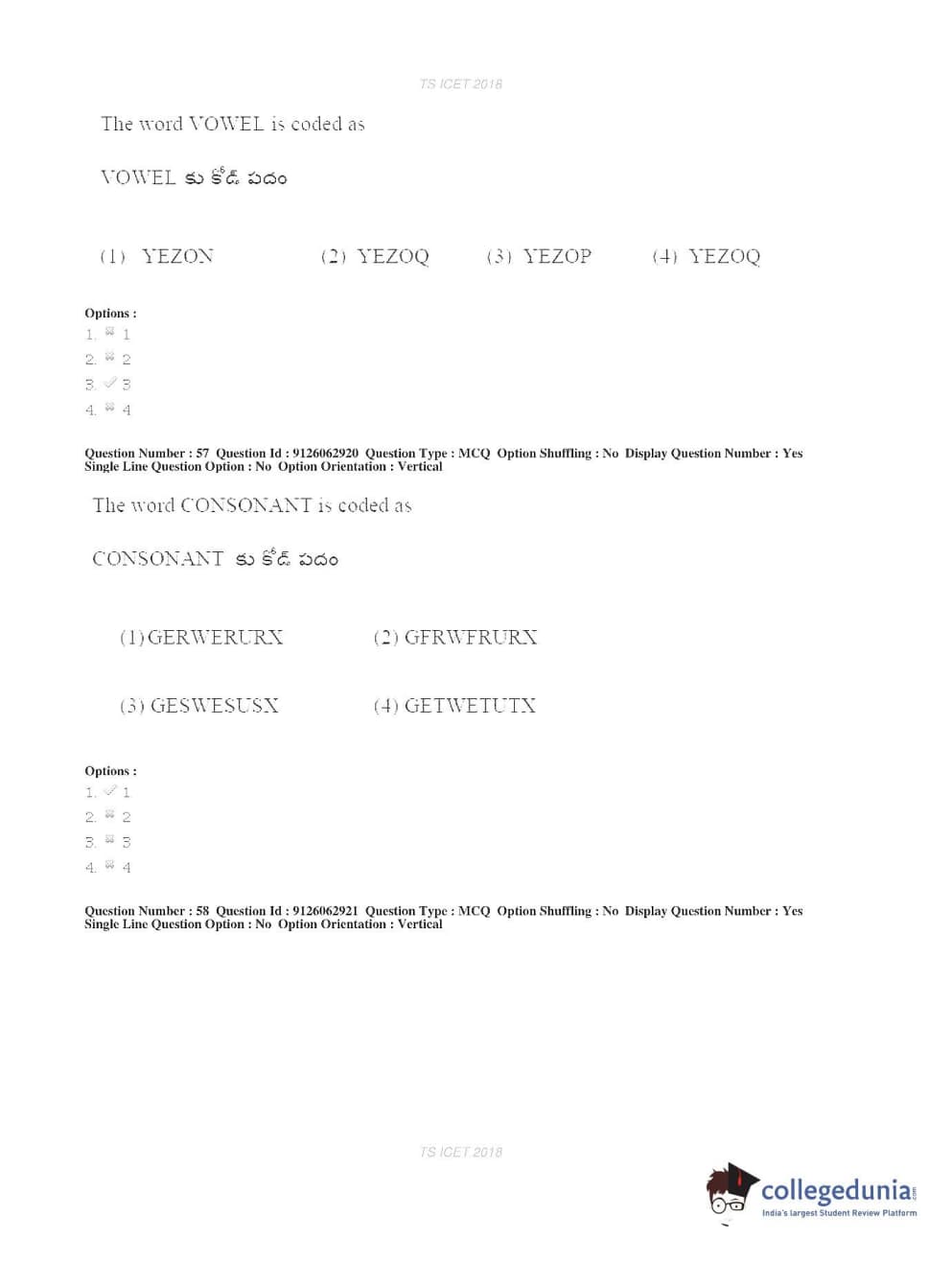 TSICET 2018 Question Paper with Answer Key PDFs Shift 2
