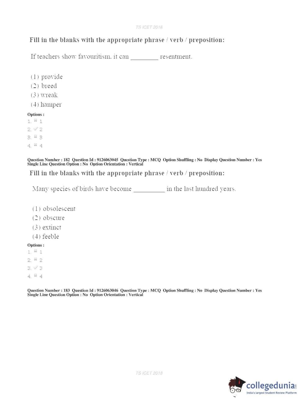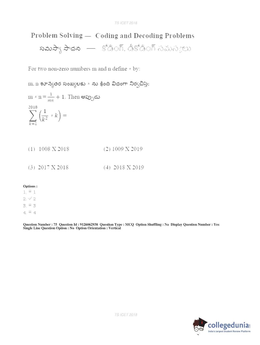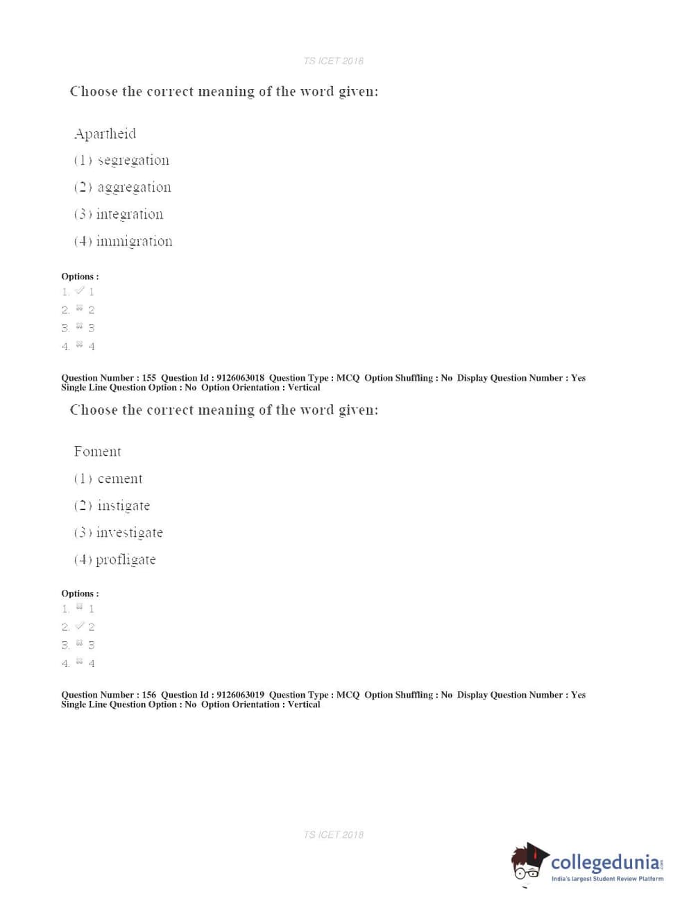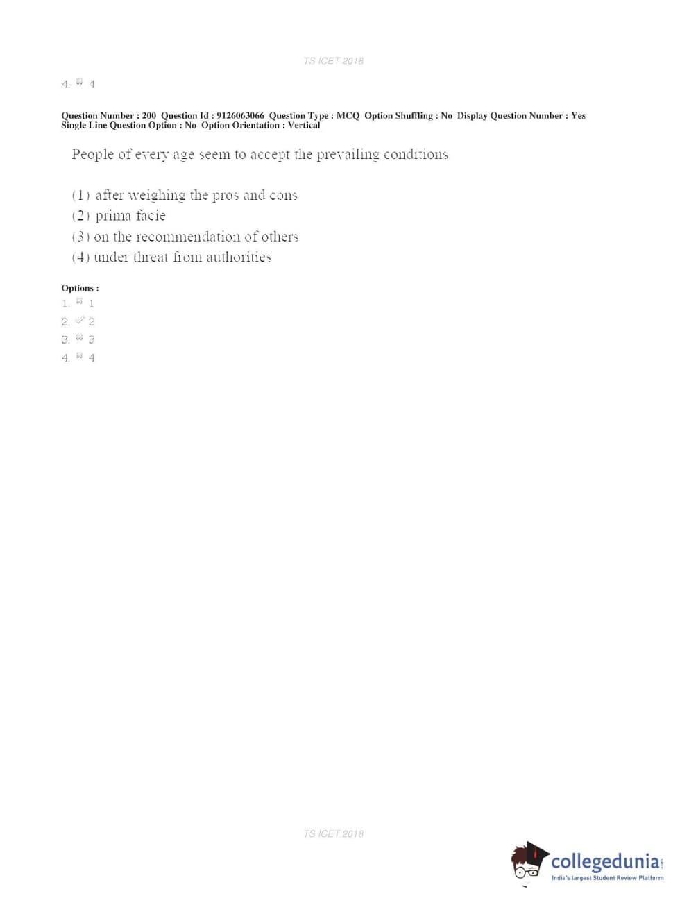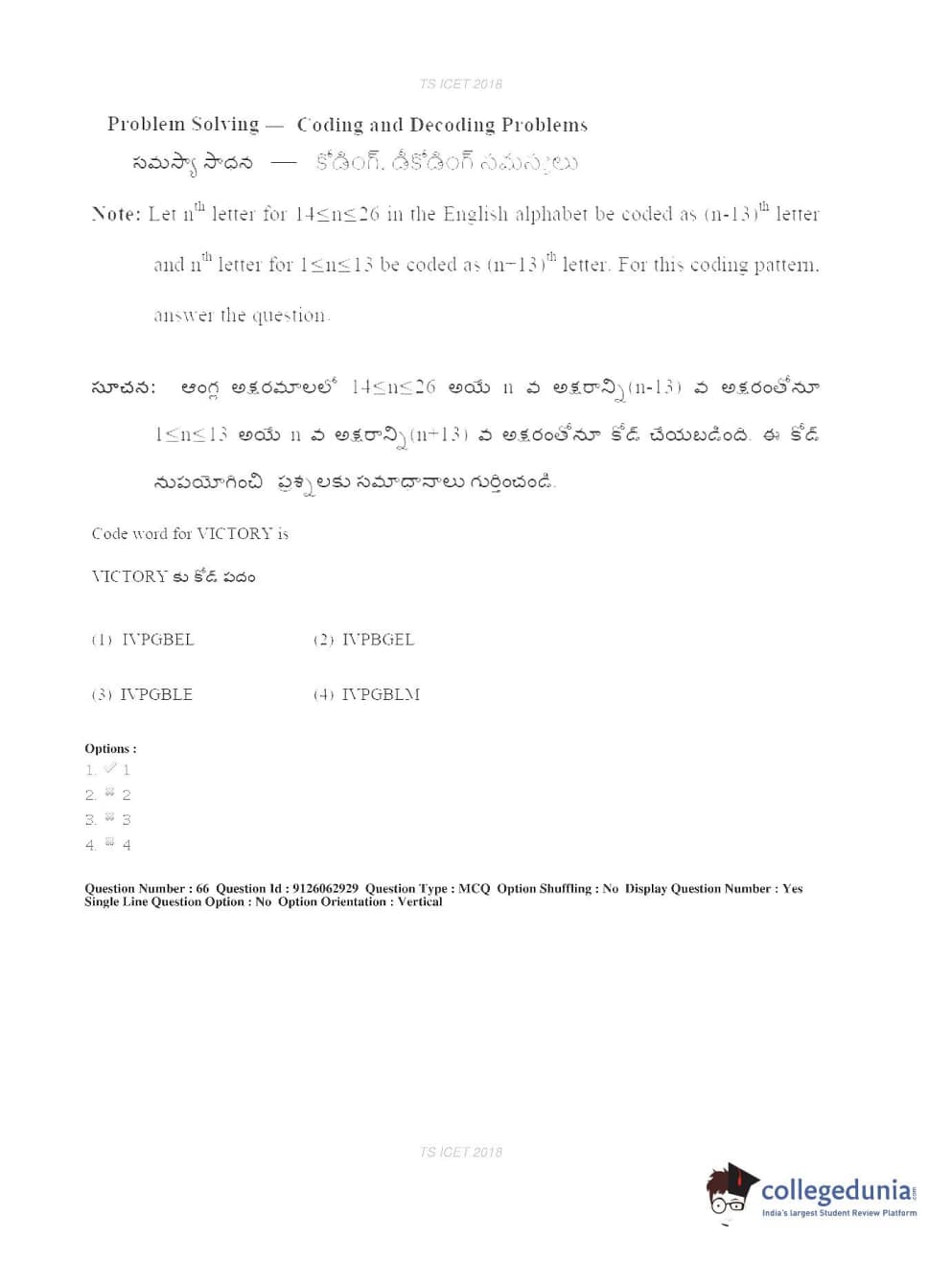 TSICET 2018 Question Paper with Answer Key PDFs Shift 2