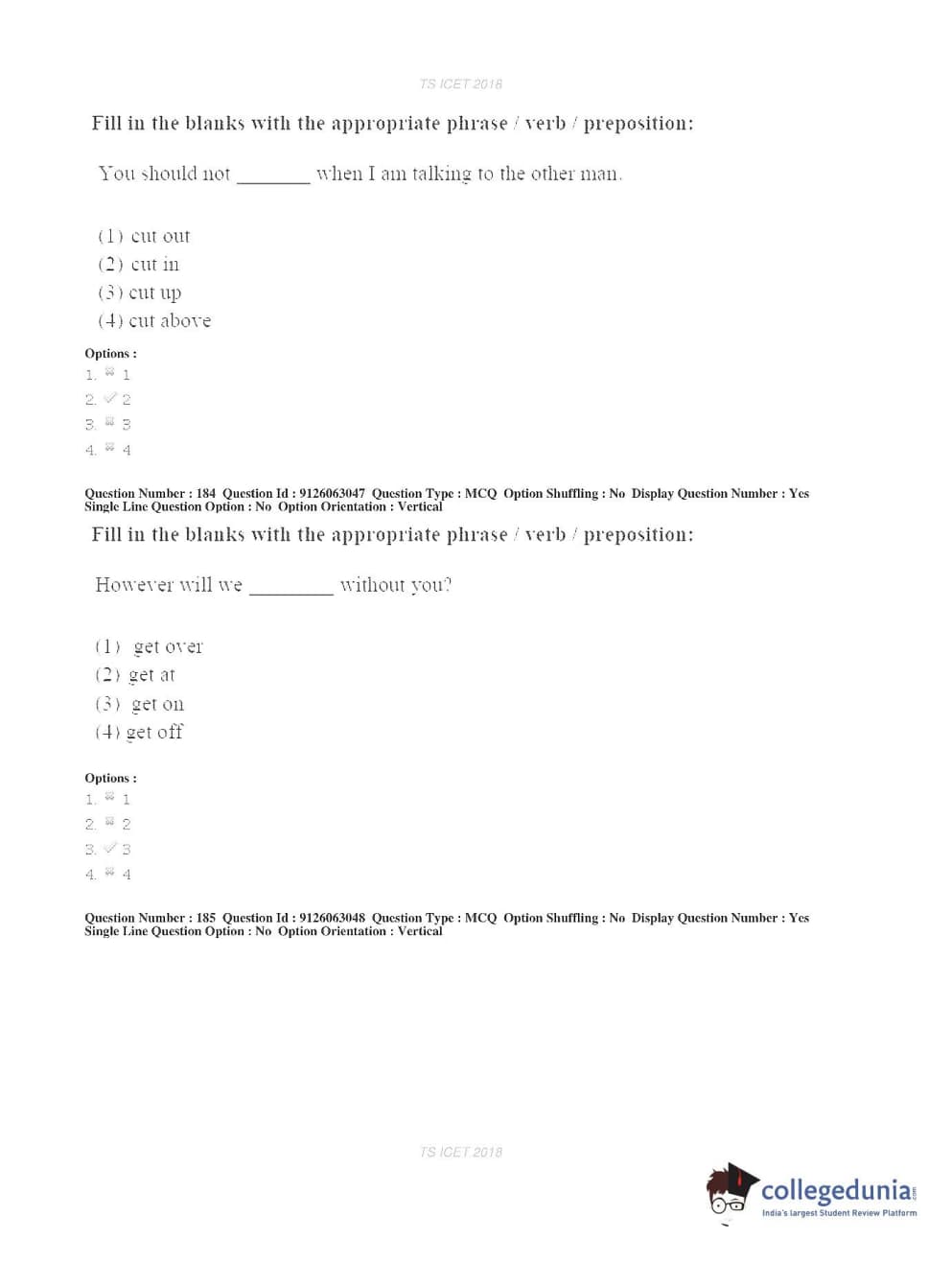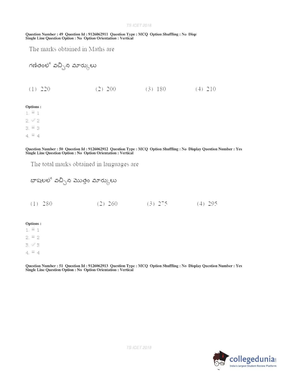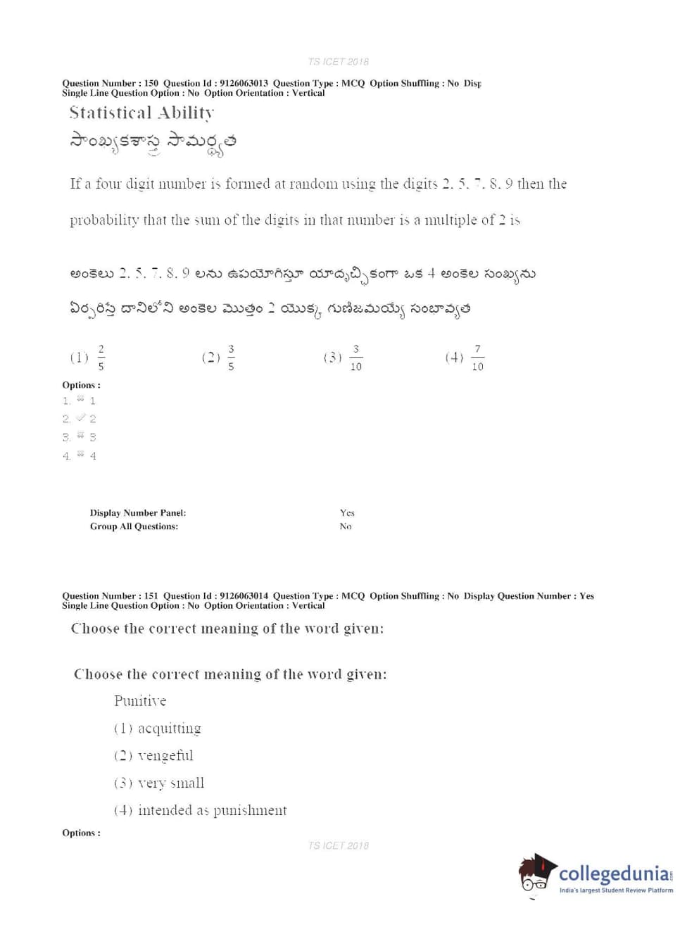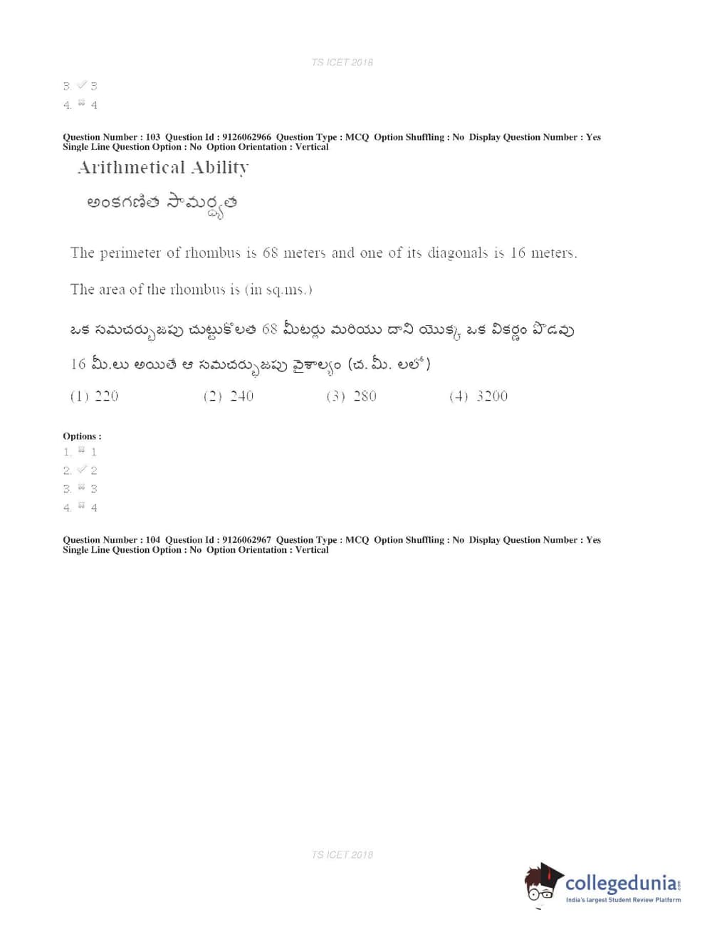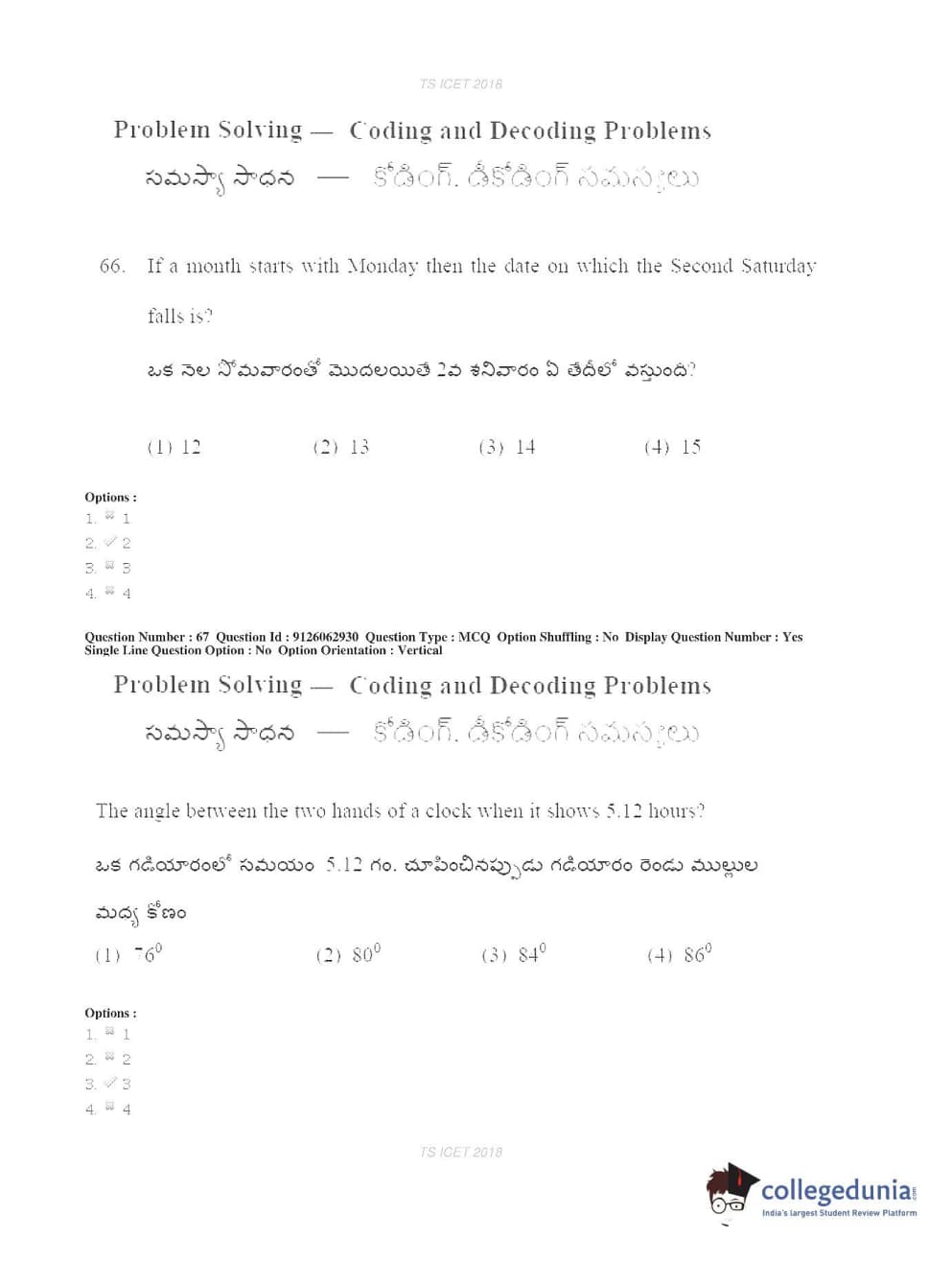 TSICET 2018 Question Paper with Answer Key PDFs Shift 2