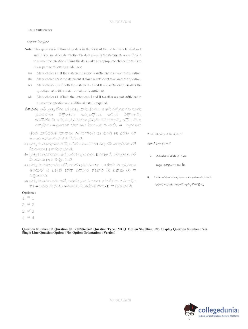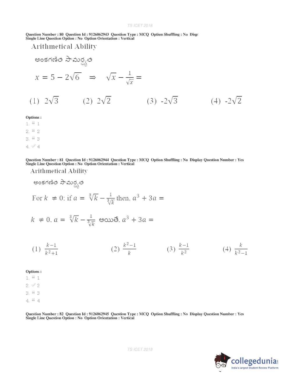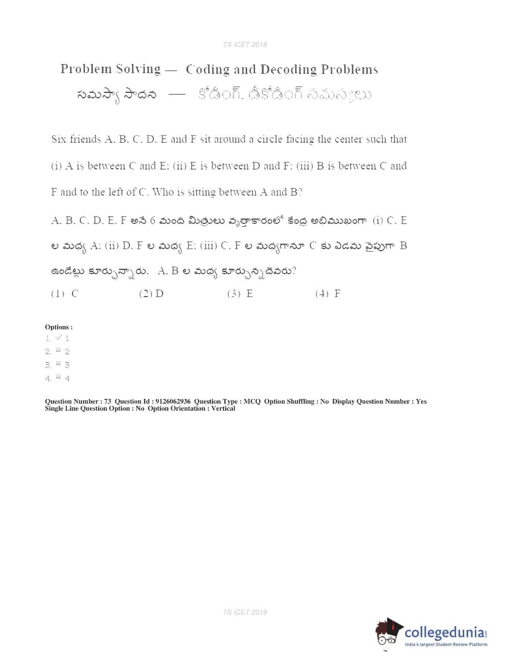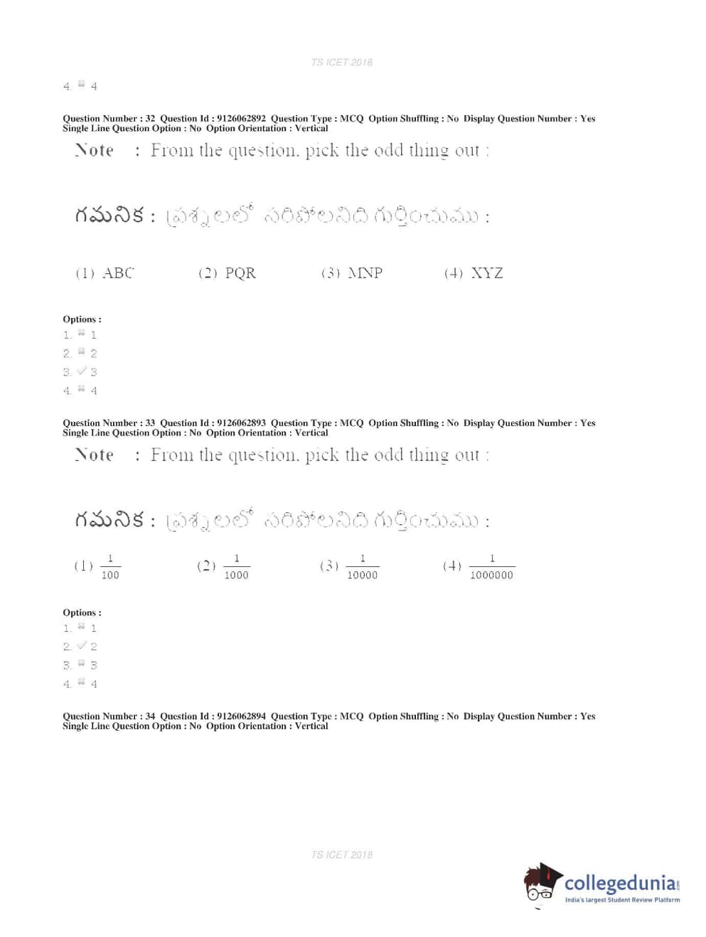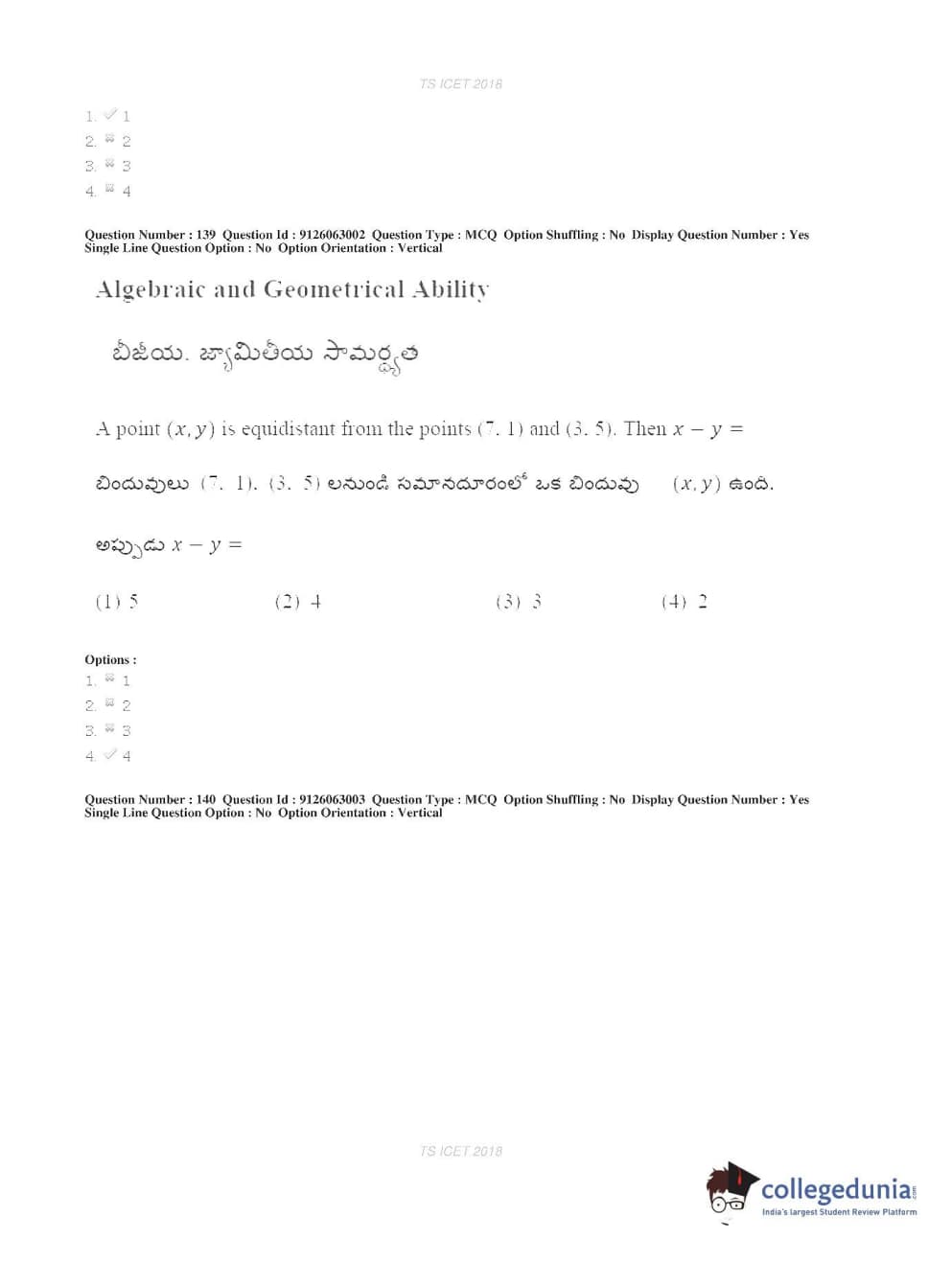 TSICET 2018 Question Paper with Answer Key PDFs Shift 2