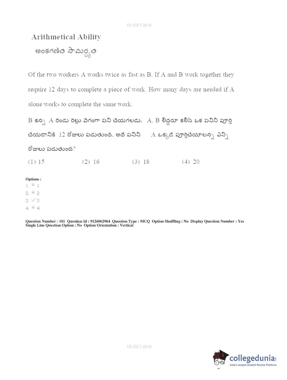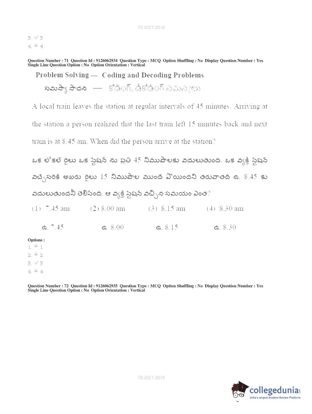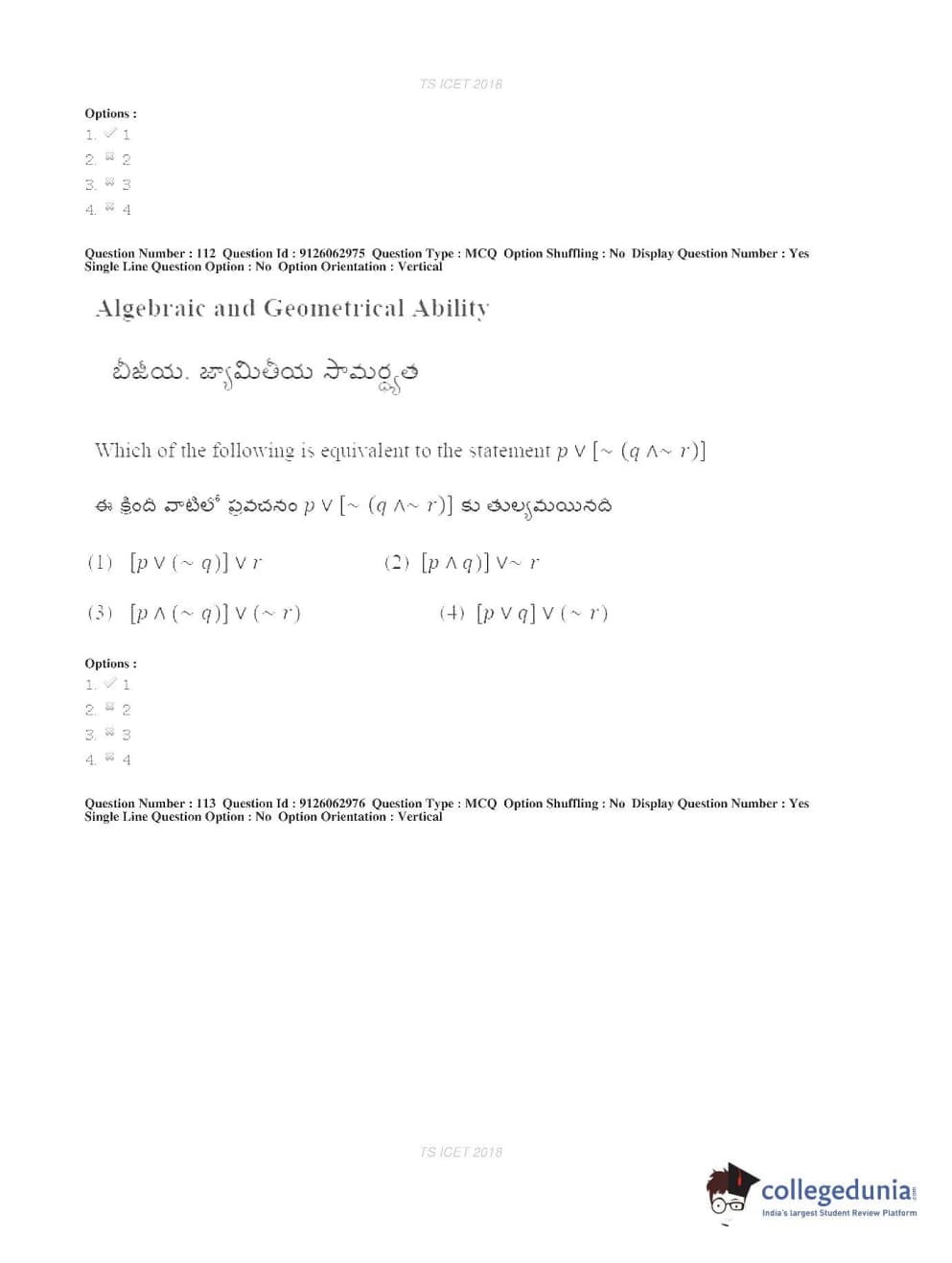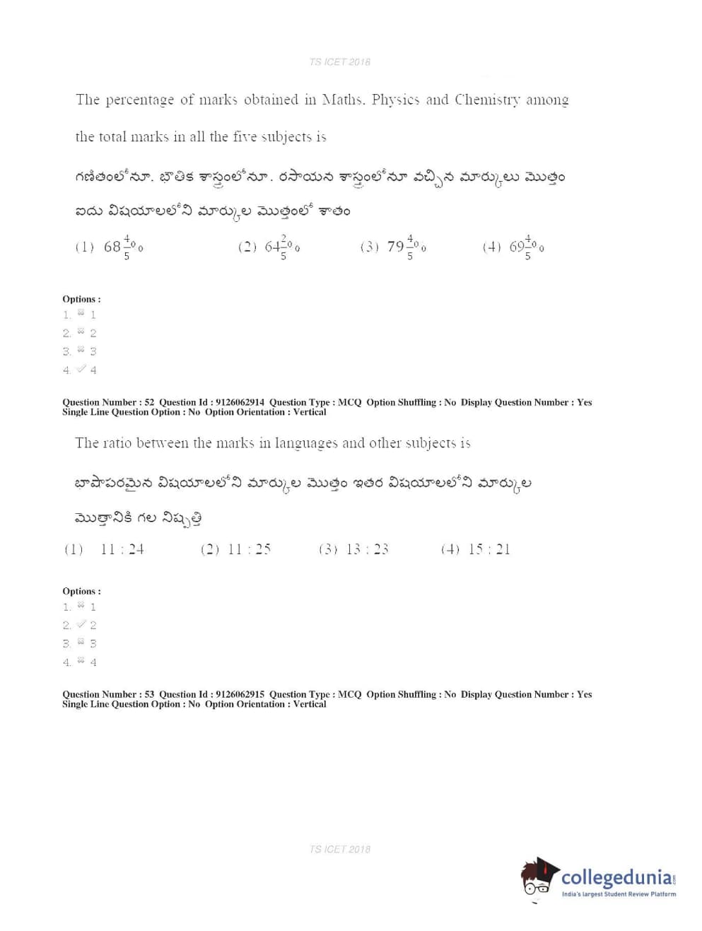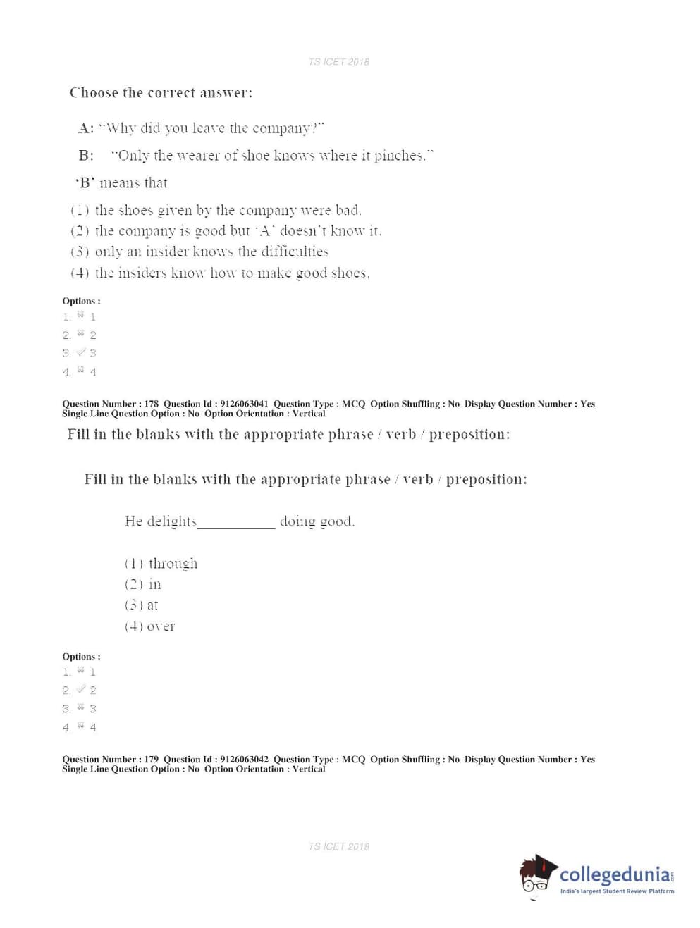 TSICET 2018 Question Paper with Answer Key PDFs Shift 2