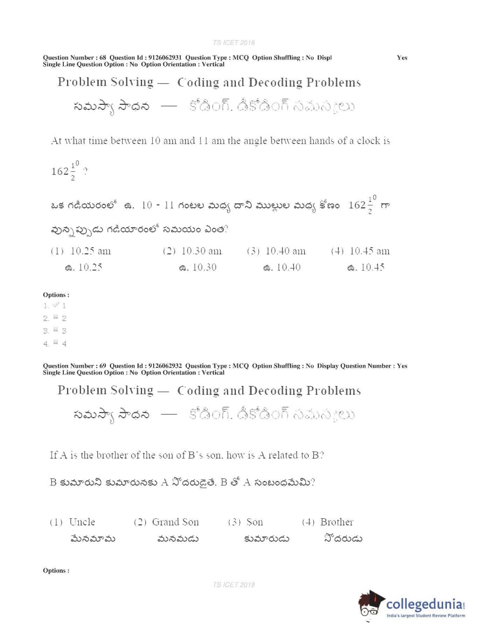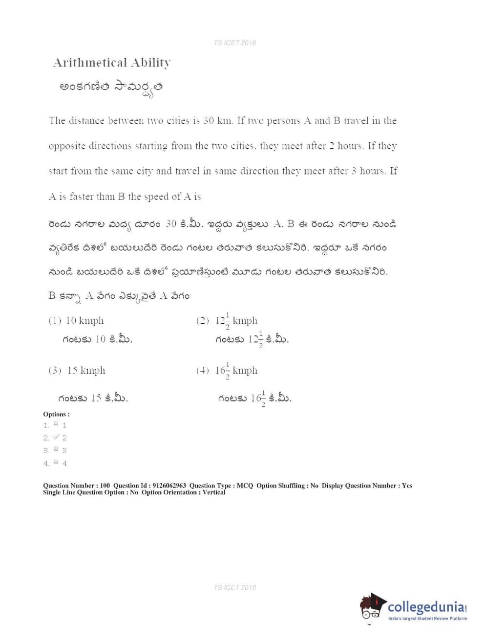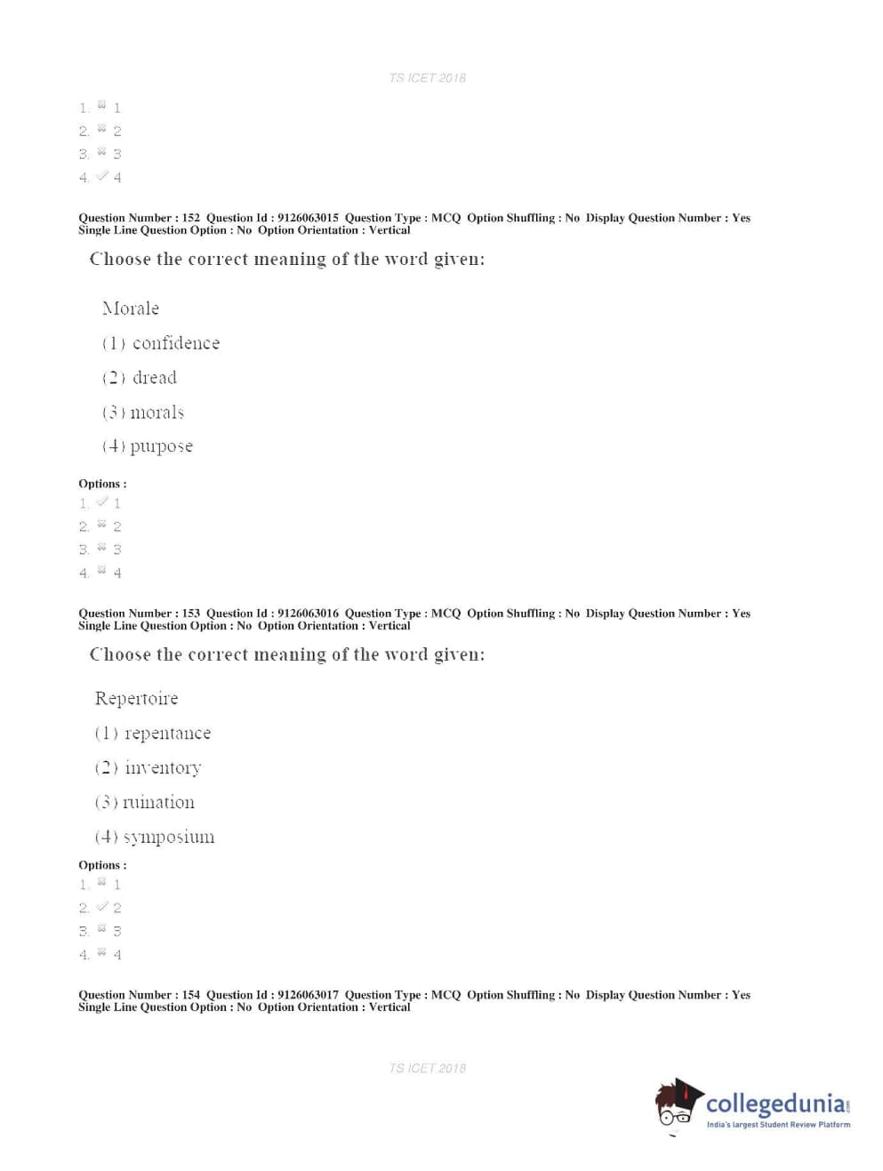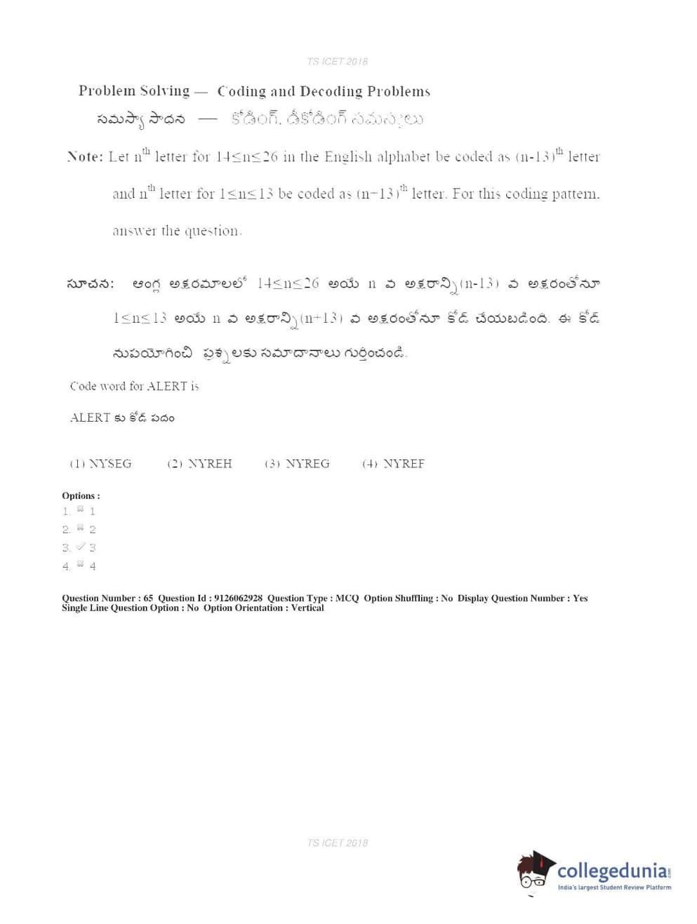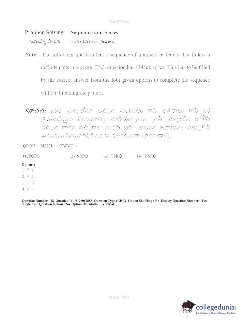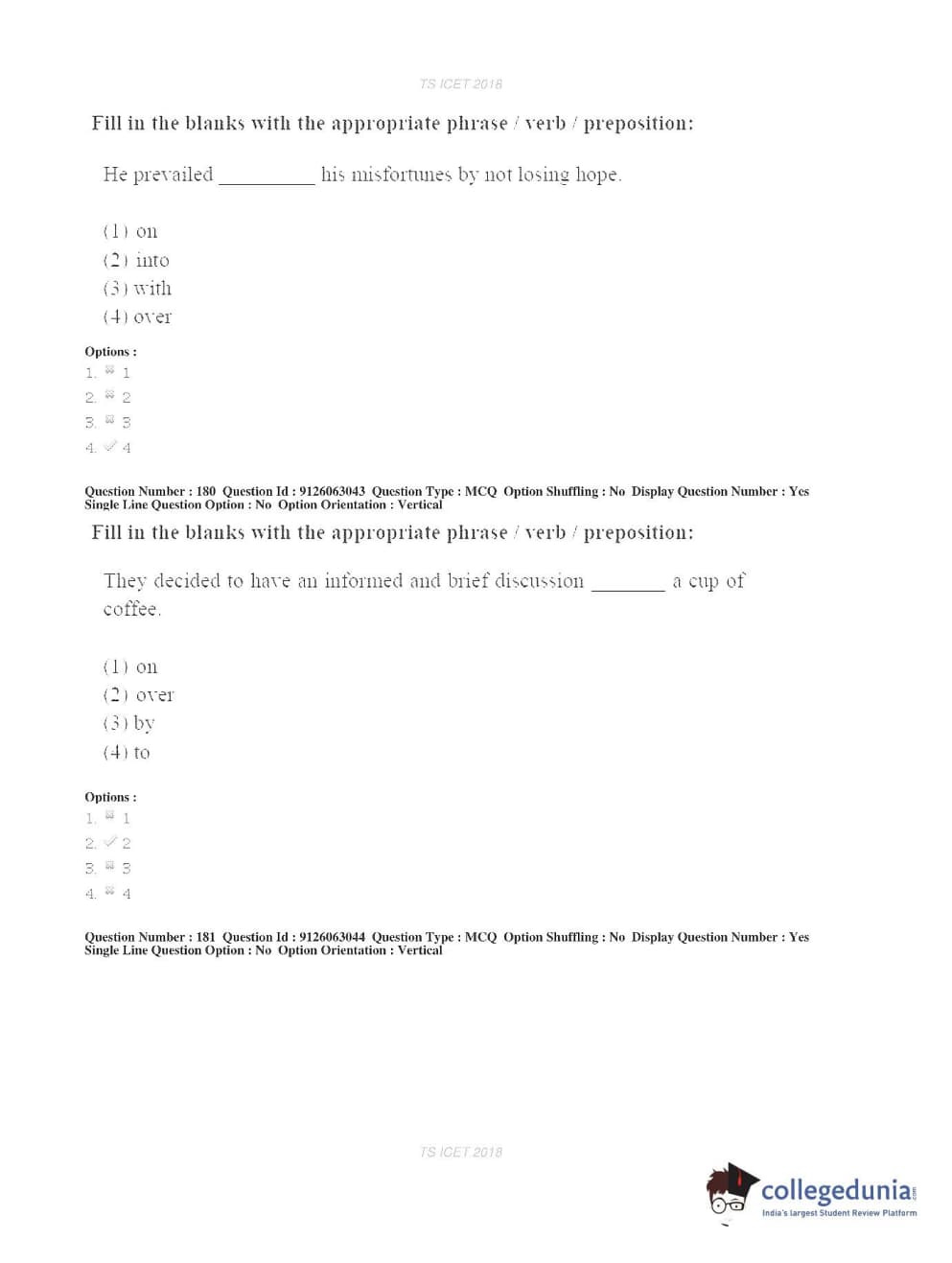 TSICET 2018 Question Paper with Answer Key PDFs Shift 2