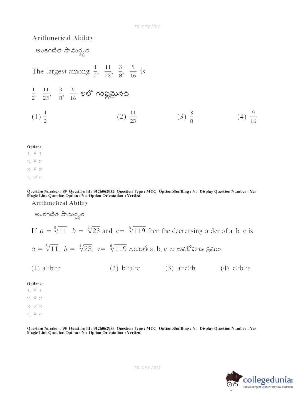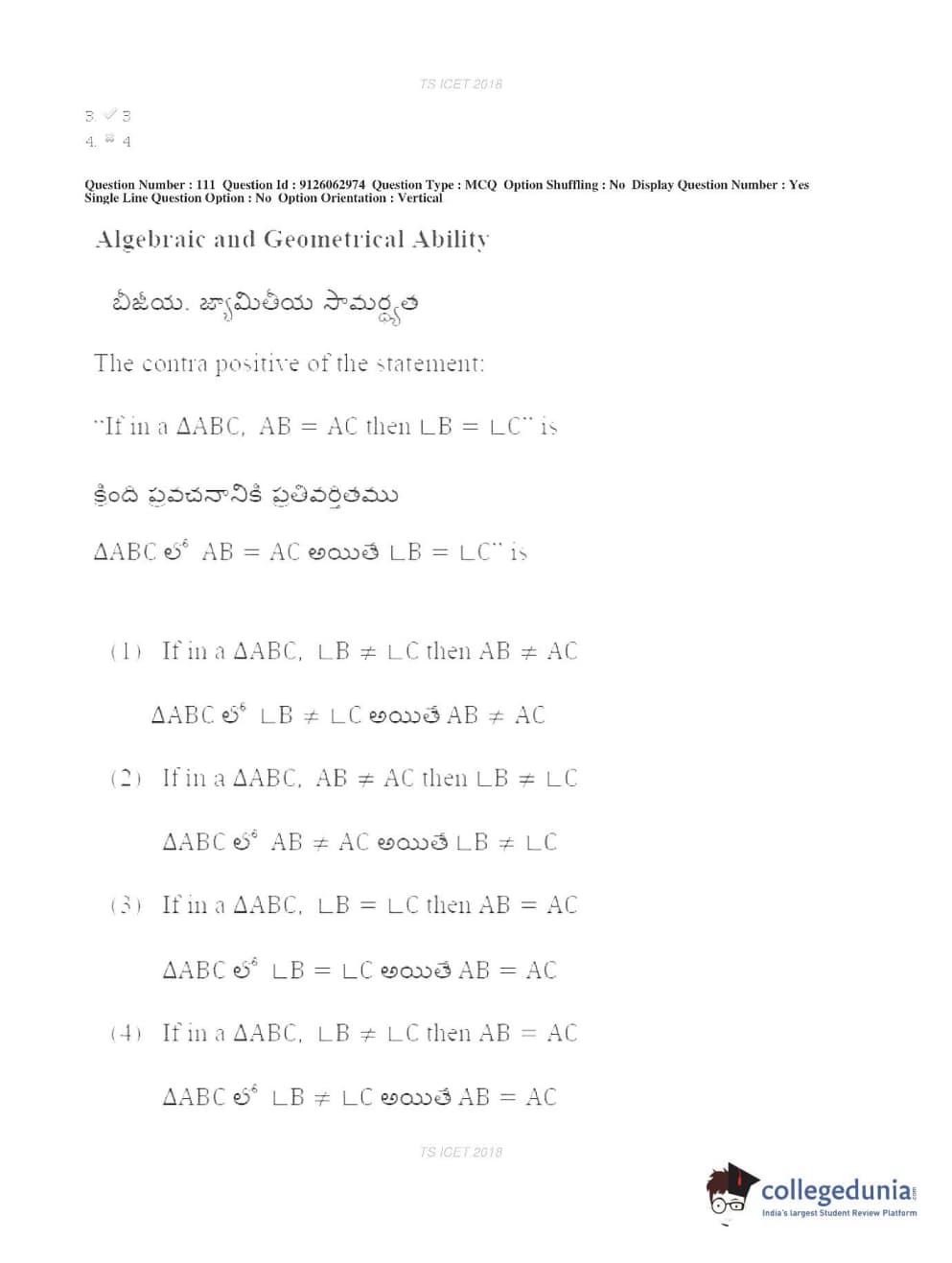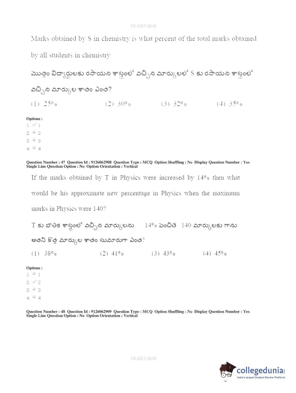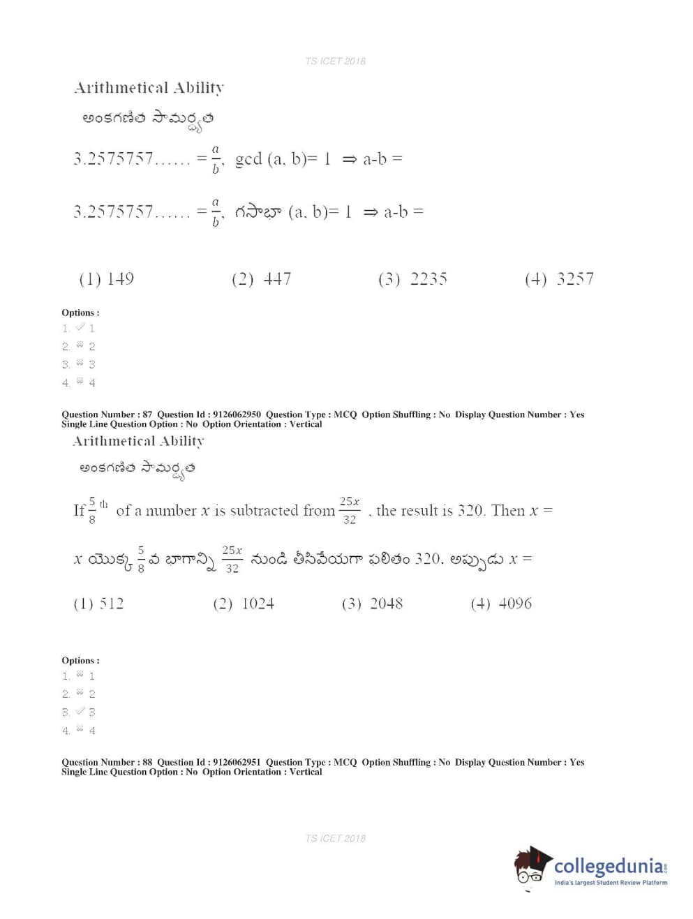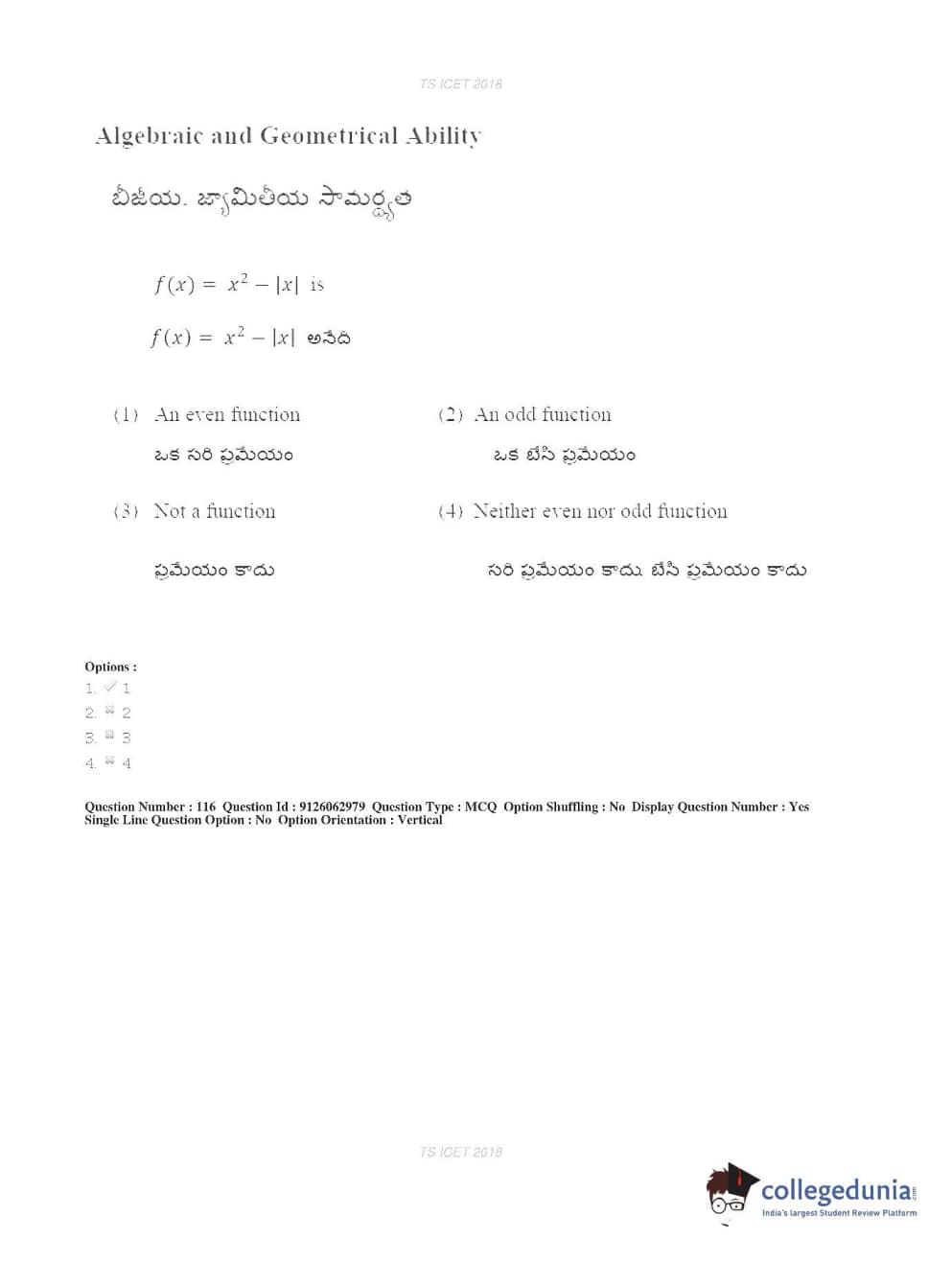 TSICET 2018 Question Paper with Answer Key PDFs Shift 2